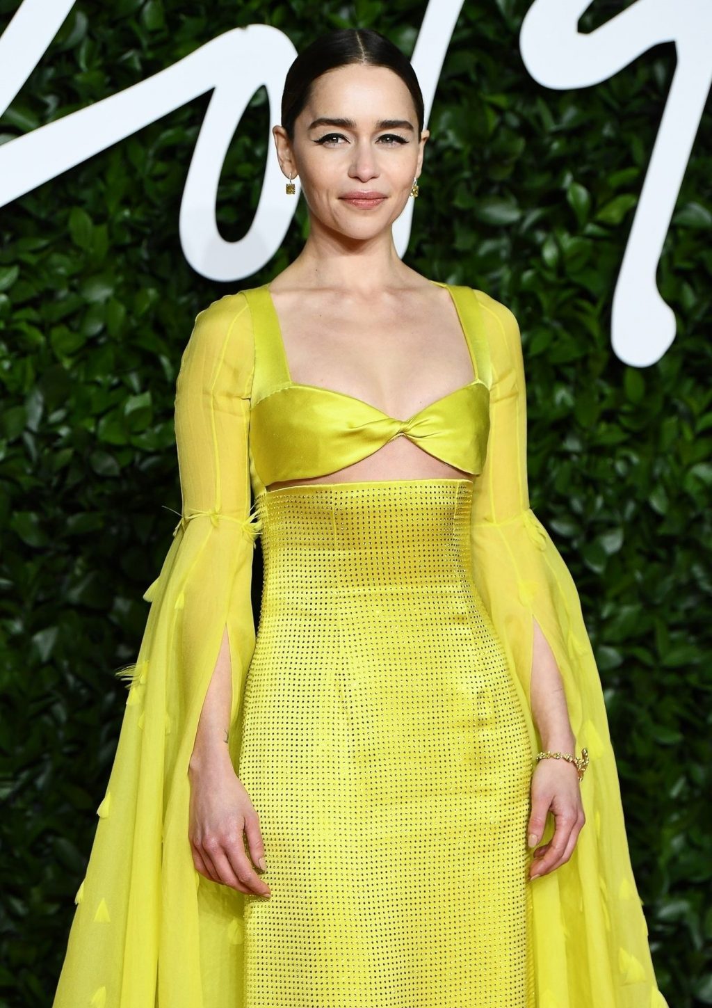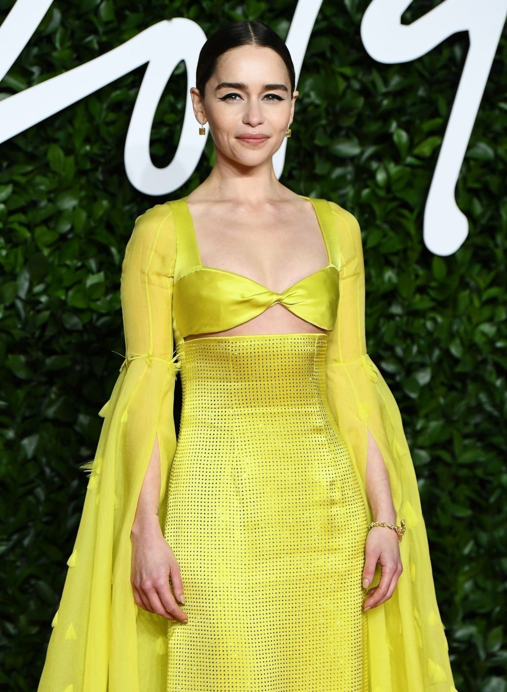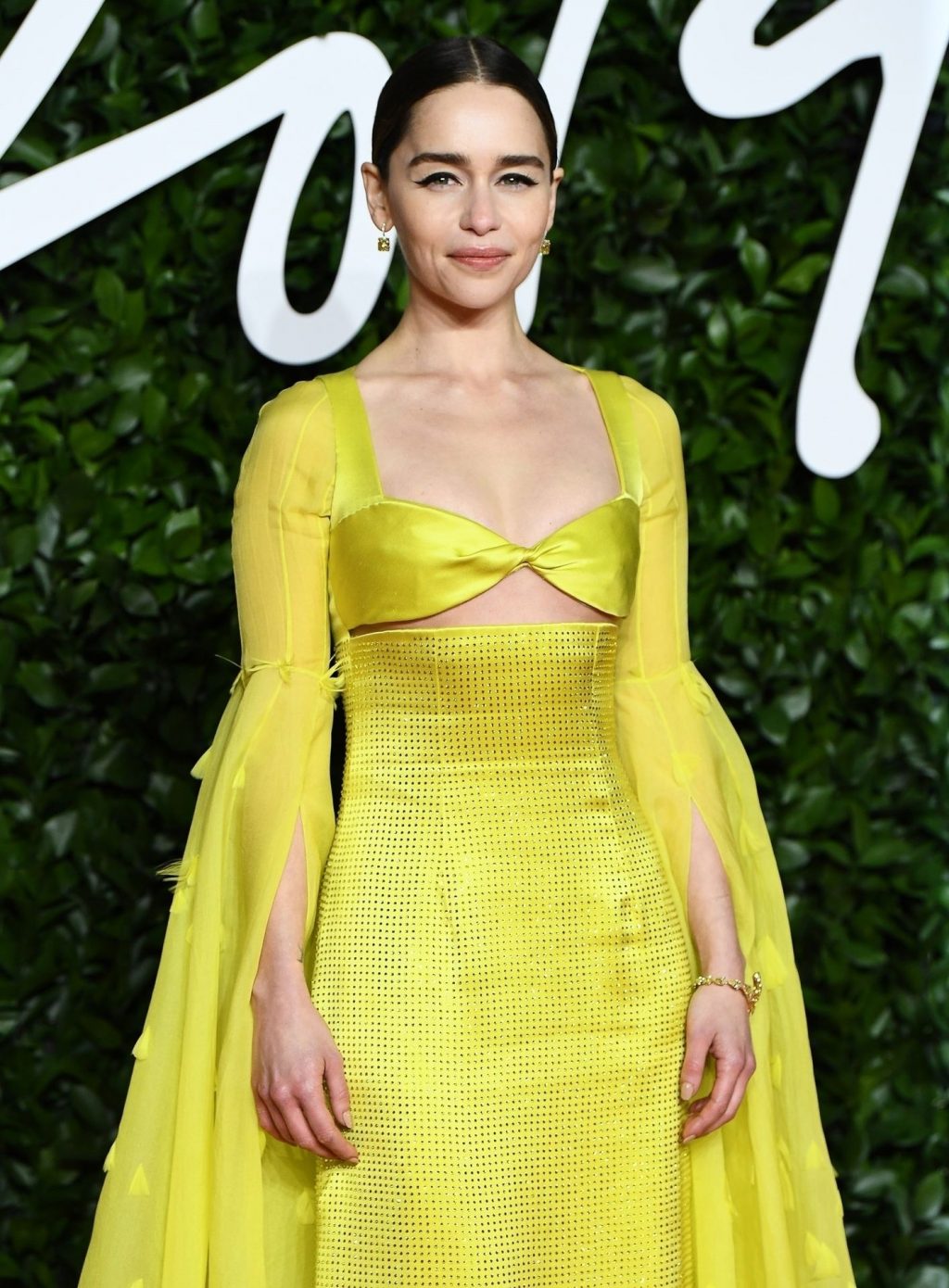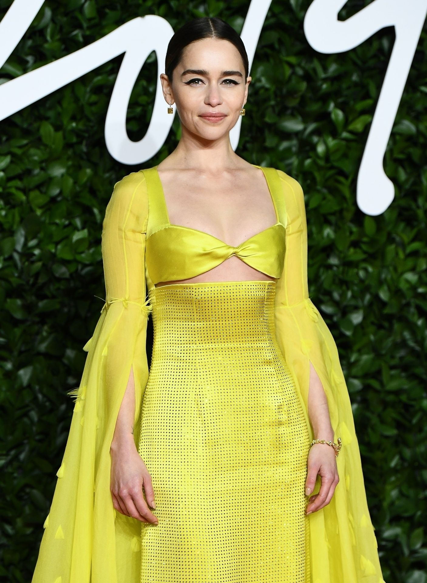 La actriz inglesa Emilia Clarke posa con un vestido amarillo en la alfombra roja a su llegada a The Fashion Awards 2019 en Londres, 12/02/2019.