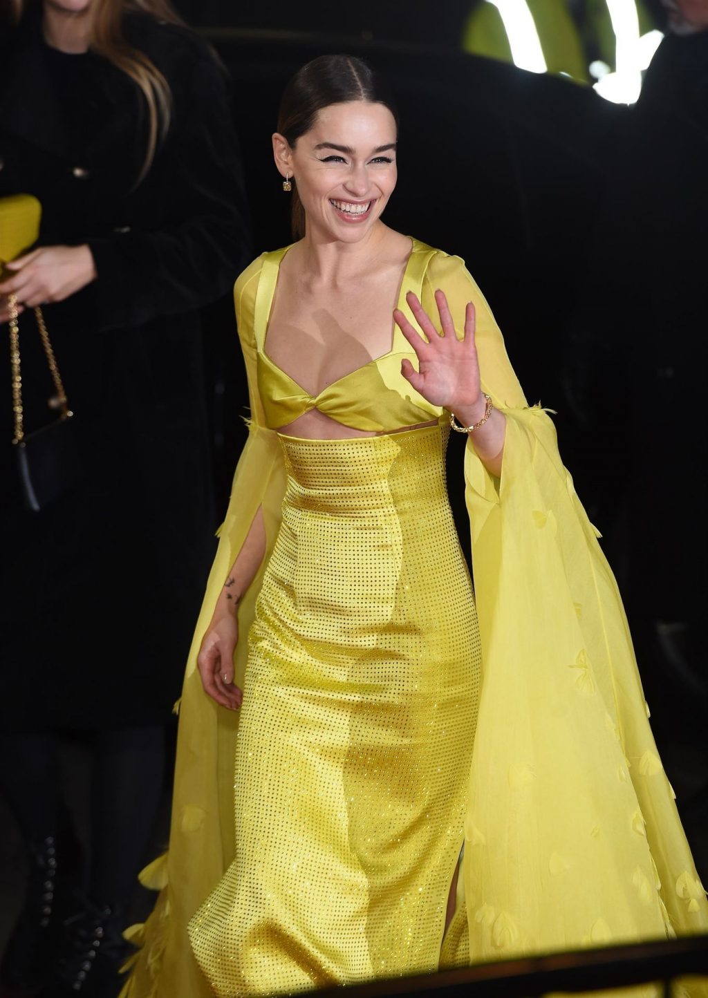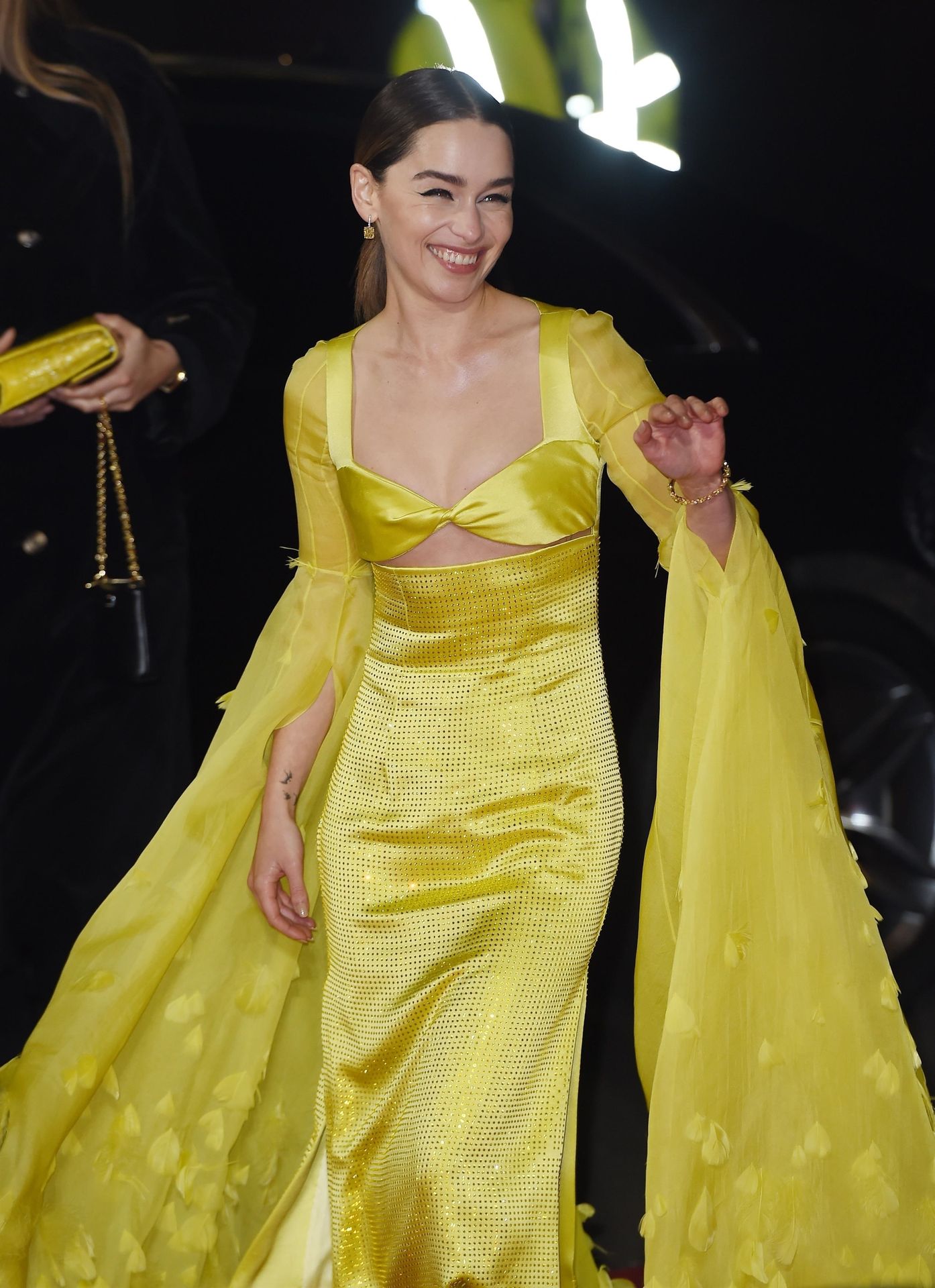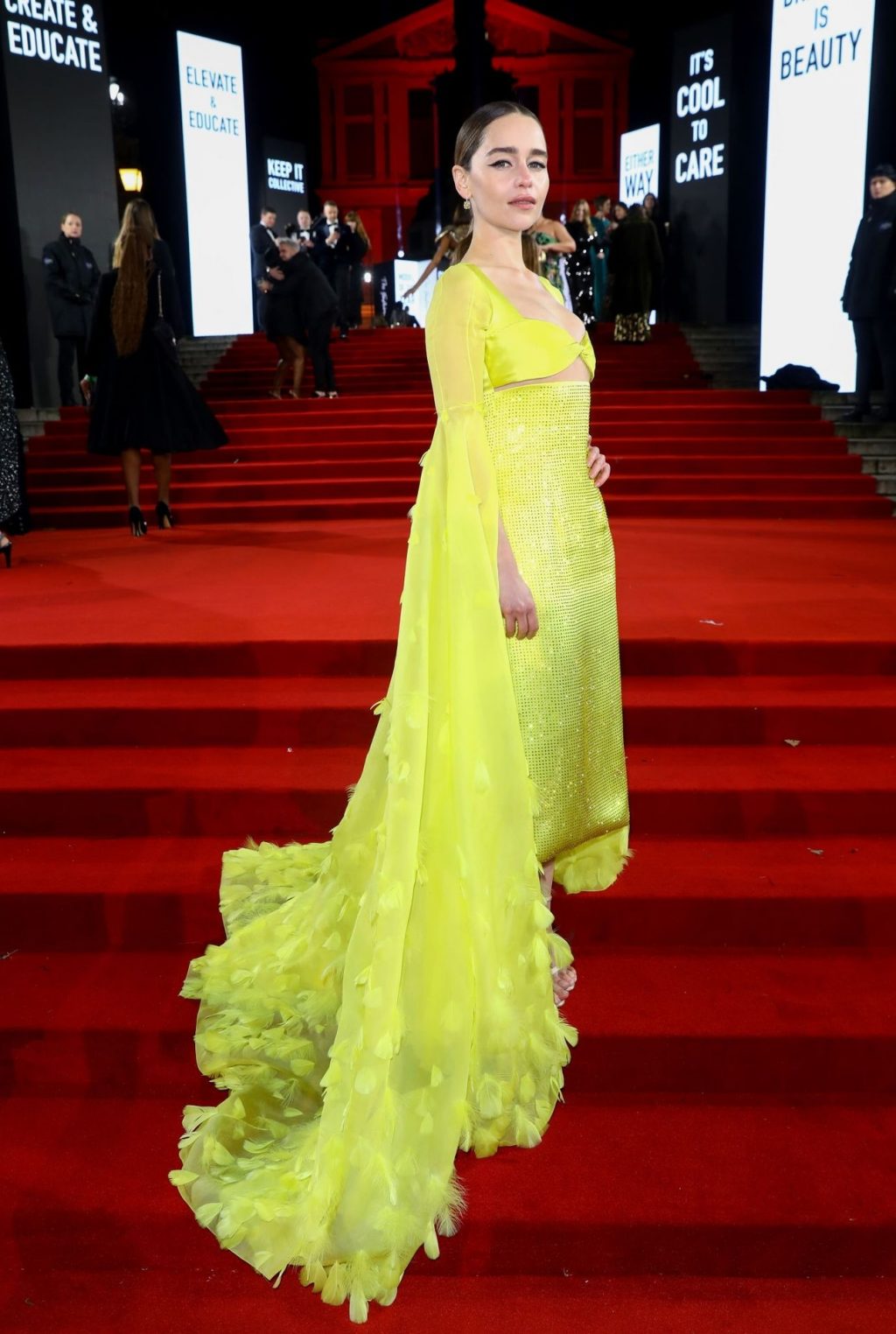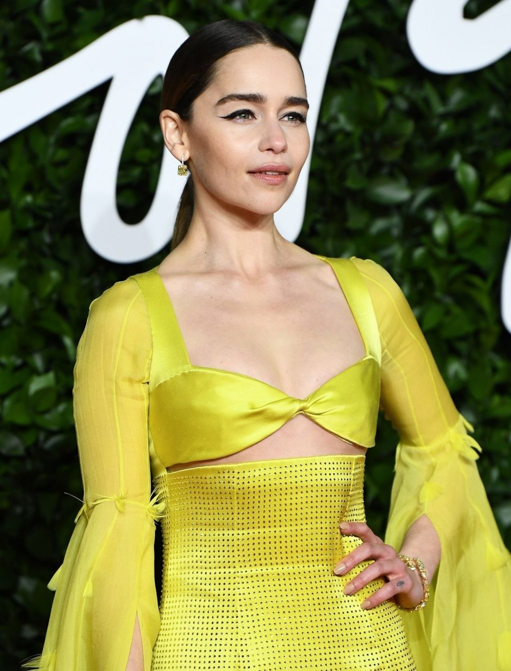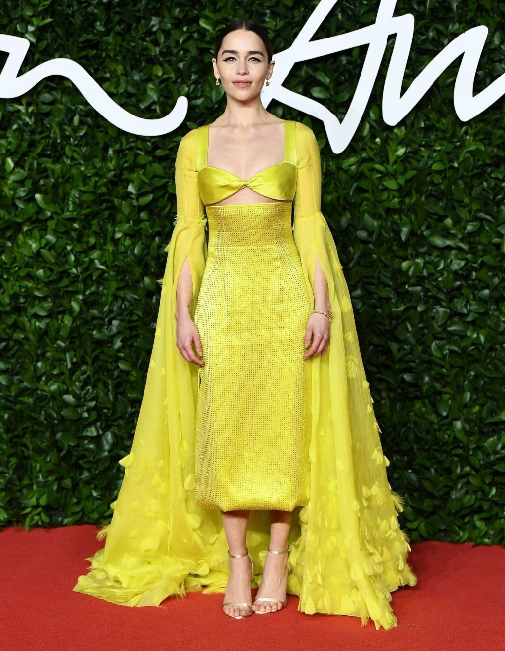 La actriz inglesa Emilia Clarke posa con un vestido amarillo en la alfombra roja a su llegada a The Fashion Awards 2019 en Londres, 12/02/2019.
