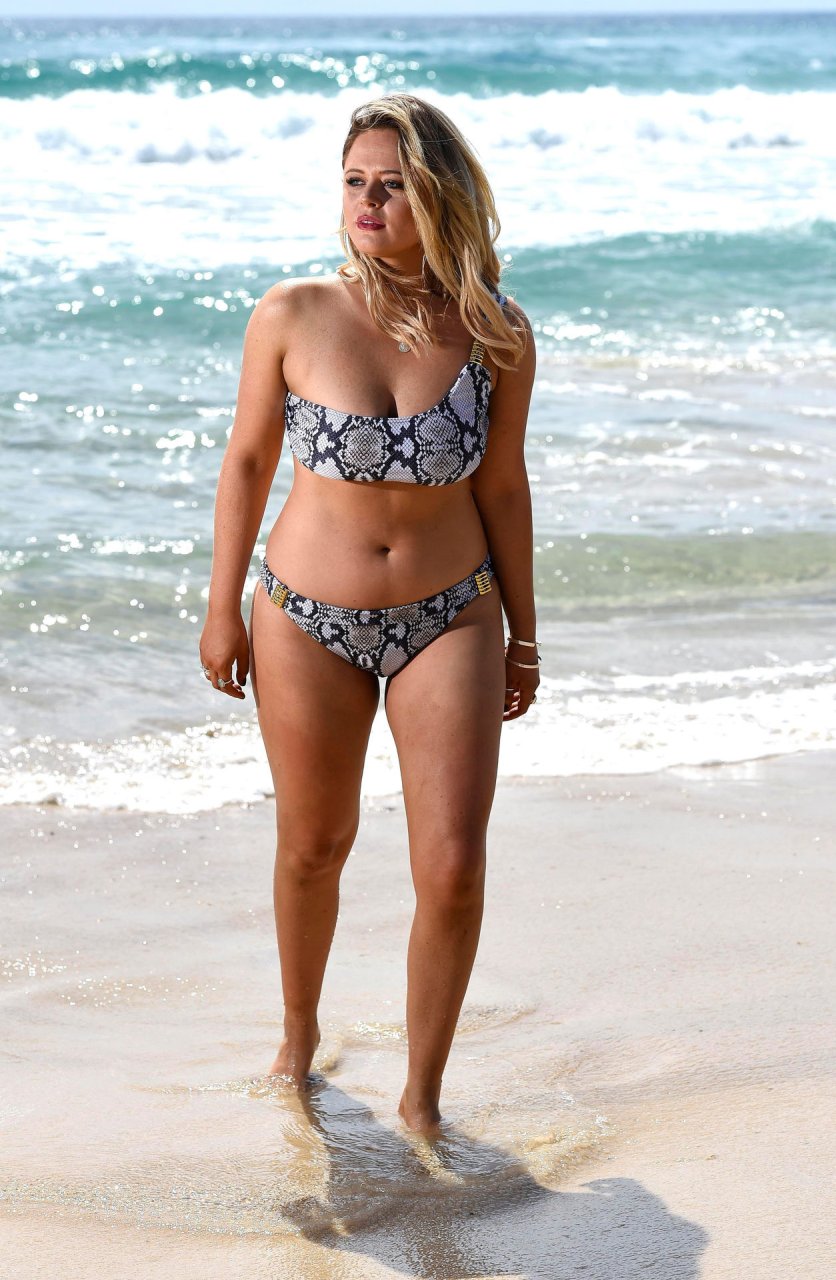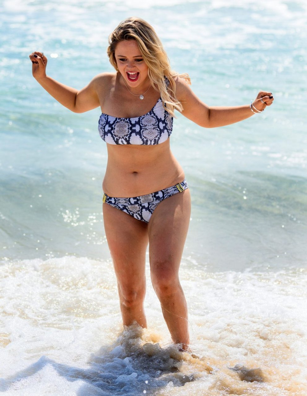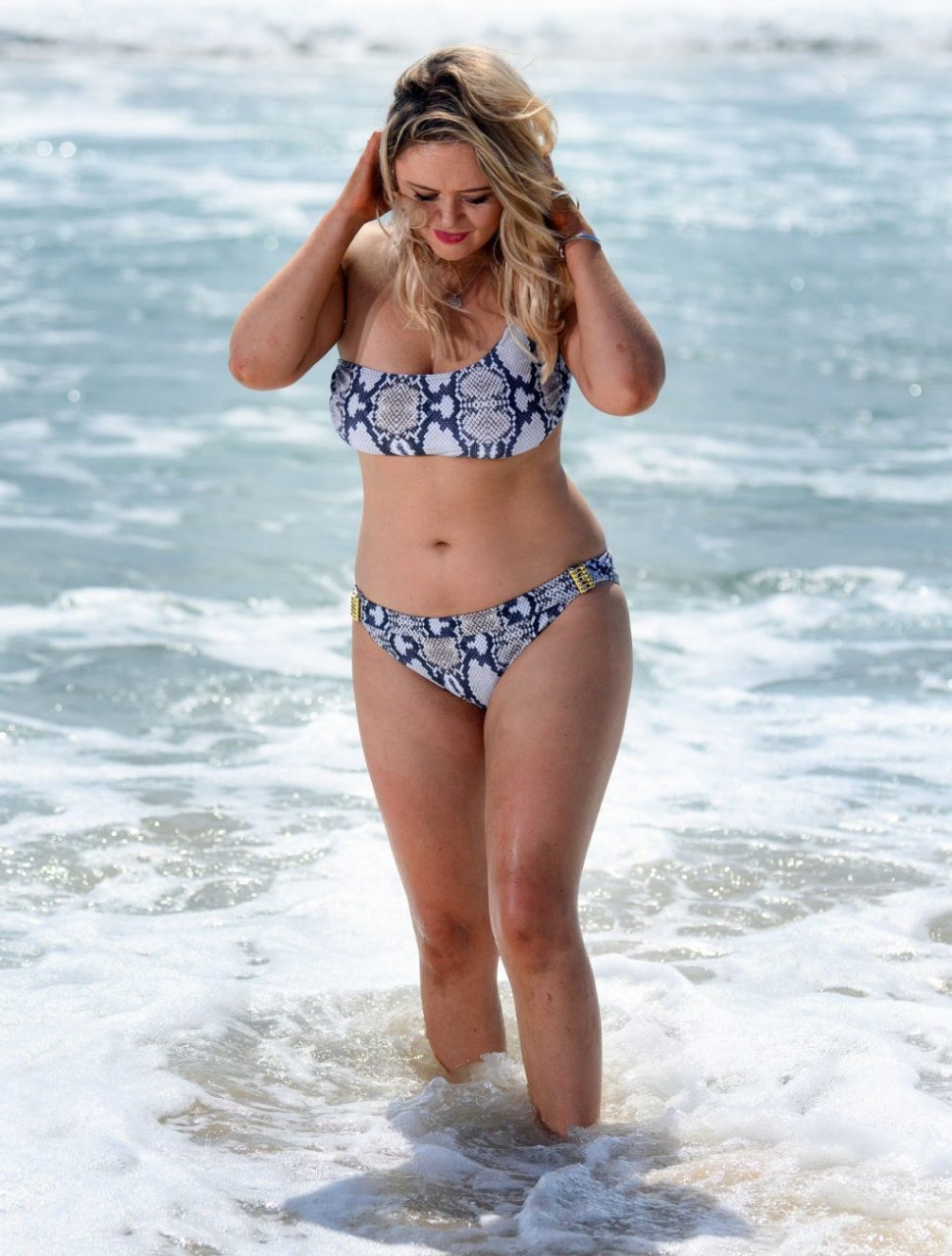 “Soy una celebridad… ¡Sácame de aquí!” concursante del programa de televisión, la actriz Emily Atack muestra su impresionante cuerpo en bikini en la playa de Queensland, Australia, 15/11/2018.