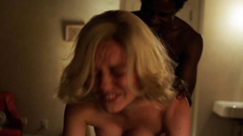 Mira las escenas desnudas de la actriz de “Trial by Fire“, Emily Meade, en “The Deuce” (2018) Temporada 2 Episodio 8 (s02e08), donde puedes ver a Emily desnuda cuando un hombre negro apuesta detrás de ella en una cama mientras ella está a cuatro patas, mostrando sus pechos desnudos mientras el hombre comienza a tener sexo con esta chica. Luego ella está acostada en la cama sin camiseta, y puedes ver su pezón derecho.