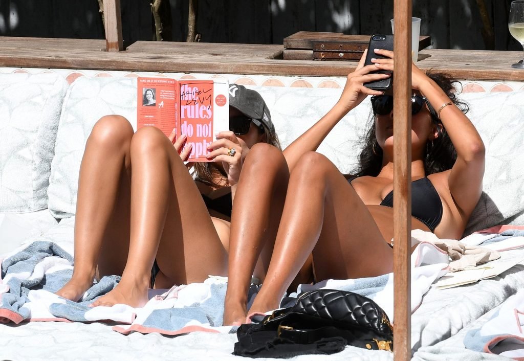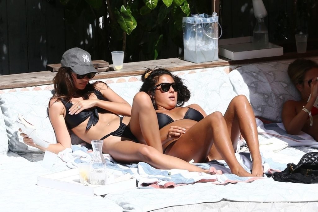Modelo, actriz, estrella de The Fappening Emily Ratajkowski muestra su diminuto bikini mientras pasa el rato junto a la piscina con amigos, 16/10/2019. Emily luce genial con el bikini negro mientras disfruta del descanso.