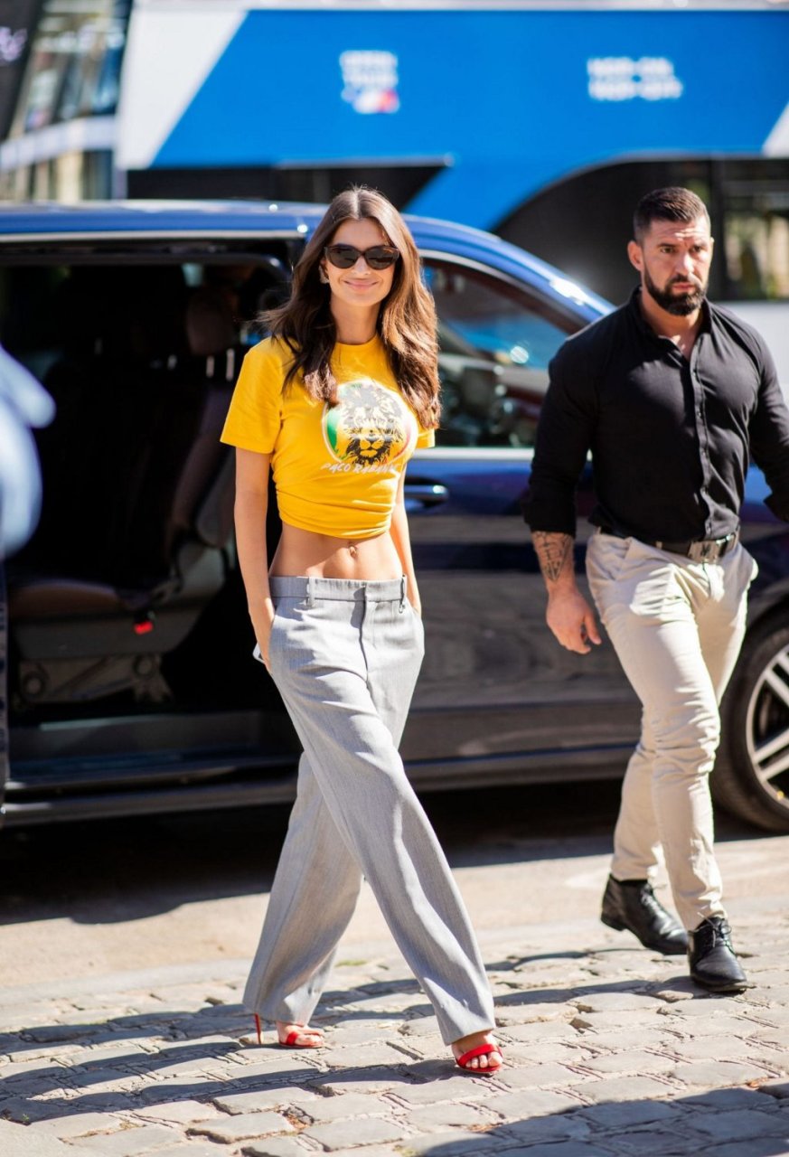 Modelos Emily Ratajkowski (27) y Jordan Barrett asisten a Paco Rabanne Primavera/Verano 2018 en el Grand Palais durante la Semana de la Moda de París en París, 27/09/2018.