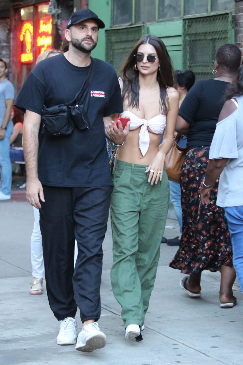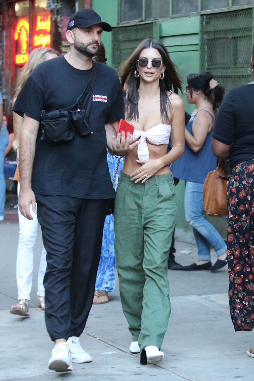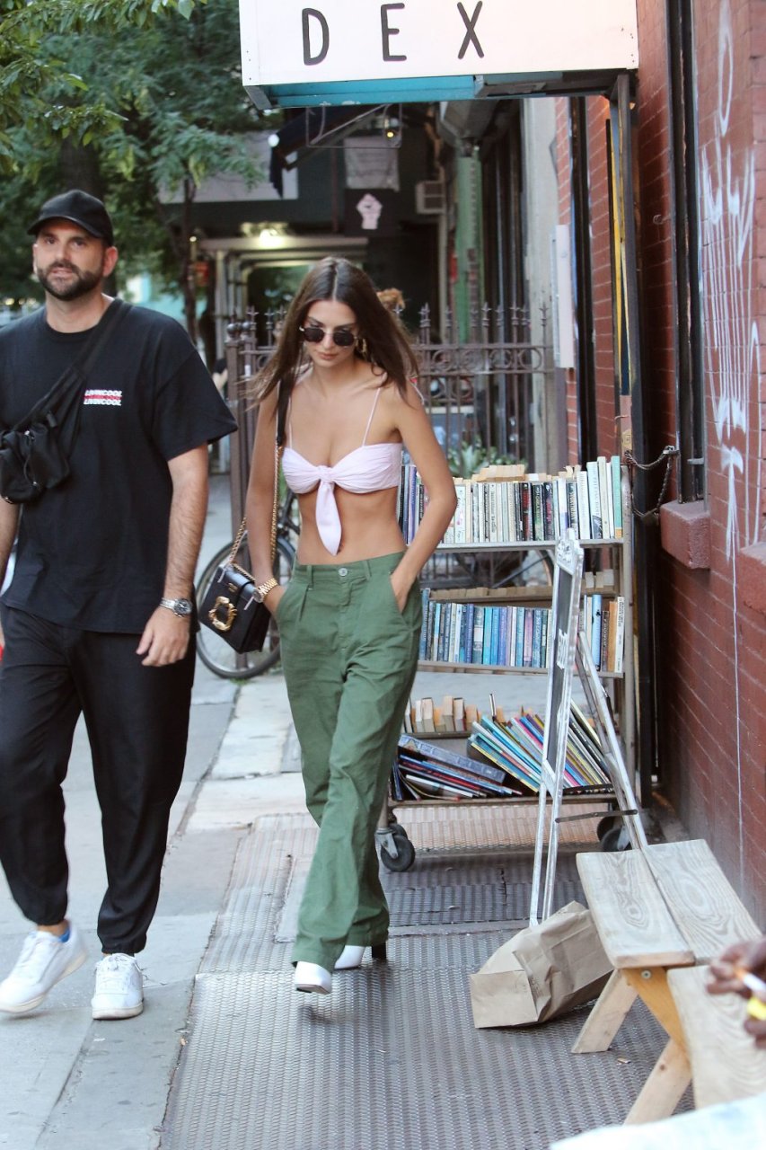Model Emily Ratajkowski fue vista en el Bowery Hotel en la ciudad de Nueva York, 20/07/2018. La atractiva y voluptuosa llevaba un top escaso y pantalones kaki verdes.
