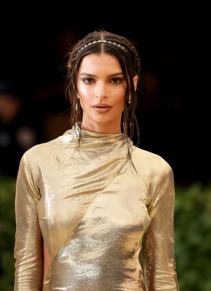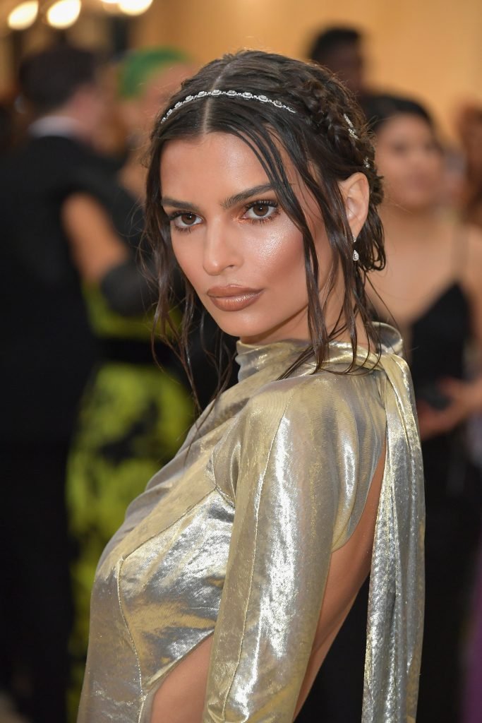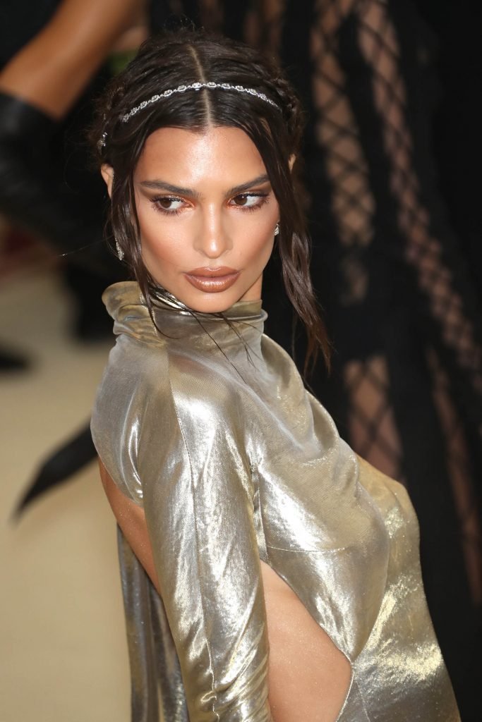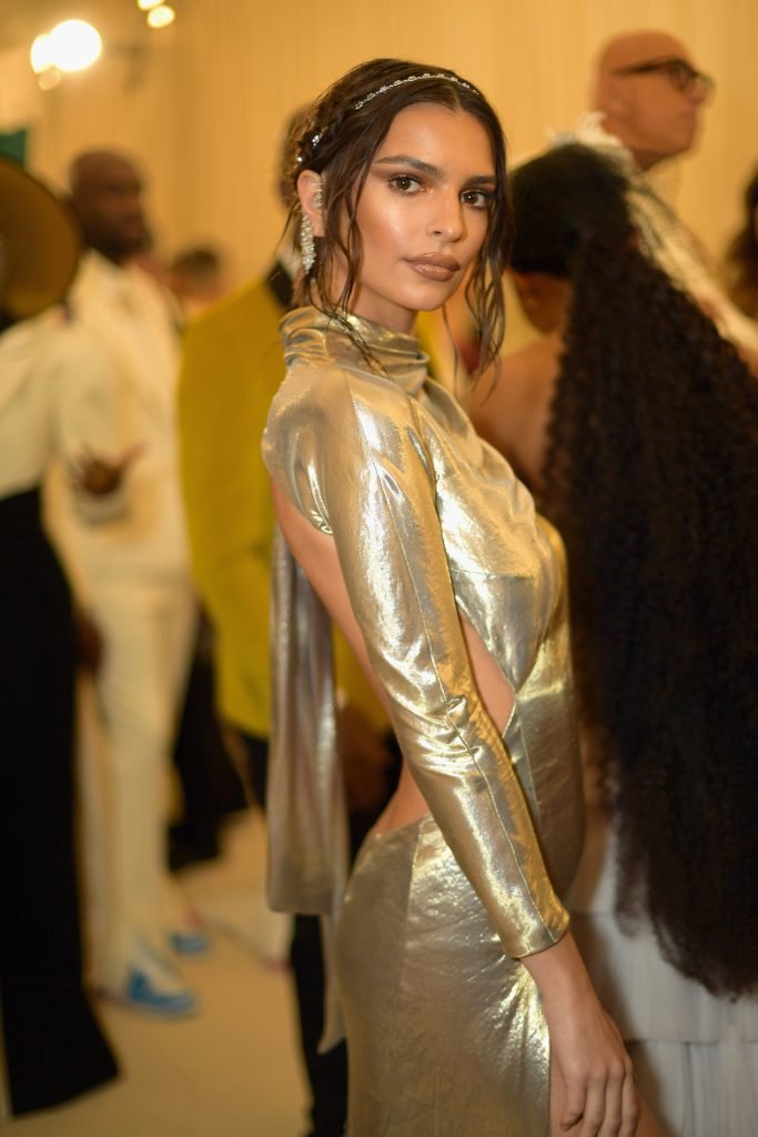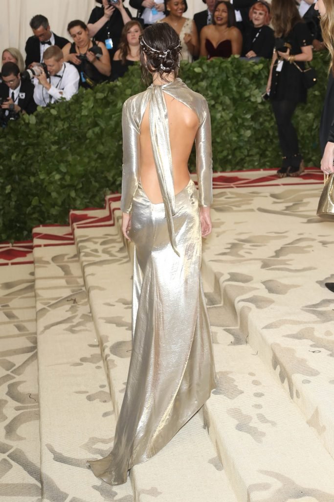 Modelo y actriz Emily Ratajkowski (26) muestra su figura esbelta, piernas y destellos de ropa interior en la Gala del Instituto de Vestuario 2018 en la ciudad de Nueva York. La impresionante morena llevaba un vestido plateado con la espalda descubierta.
