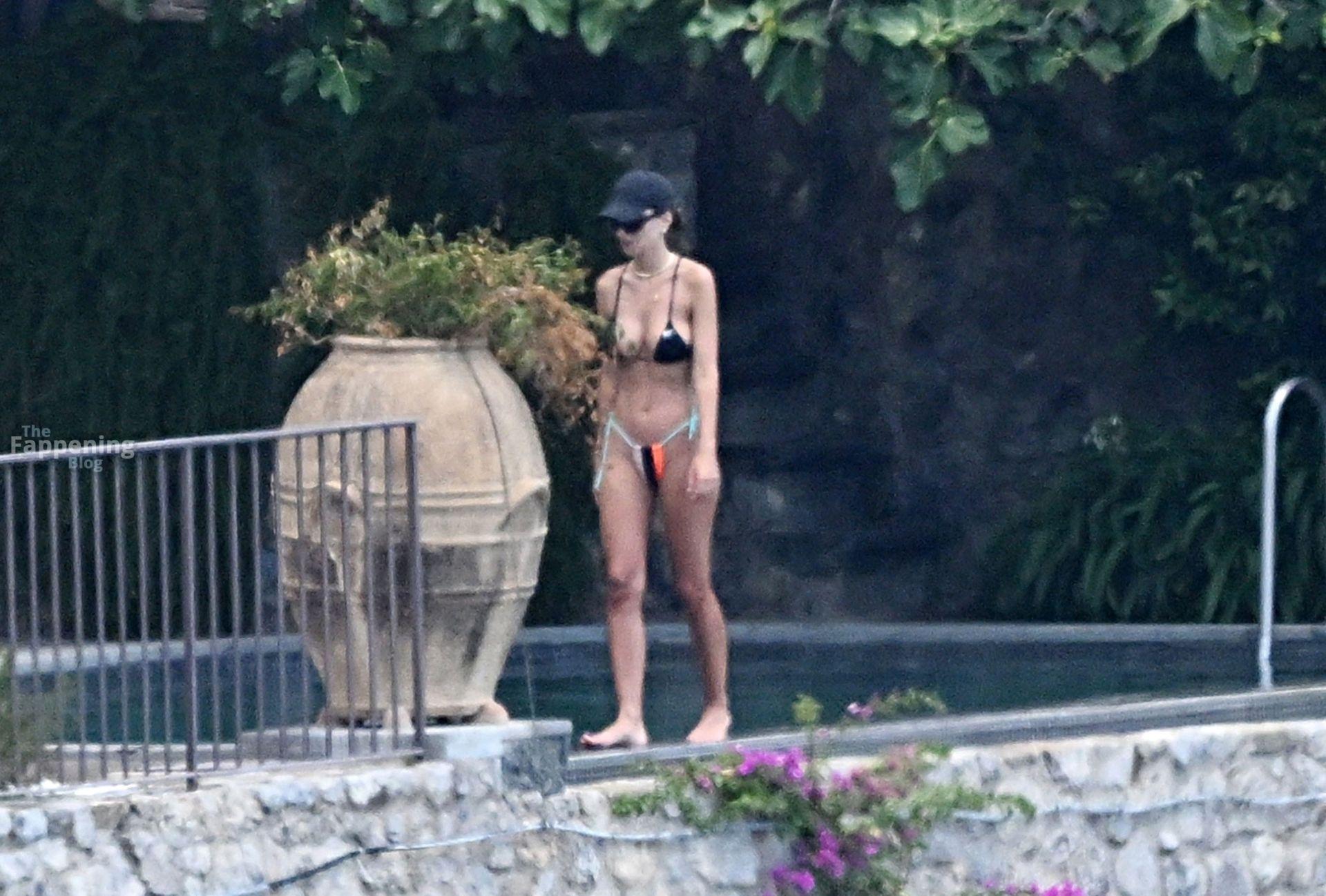 Emily Ratajkowski fue fotografiada con un diminuto bikini negro en la Costa Amalfitana de Italia, mostrando sus grandes pechos y un tanga que dejaba al descubierto todo su trasero. La modelo y actriz estadounidense estaba relajándose junto a la piscina con su nuevo hombre, el DJ Orazio Rispo, y su hijo Sylvester.