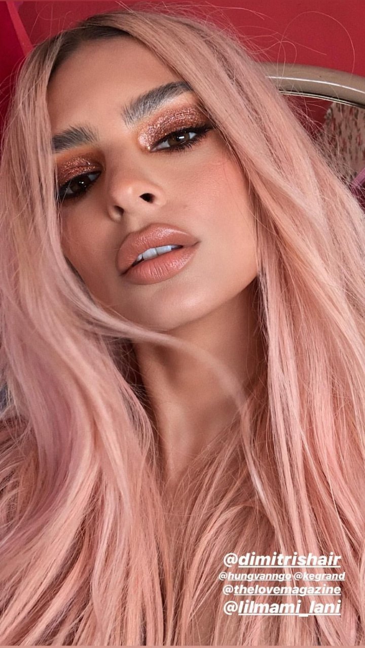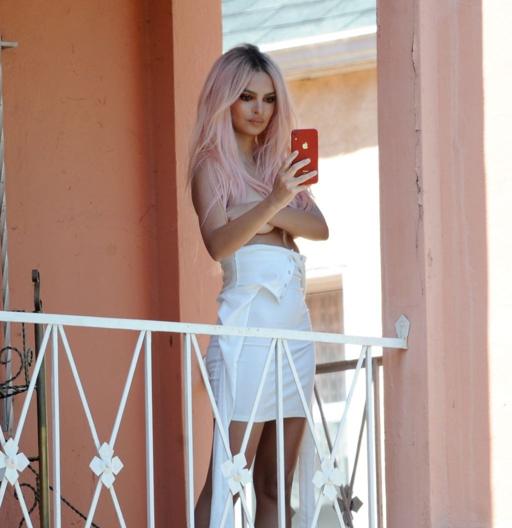 Emily Ratajkowski aparece posando topless en una sesión de fotos para la revista “Love” en Los Ángeles, 17/04/2019. La modelo de 27 años lució una peluca rosa mientras se levantaba su mini vestido blanco durante la arriesgada sesión al aire libre.