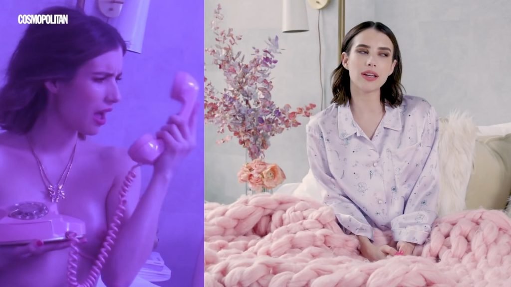 Actriz Emma Roberts accidentalmente mostró su pecho mientras realizaba una nueva sesión de fotos para Cosmopolitan en el video de la entrevista “Under the Covers” (mayo 2019). ¡Mira el video Nudogram sin censura a continuación!