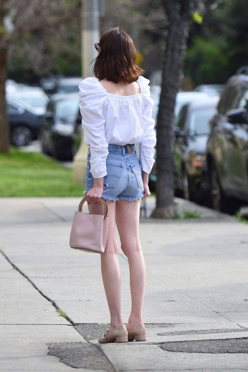 Actriz Emma Roberts (28) fue vista en la calle, usando shorts de mezclilla y mostrando sus piernas sexys para los fotógrafos – Los Ángeles, 14/04/2019.