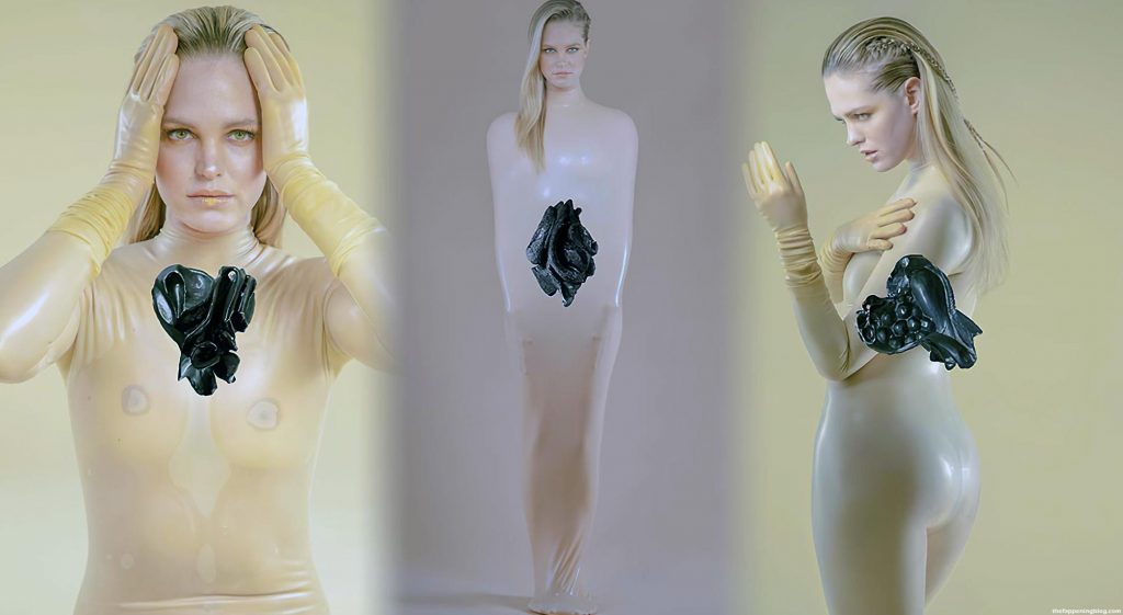 Check this out, guys! Here are a few new photos of Erin Heatherton! We can see her naked tits and pussy underneath that see-through bodysuit! This was done for a photoshoot for Maria Ponce’s 2020 exhibition.