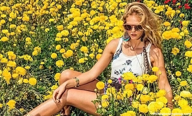 Besides Erin Heatherton’s nudes, topless and see-thru images we shared above, she gave us her ass and feet again. Our sweet Victoria’s Secret Angel has freckles and smiles like an absolute angel. Here she showed sideboobs while holding the tits with her hands, bikini figure, feet in heels, and bare. Erin Heatherton is one of my faves leaked celebs; we all know that!