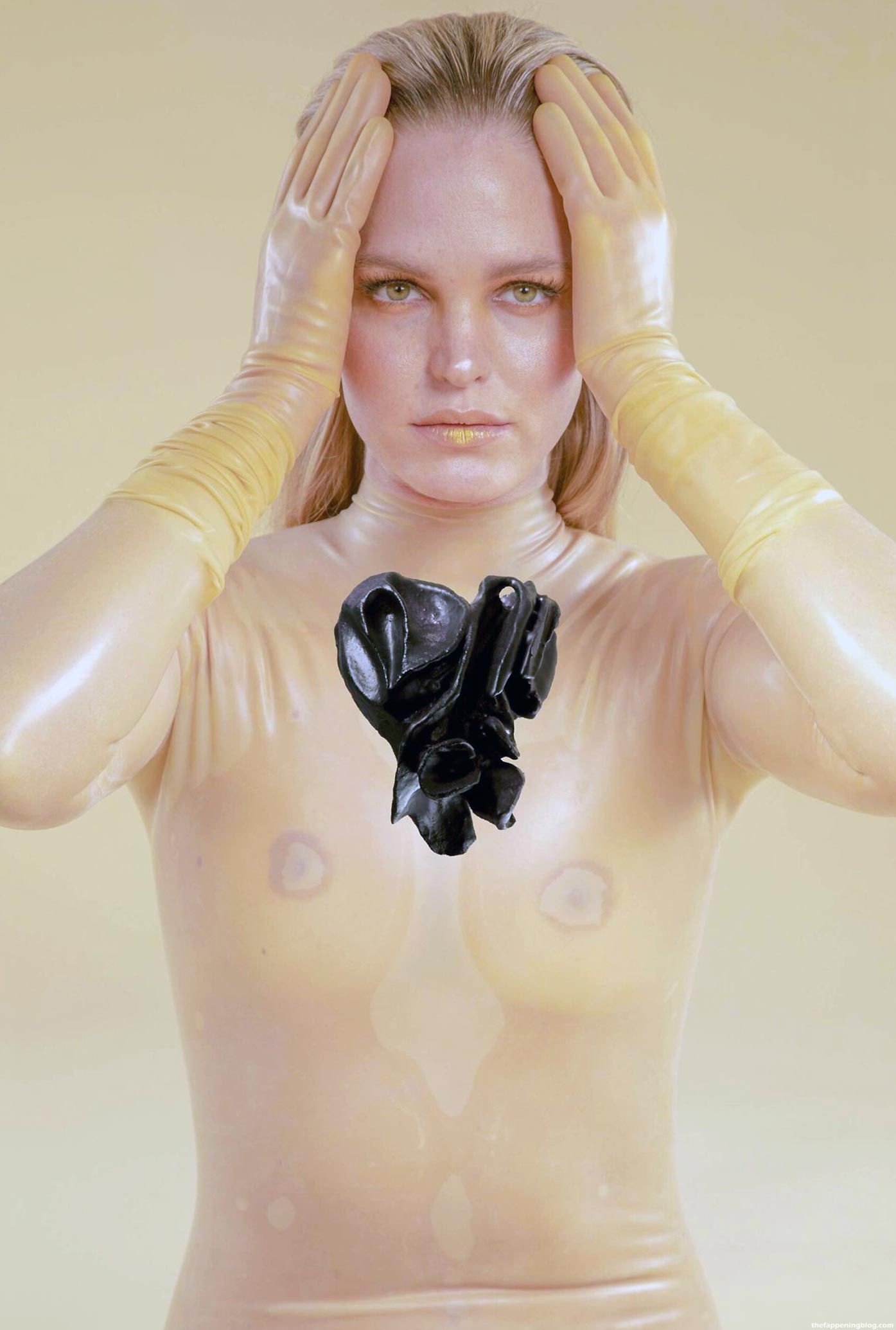 Check this out, guys! Here are a few new photos of Erin Heatherton! We can see her naked tits and pussy underneath that see-through bodysuit! This was done for a photoshoot for Maria Ponce’s 2020 exhibition.