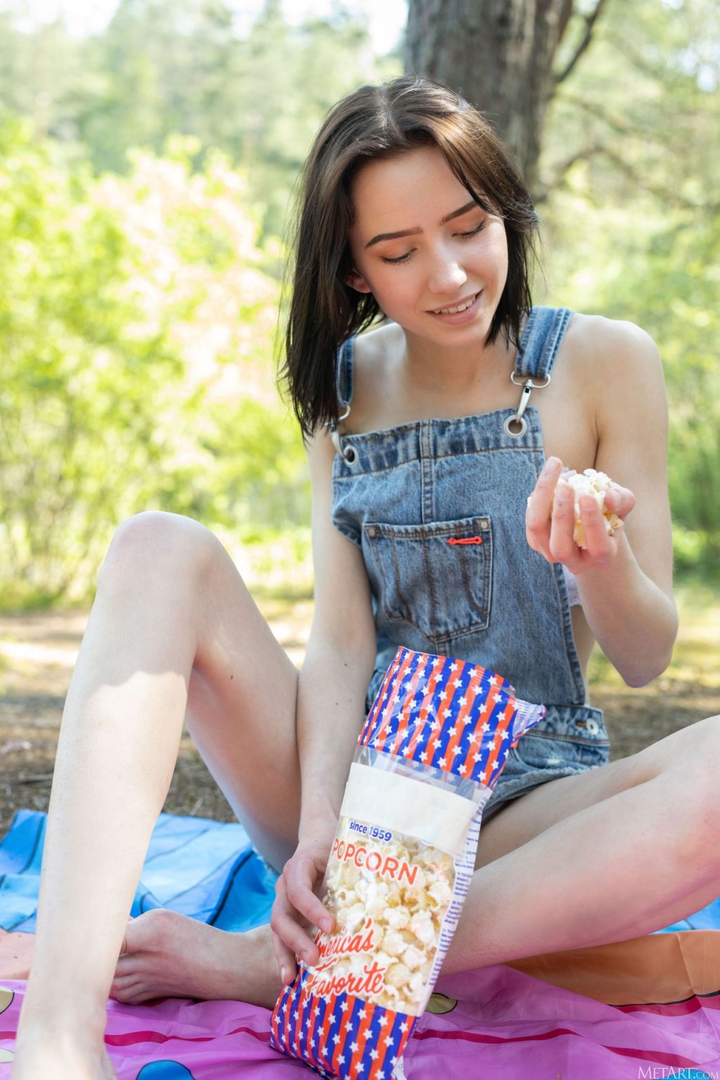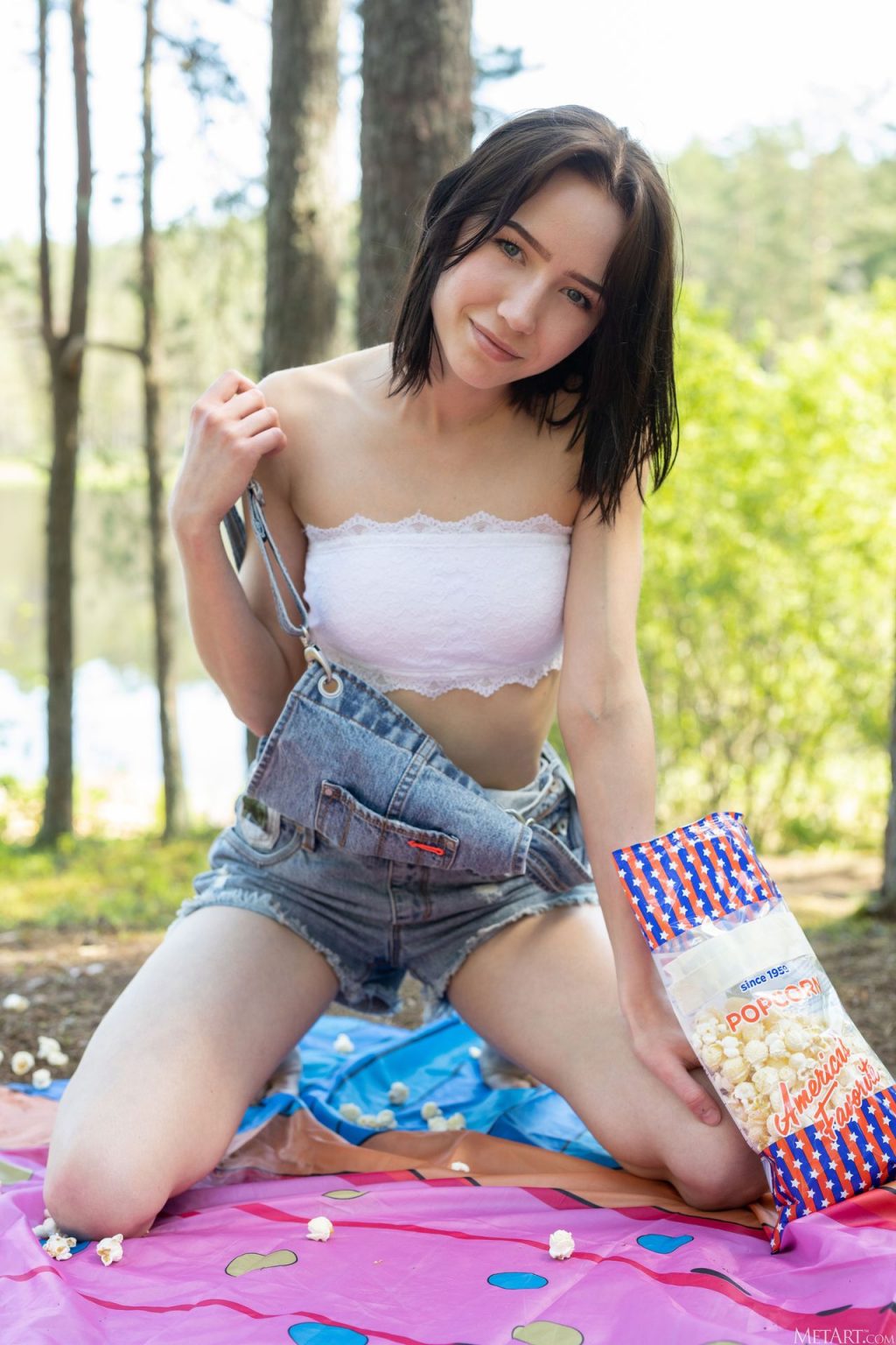 Erna, una belleza pelirroja y delgada, posa desnuda en una nueva sesión de fotos para MetArt (2021). Esta vez Erna posa desnuda en un parque con palomitas de maíz.