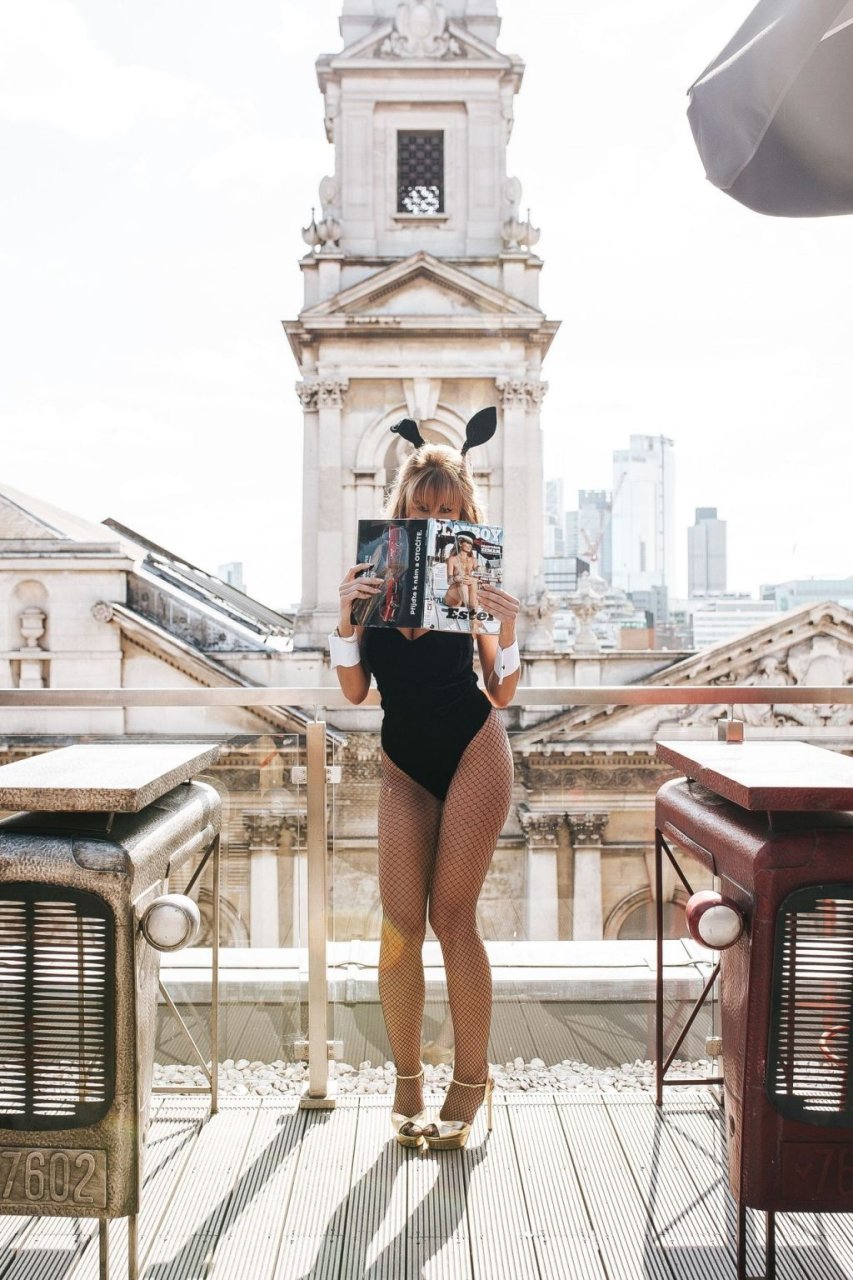 “The Real Housewives of Cheshire” estrella Ester Dee lanza su portada de Playboy en Londres ayer, 09/10/2019. La estrella de reality que ha estado en el programa desde 2016 reveló recientemente que posaba para la portada de la revista en su país natal, la República Checa. Ester fue vista con un disfraz de conejita Playboy mientras posaba con gran estilo en el juzgado de Shoreditch, Londres.