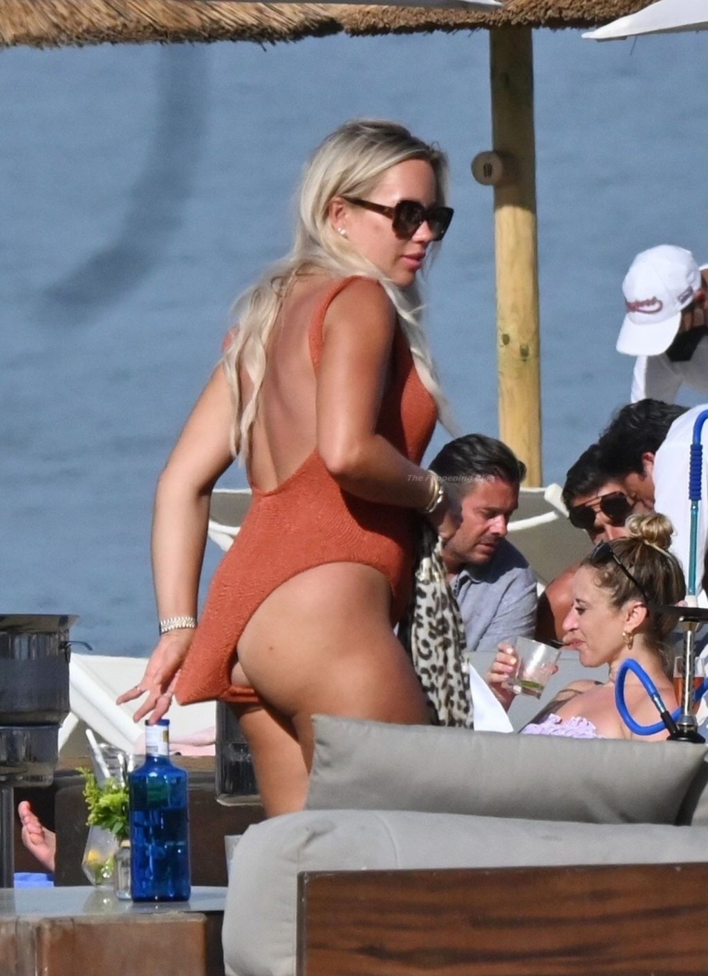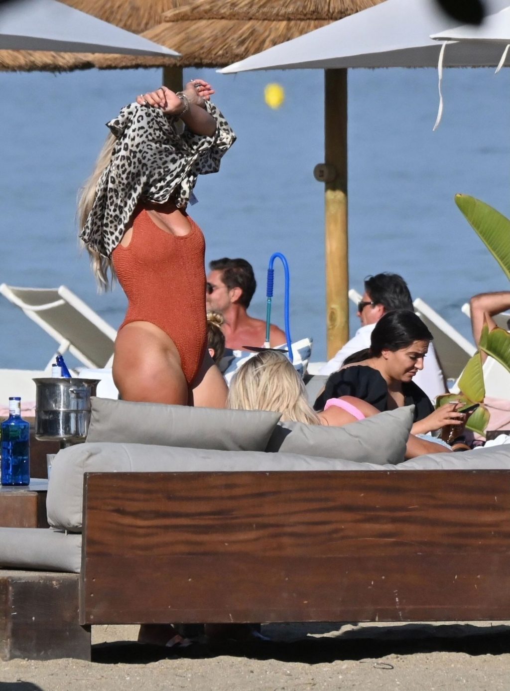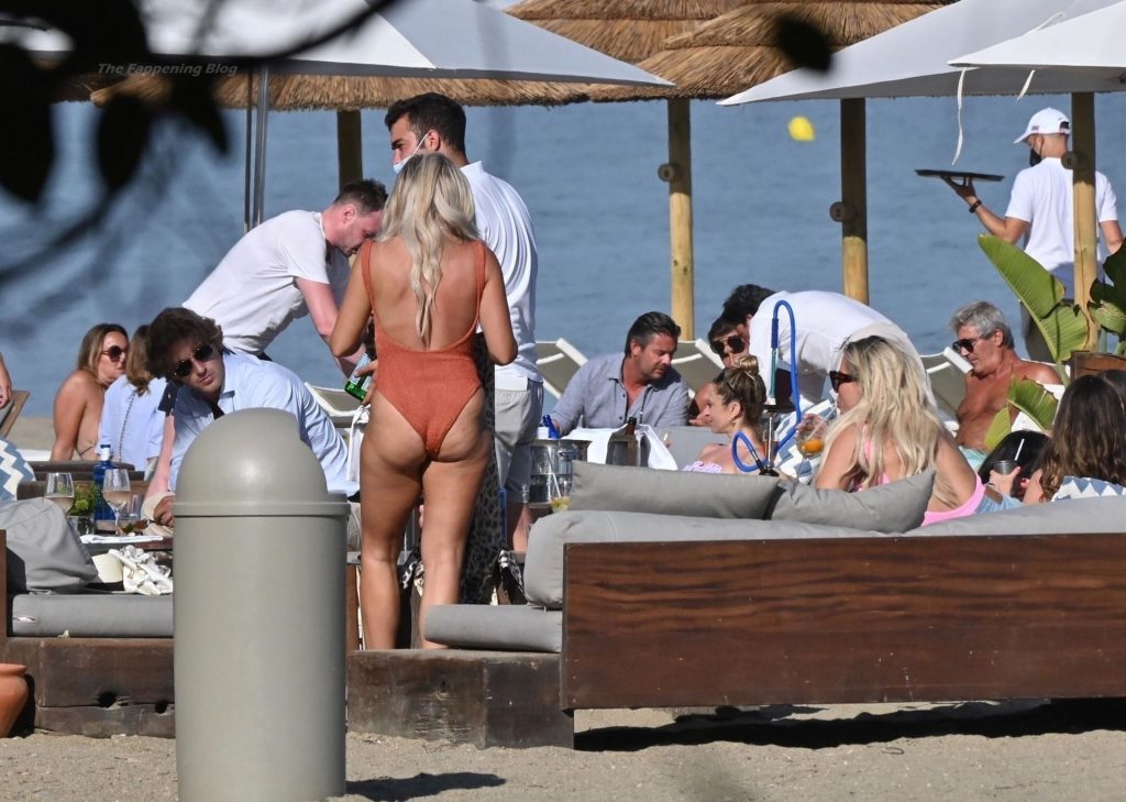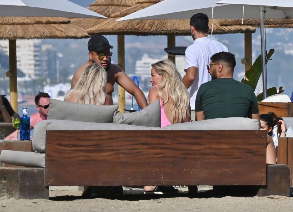 Las hermanas gemelas Esther y Anne Vedder presumen de sus cuerpos en trajes de baño a la moda mientras se las ve disfrutando con bebidas al sol y conociendo nuevos amigos en Marbella, 06/06/2021.