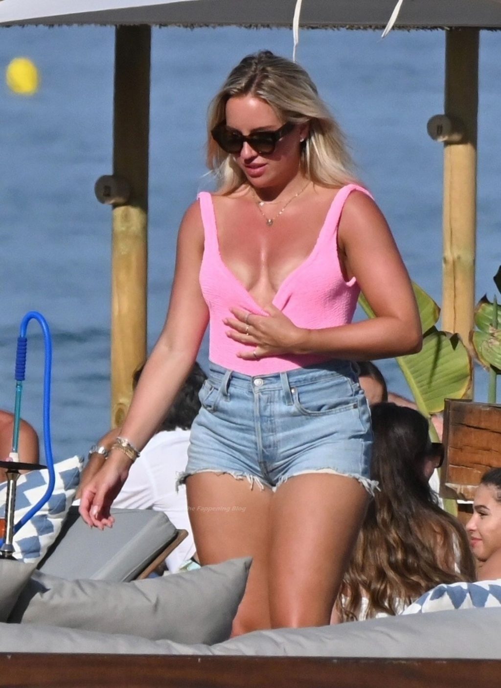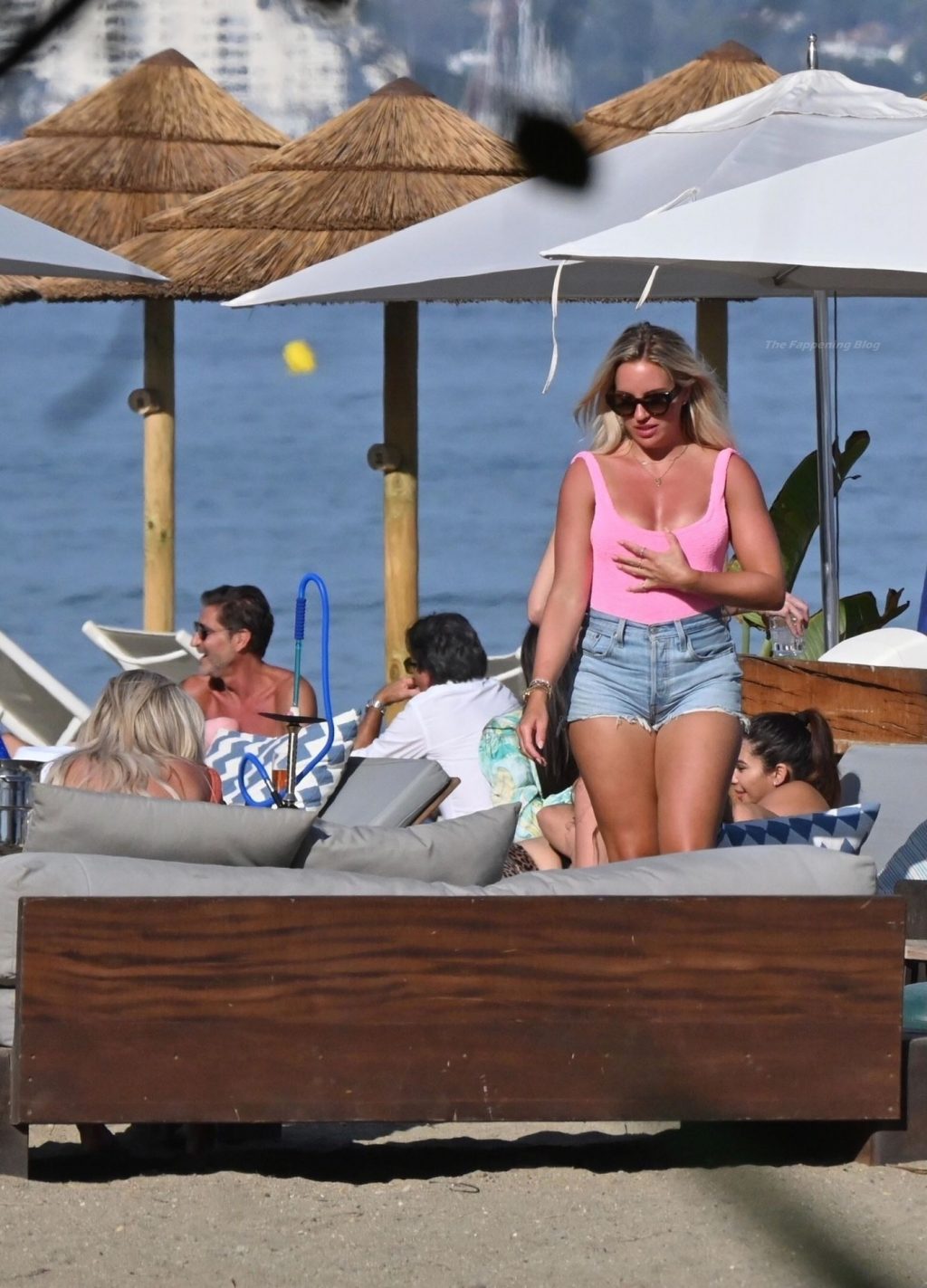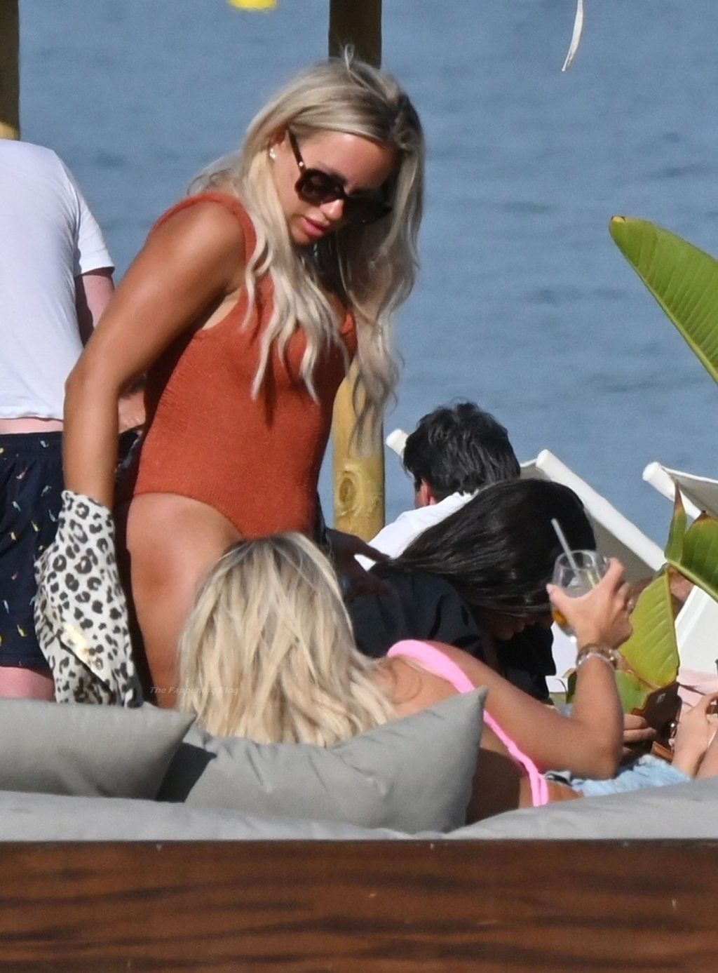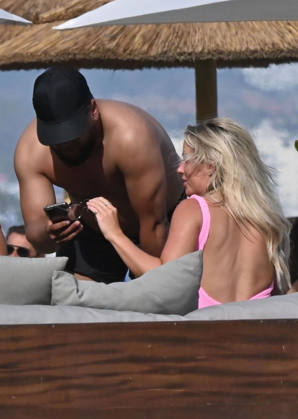 Las hermanas gemelas Esther y Anne Vedder presumen de sus cuerpos en trajes de baño a la moda mientras se las ve disfrutando con bebidas al sol y conociendo nuevos amigos en Marbella, 06/06/2021.