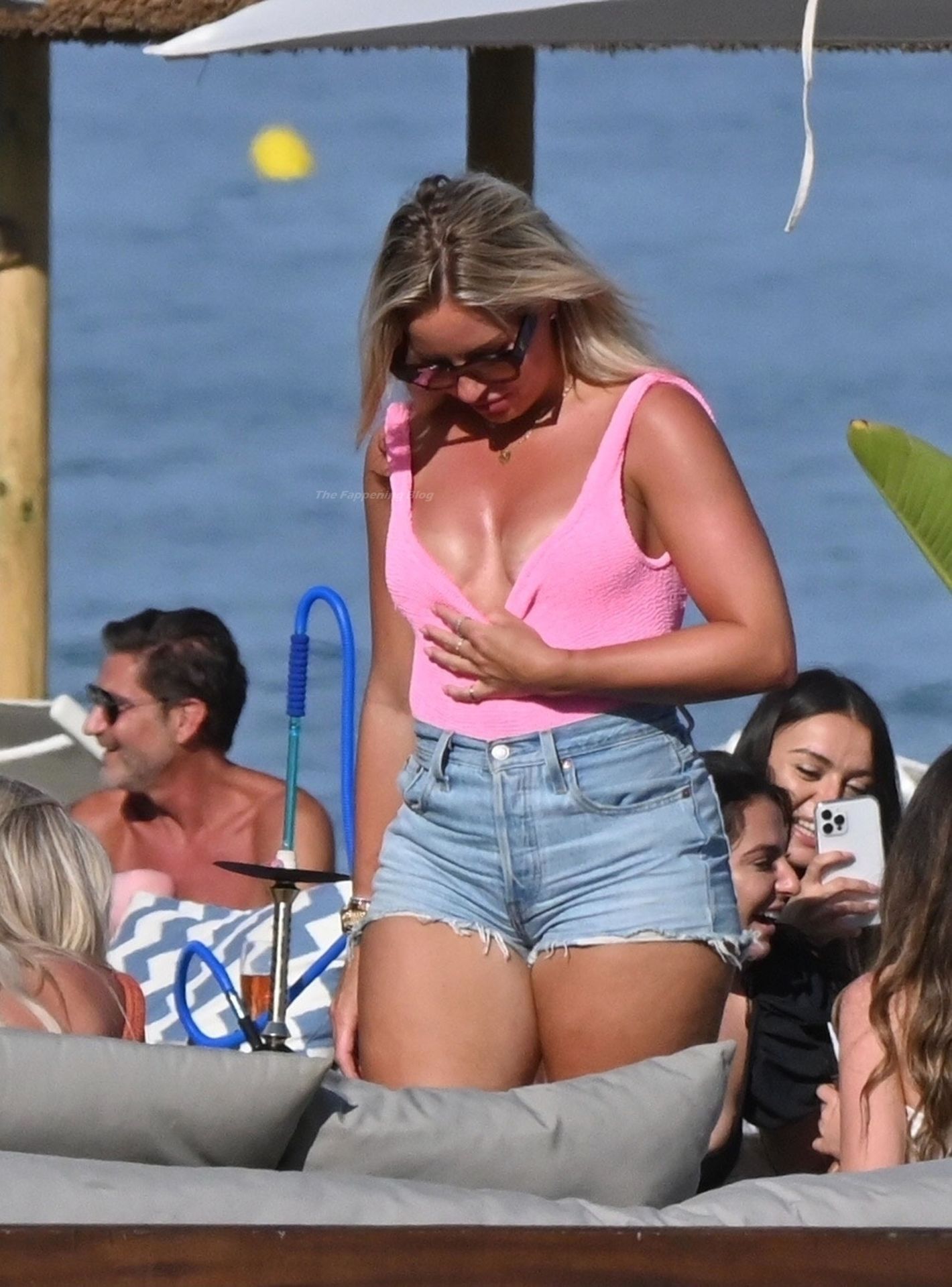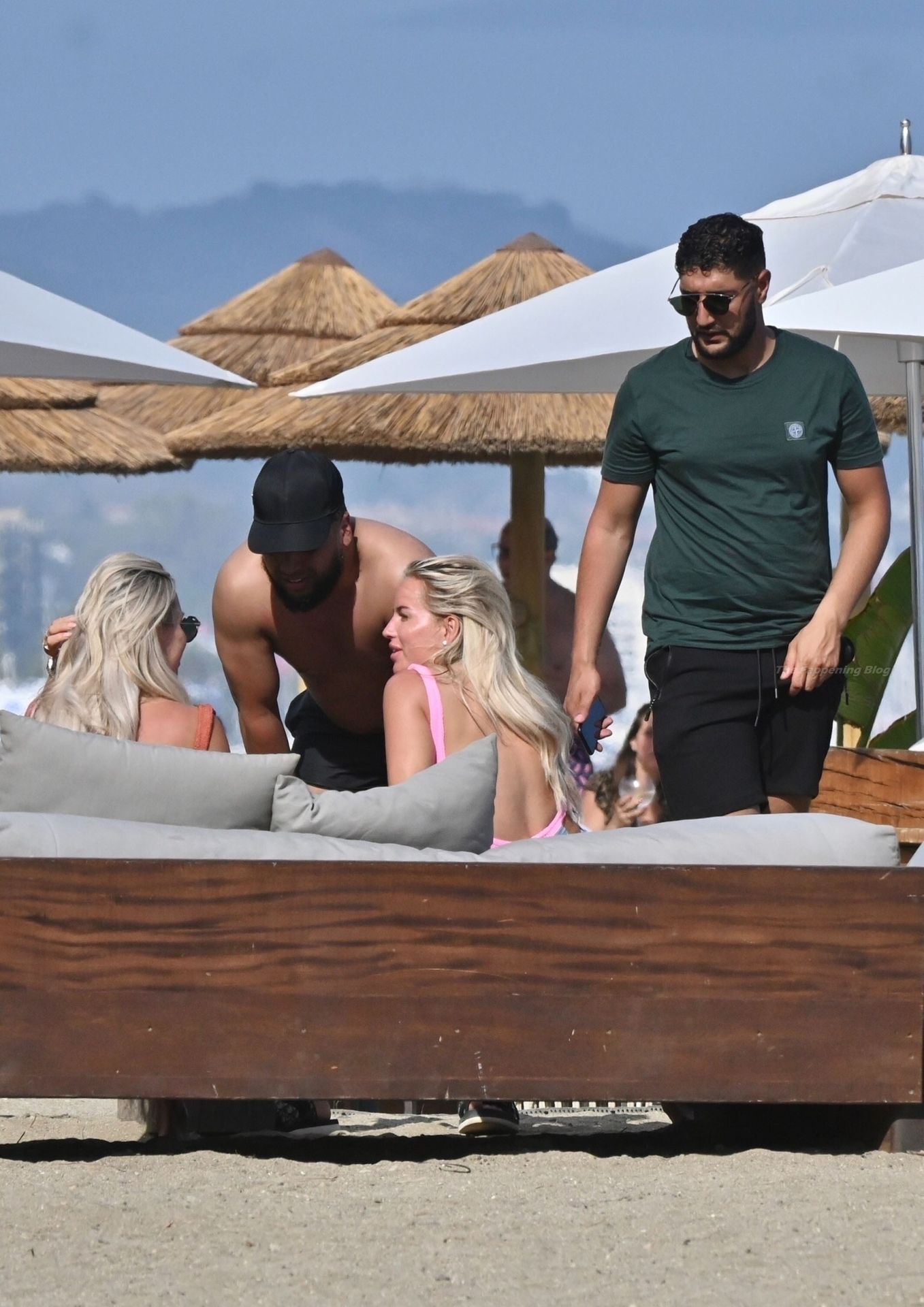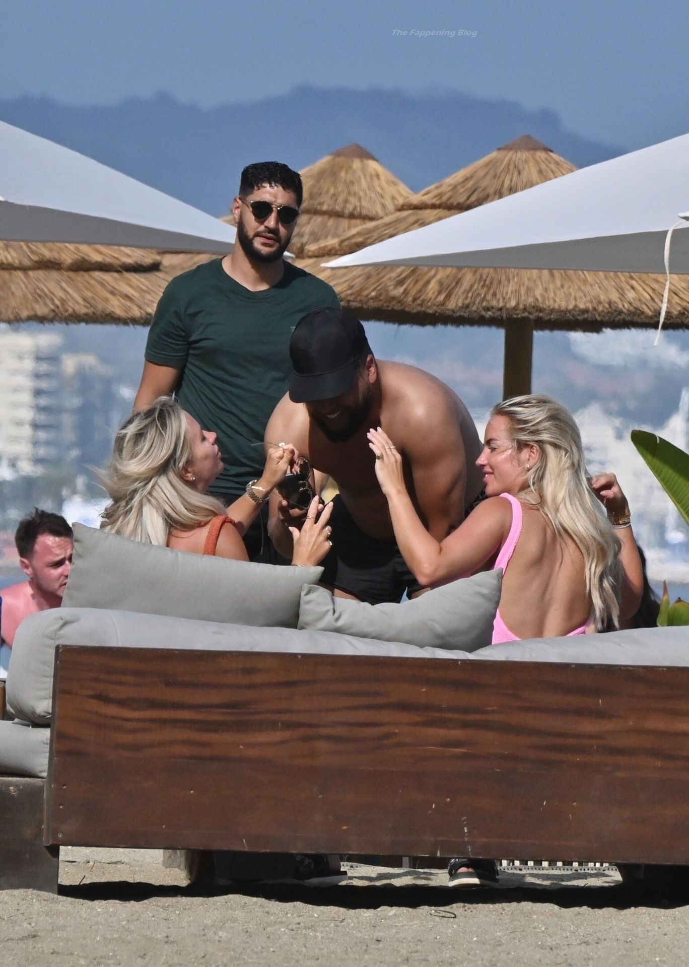 Las hermanas gemelas Esther y Anne Vedder presumen de sus cuerpos en trajes de baño a la moda mientras se las ve disfrutando con bebidas al sol y conociendo nuevos amigos en Marbella, 06/06/2021.
