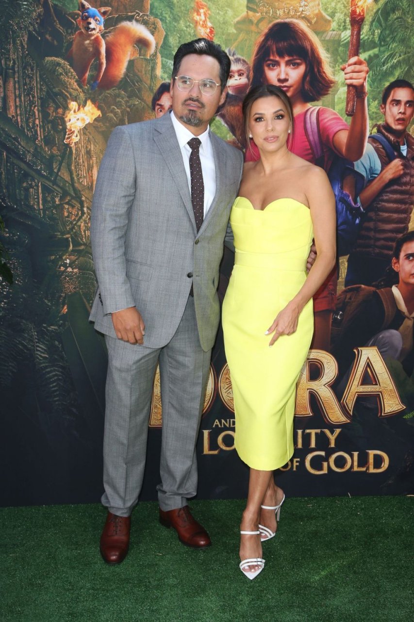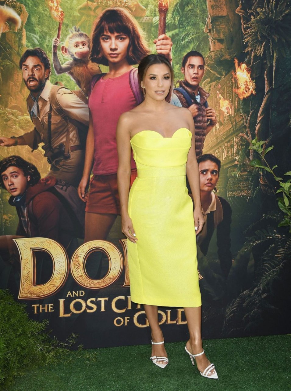 La actriz Eva Longoria llega con un vestido amarillo al estreno en Los Ángeles de ‘Dora y la ciudad perdida’ de Paramount Pictures, celebrado en los Regal Cinemas LA Live en Los Ángeles, 28/07/2019.