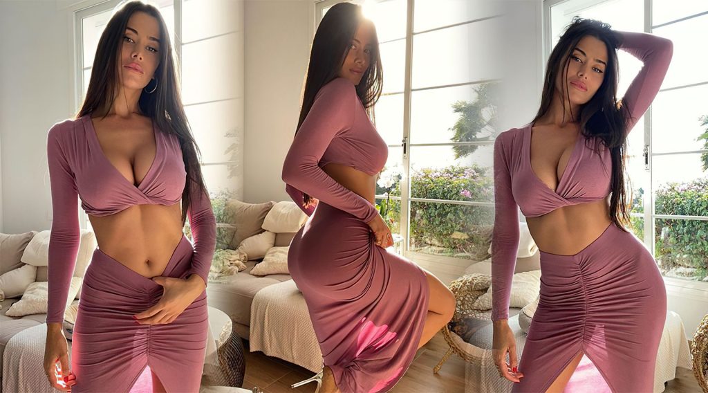 La modelo española Eva Padlock muestra sus pechos y glúteos vistiendo un ajustado conjunto morado de FashionNova para sus casi 2 millones de seguidores en Instagram, 28/02/2021.