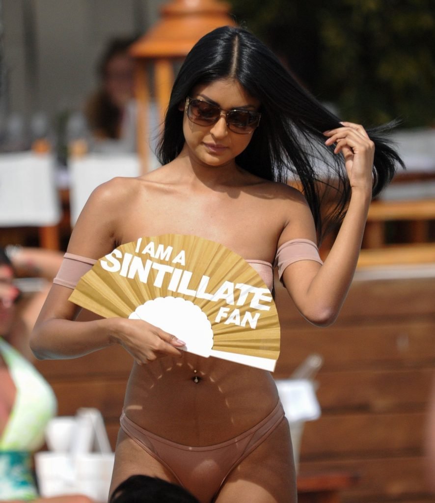 Farah Sattaur luciendo sexy bajo el sol español en la fiesta en la piscina Sintillate en Nikki Beach en Ibiza. Farah Sattaur es una estrella británica de reality (Ex On The Beach). Edad – 31 (nacida el 11 de diciembre de 1985).