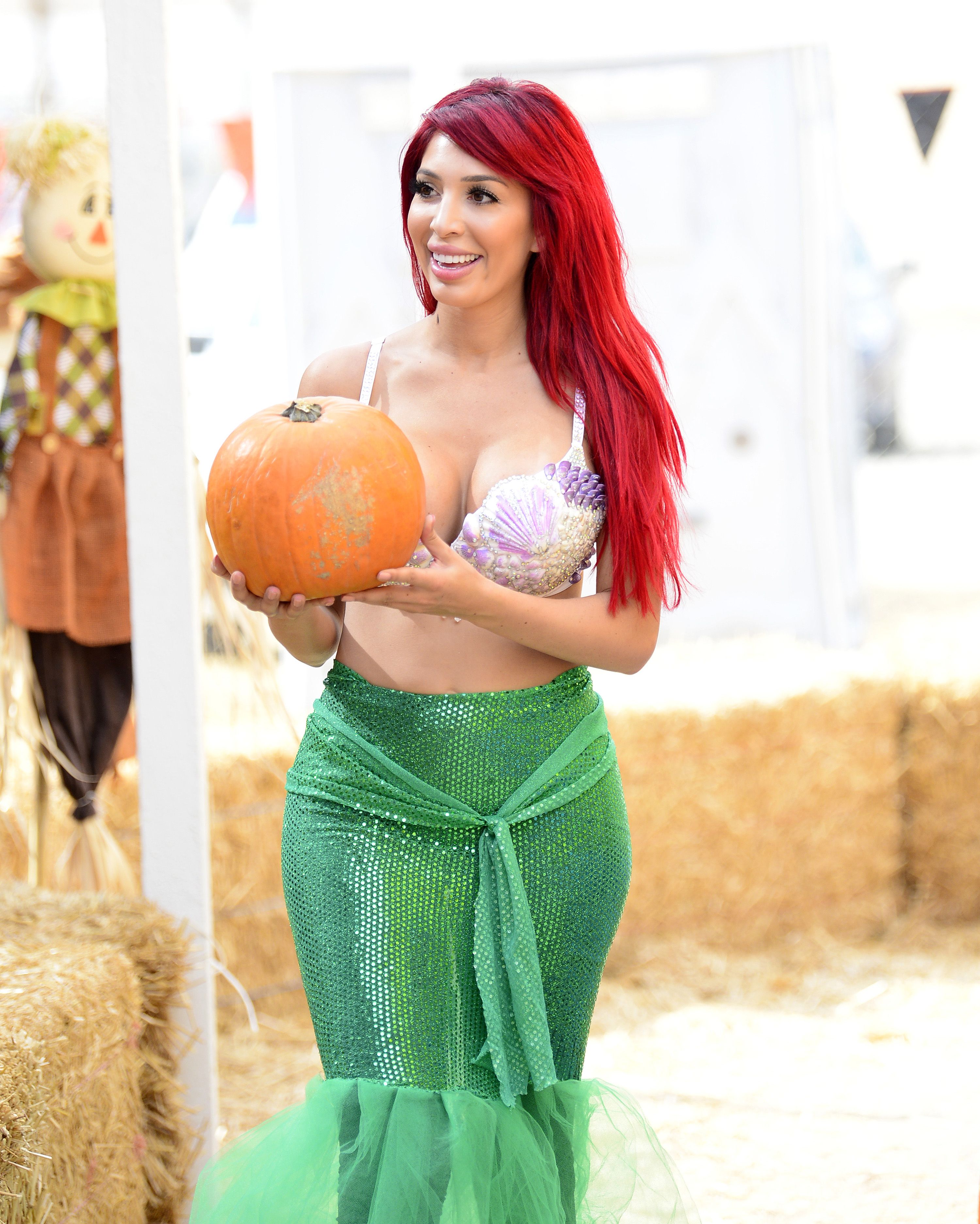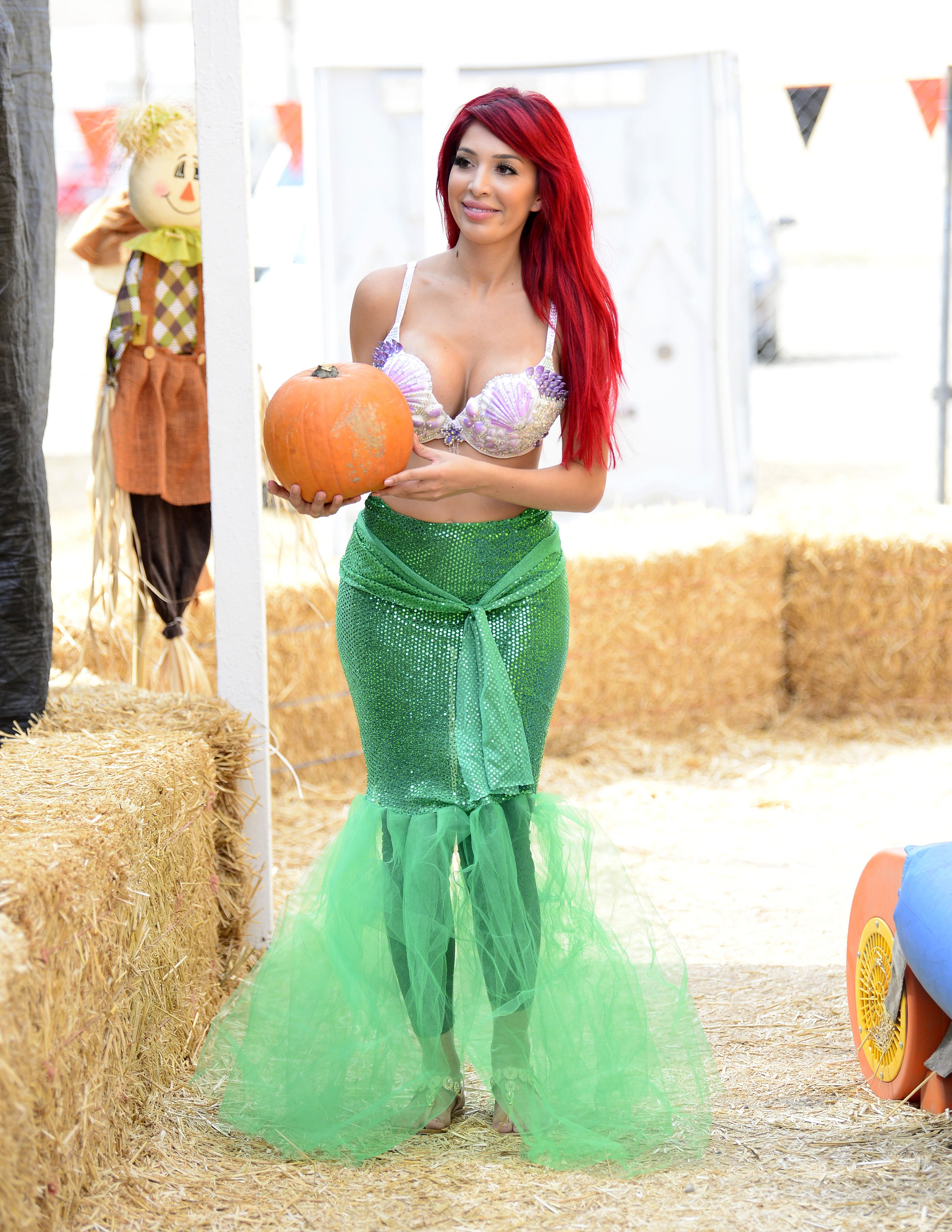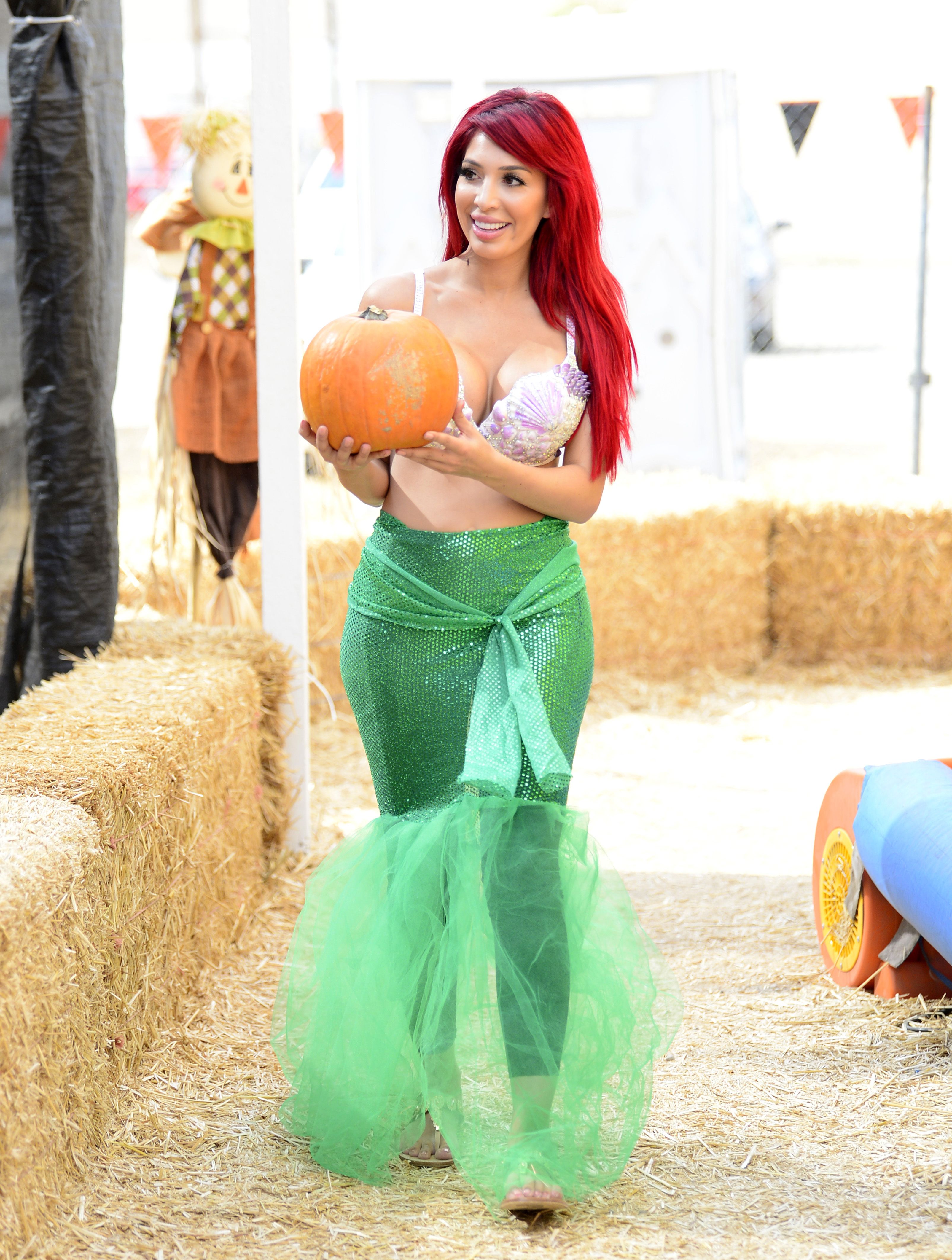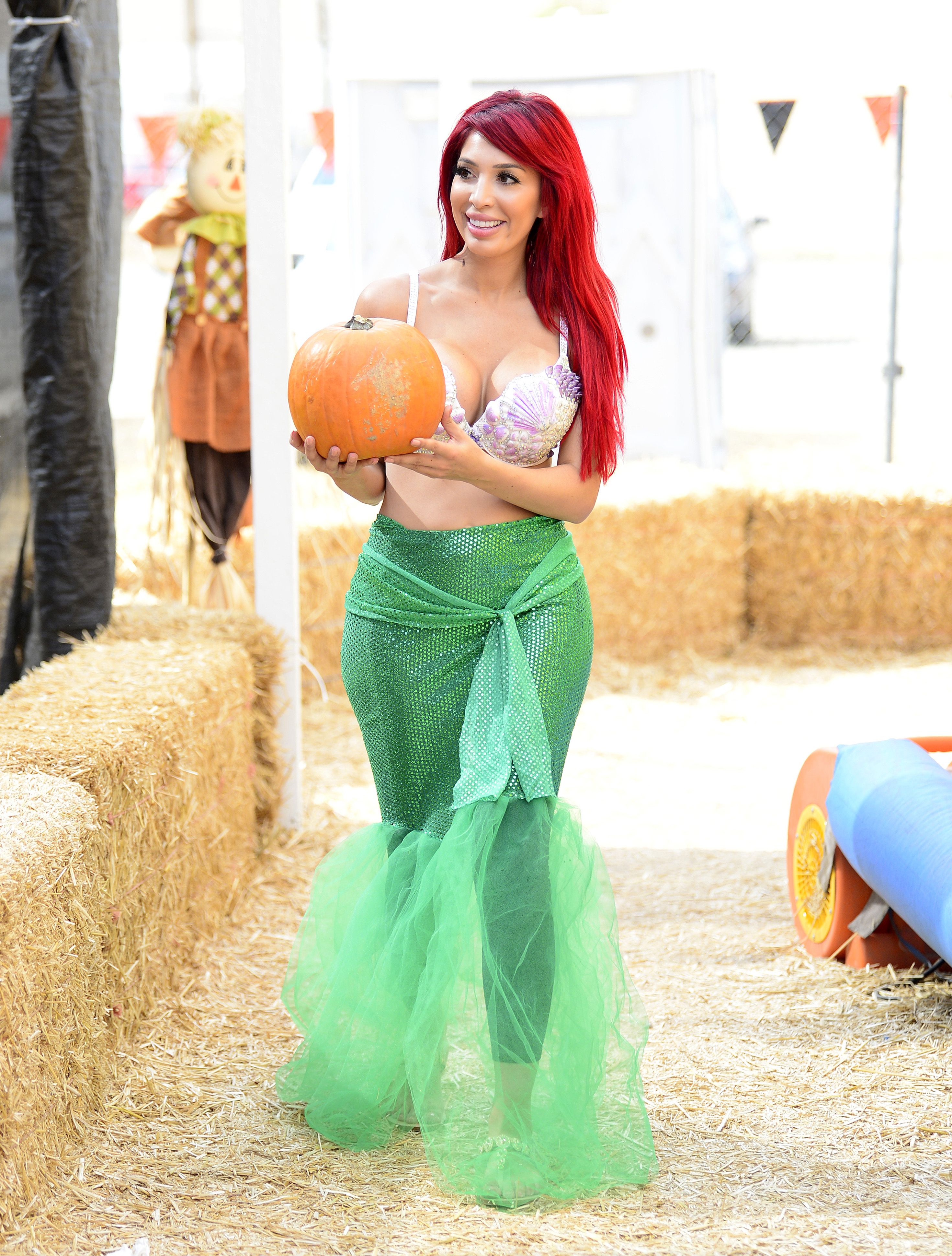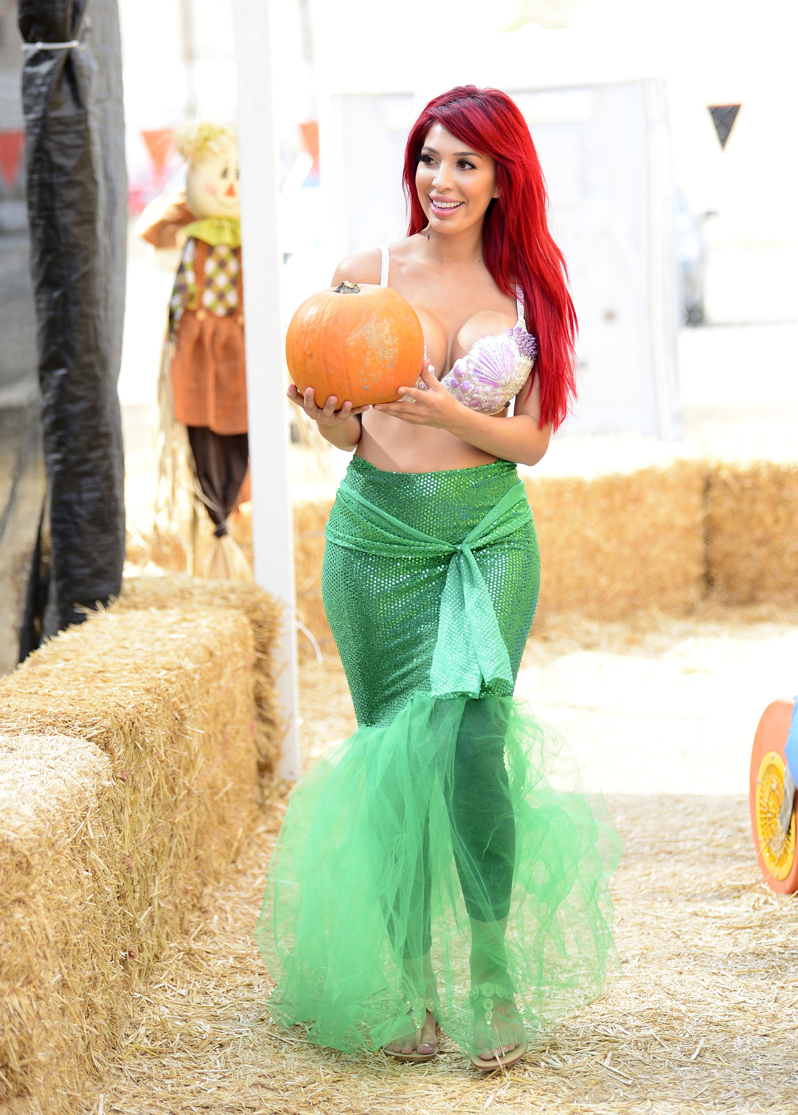 Farrah Abraham luce un atrevido disfraz de sirena para Halloween en un campo de calabazas en Los Ángeles, 27/10/2017. Farrah Abraham es una estrella estadounidense de reality TV, modelo y actriz adulta. Edad – 26 años (31 de mayo de 1991).