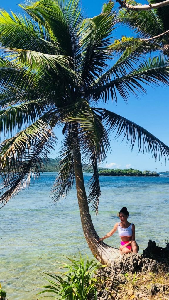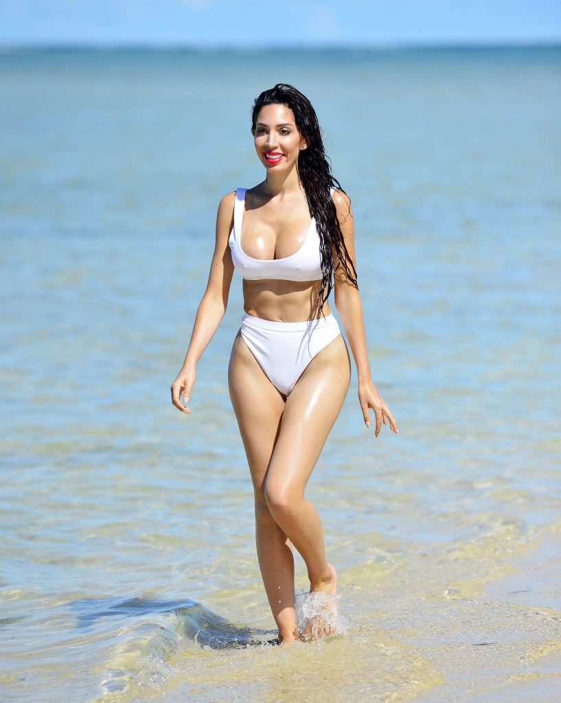 Farrah Abraham, 26, muestra su increíble cuerpo mientras disfruta del sol durante un día en la playa en Fiji, 05/05/2018. La estrella de la televisión reality llevaba un bikini blanco, destacando sus grandes pechos falsos y su trasero al estilo Kardashian.