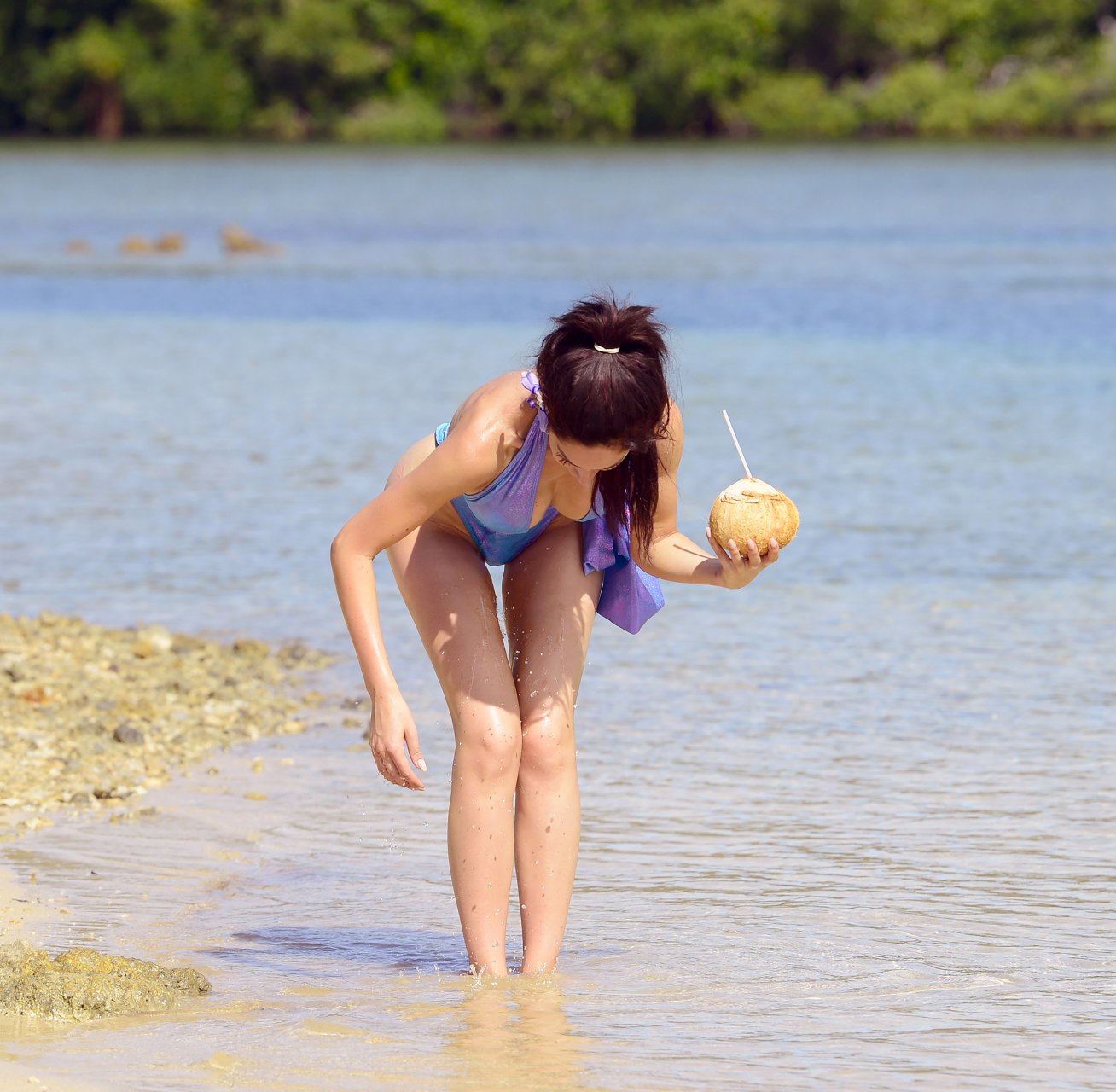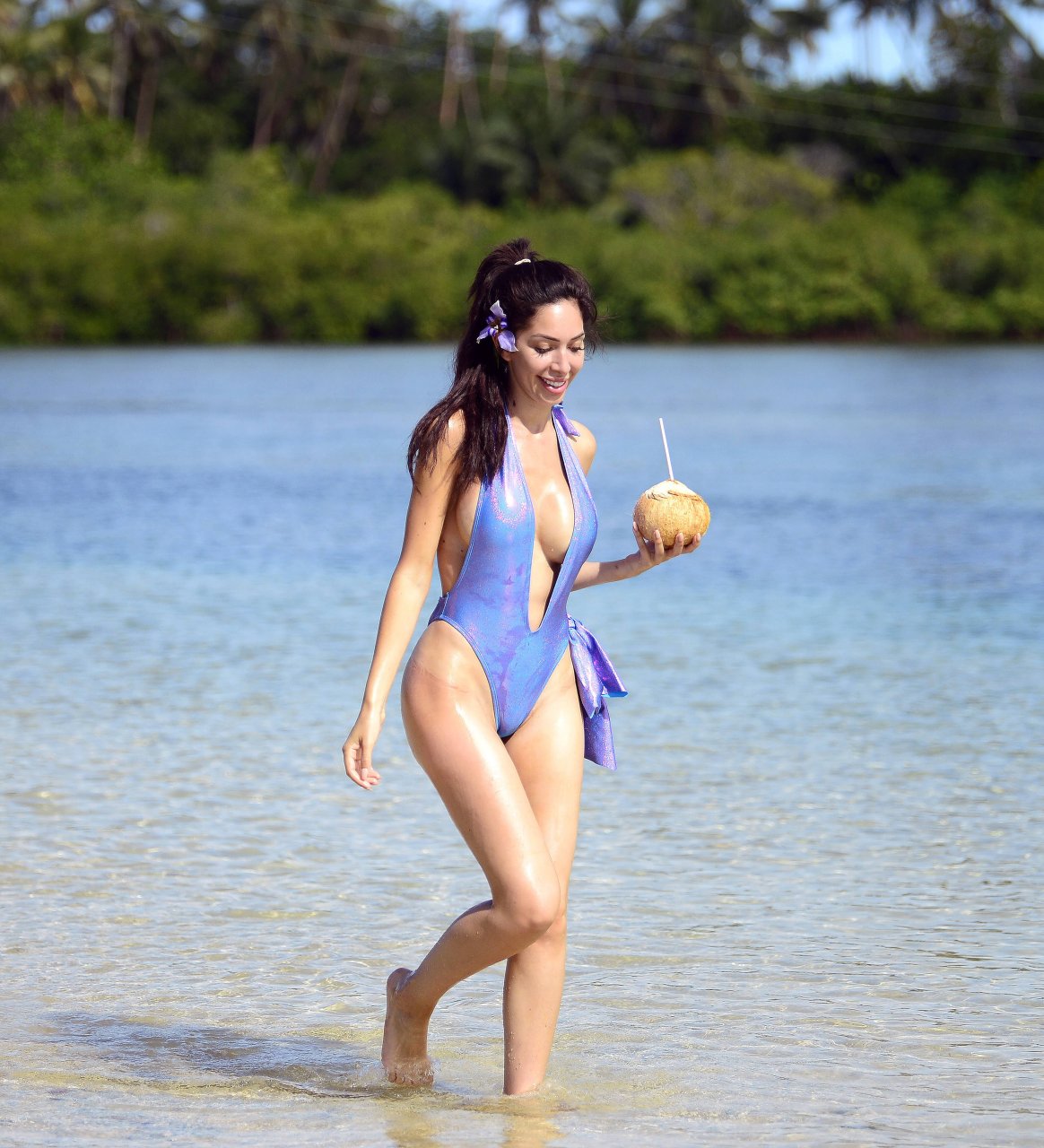 La estrella de reality Farrah Abraham presume su increíble cuerpo en bikini mientras se refresca con un coco fresco en la isla privada Wavi en Fiji, 02/05/2018.