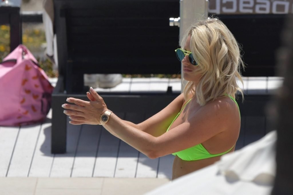 Las estrellas de TOWIE Ferne McCann y Danielle Armstrong presumen de sus cuerpos sexys de vacaciones en Marbella, 01/08/2019.