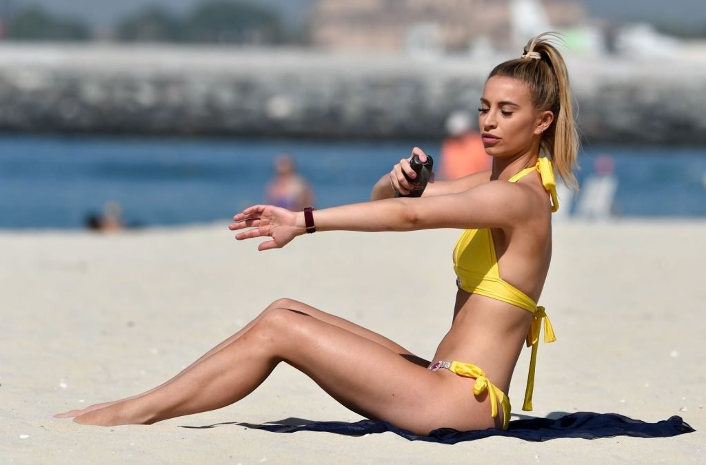 Ferne McCann disfruta de sus vacaciones en un bikini amarillo en Dubái, 29/12/2018. La modelo y estrella de televisión inglesa de 28 años lució su figura en la playa. Ferne lanzó su propio DVD de fitness esta semana “Fit as Ferne.”