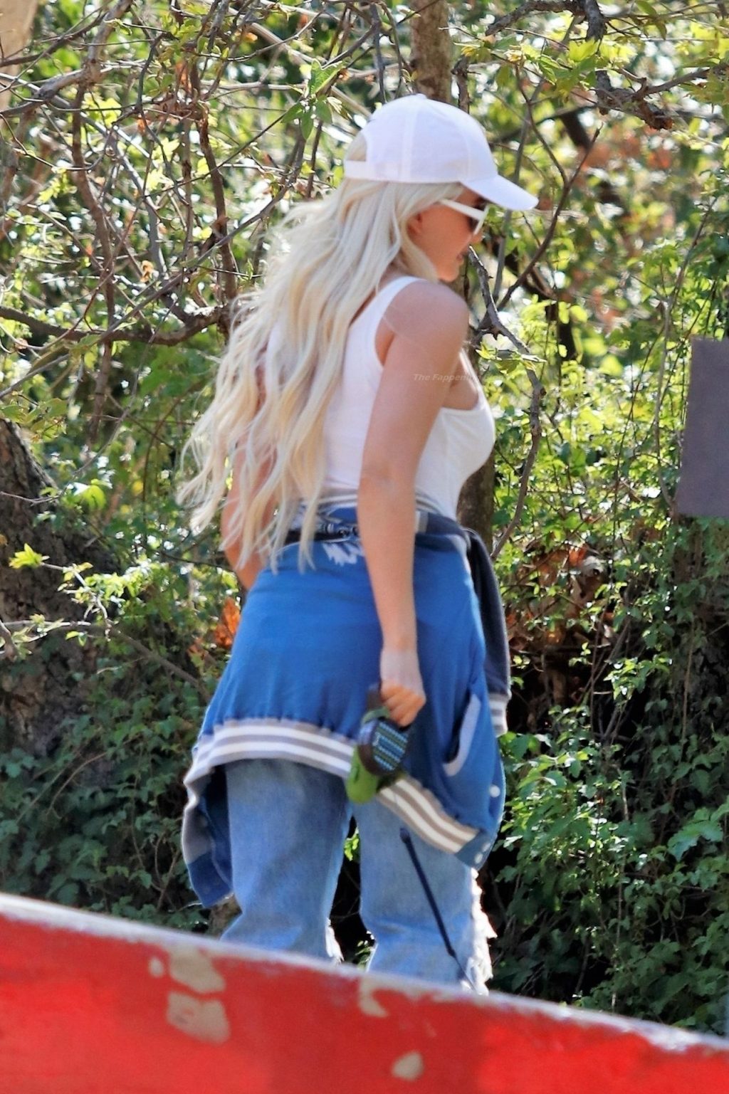 Holly lleva un escote pronunciado que muestra completamente su figura voluptuosa. Holly optó por un par de jeans rasgados en lugar de ropa deportiva para la salida.