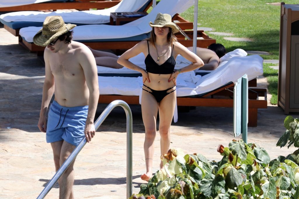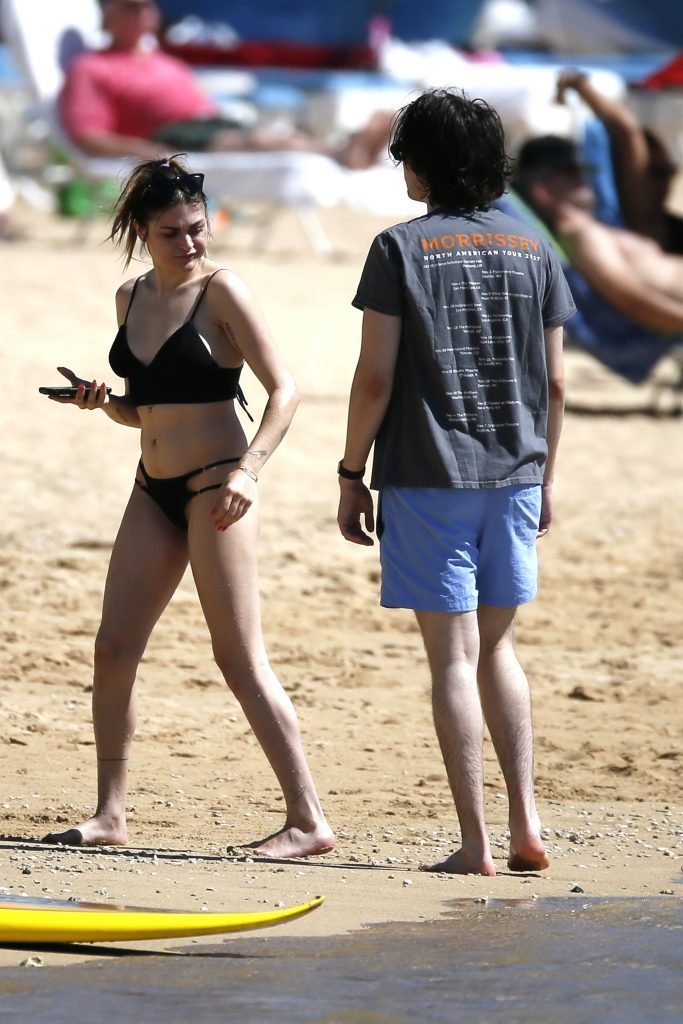 Frances Bean Cobain disfruta de la playa y la piscina en Hawái, 11/02/2018. Frances Bean Cobain es una artista visual y modelo estadounidense. Edad – 25 años.