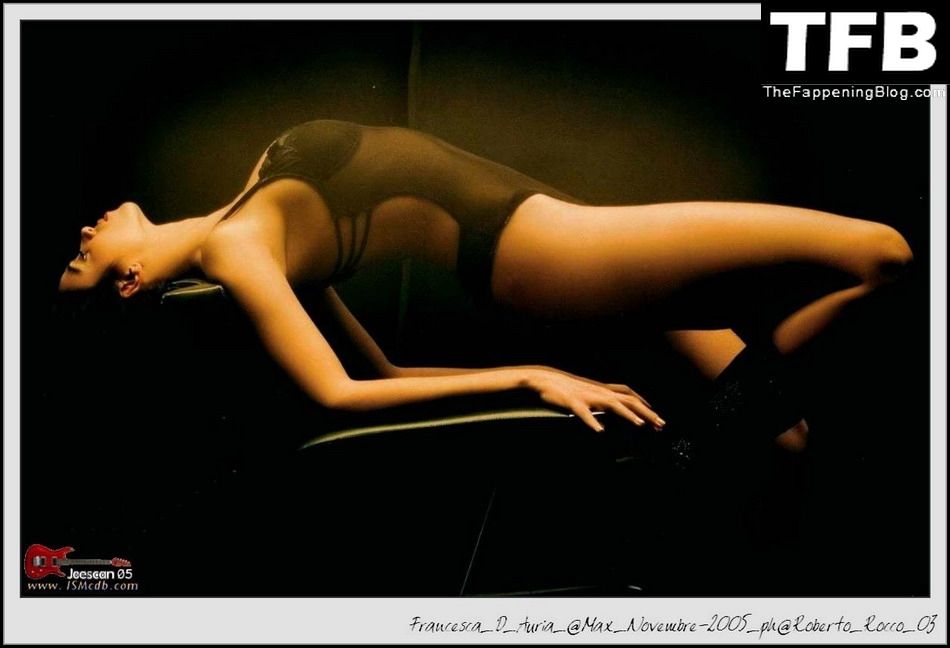 La actriz Francesca D’Auria muestra su hermosa figura en las fotos de revista ligeramente desnuda y sexy a continuación.