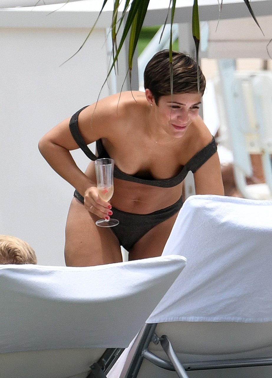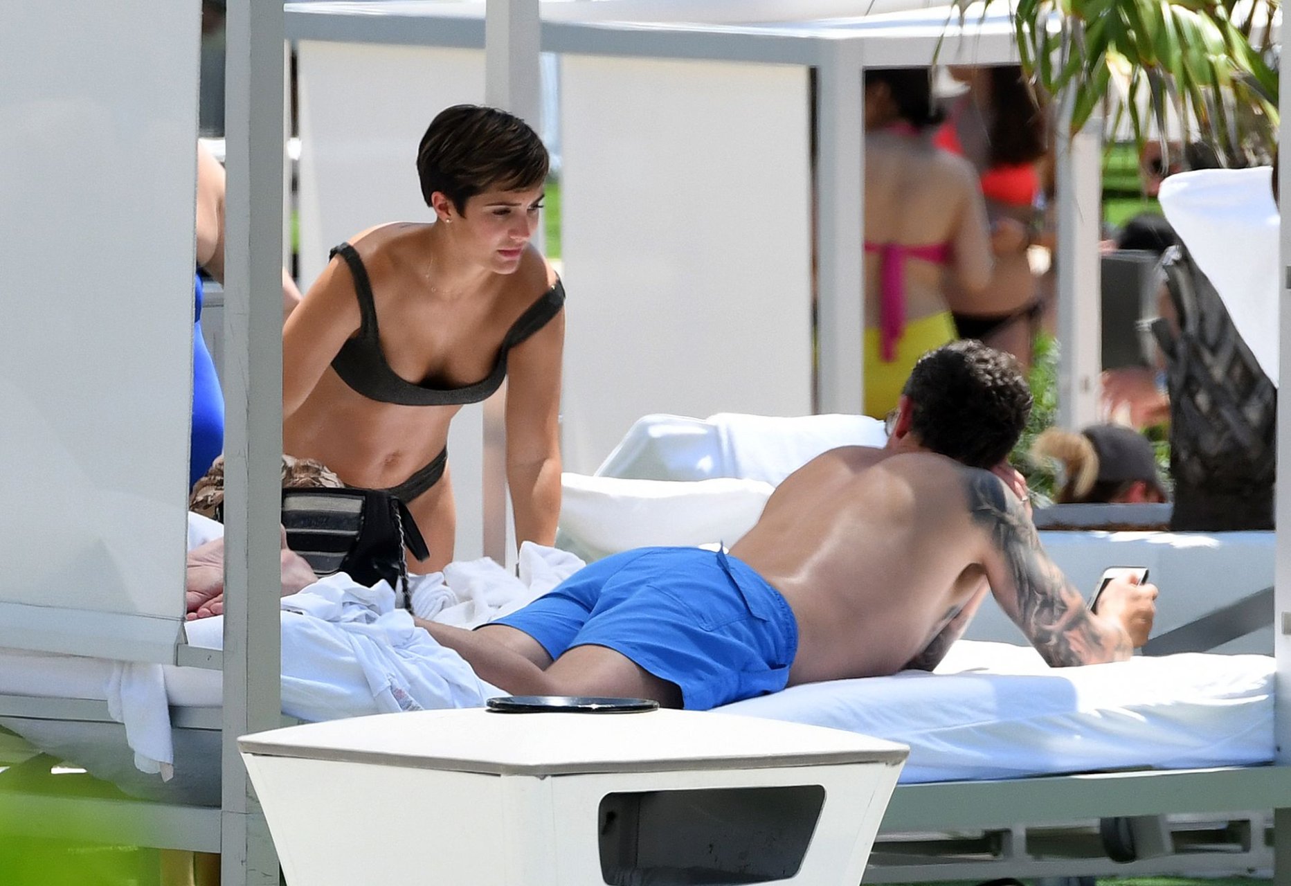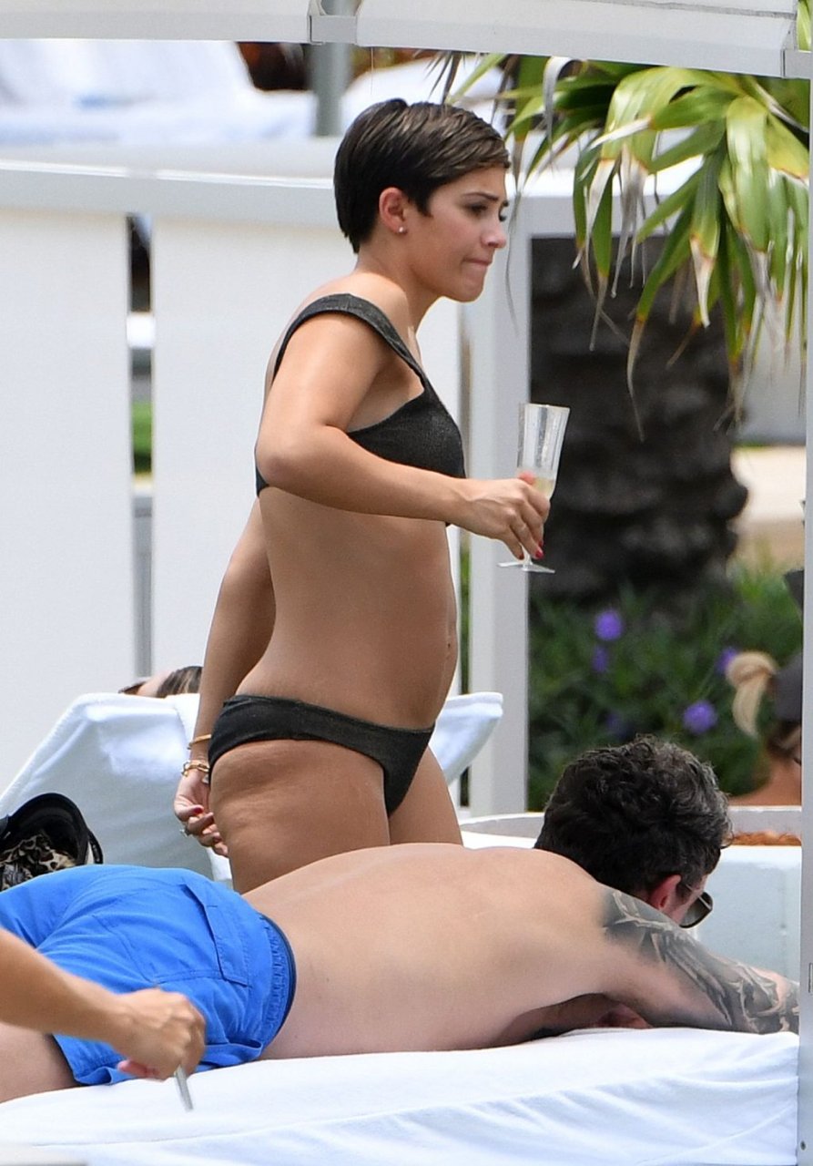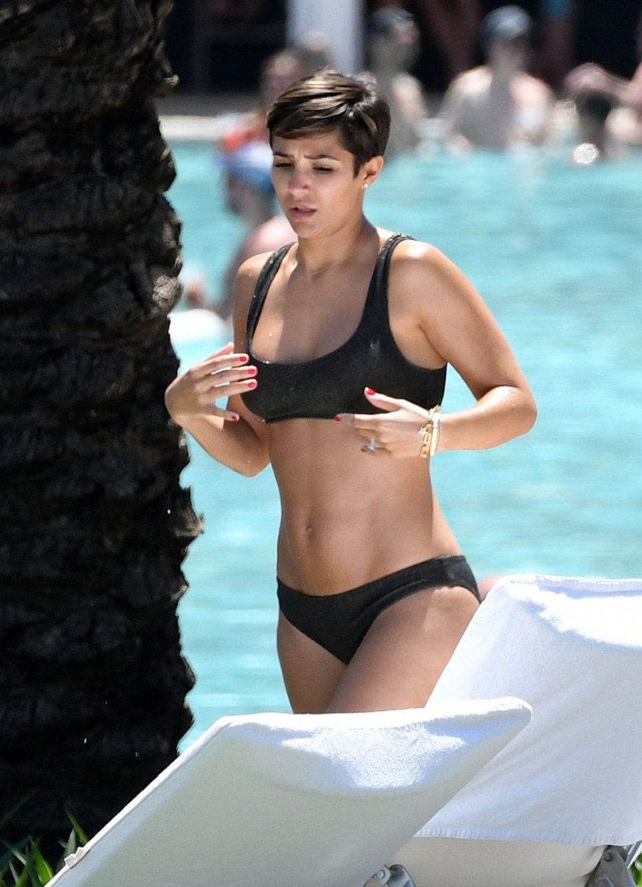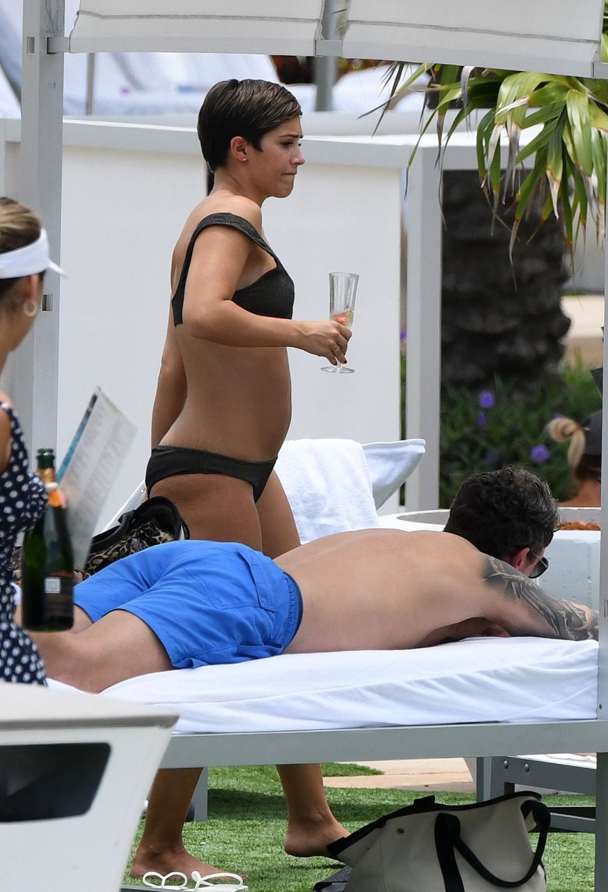Cantante y presentadora de televisión Frankie Bridge, junto con su esposo futbolista Wayne Bridge, celebra su 30 cumpleaños en bikini junto a la piscina en Miami, 17/05/2019.