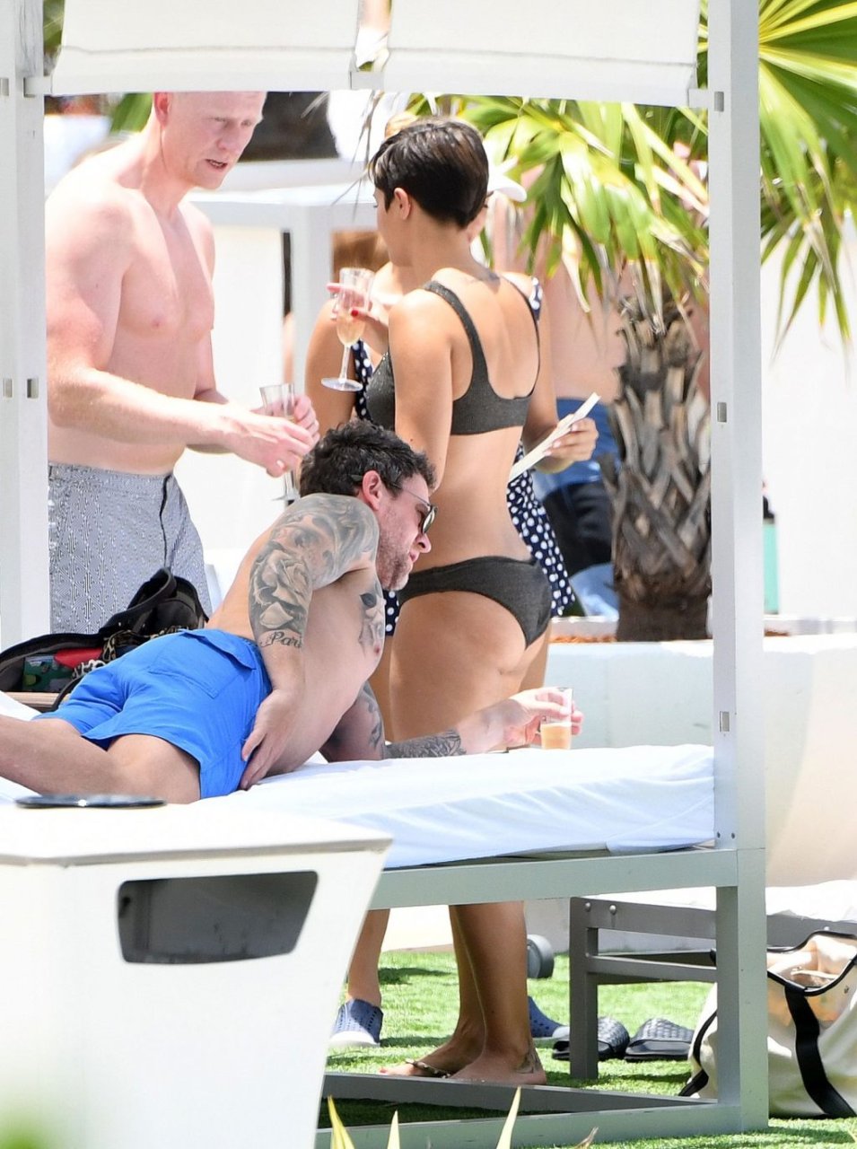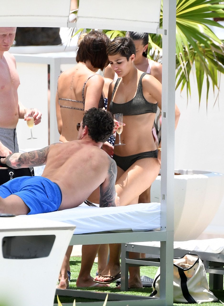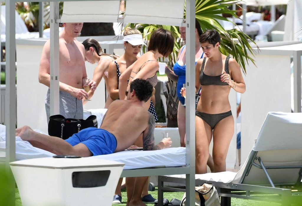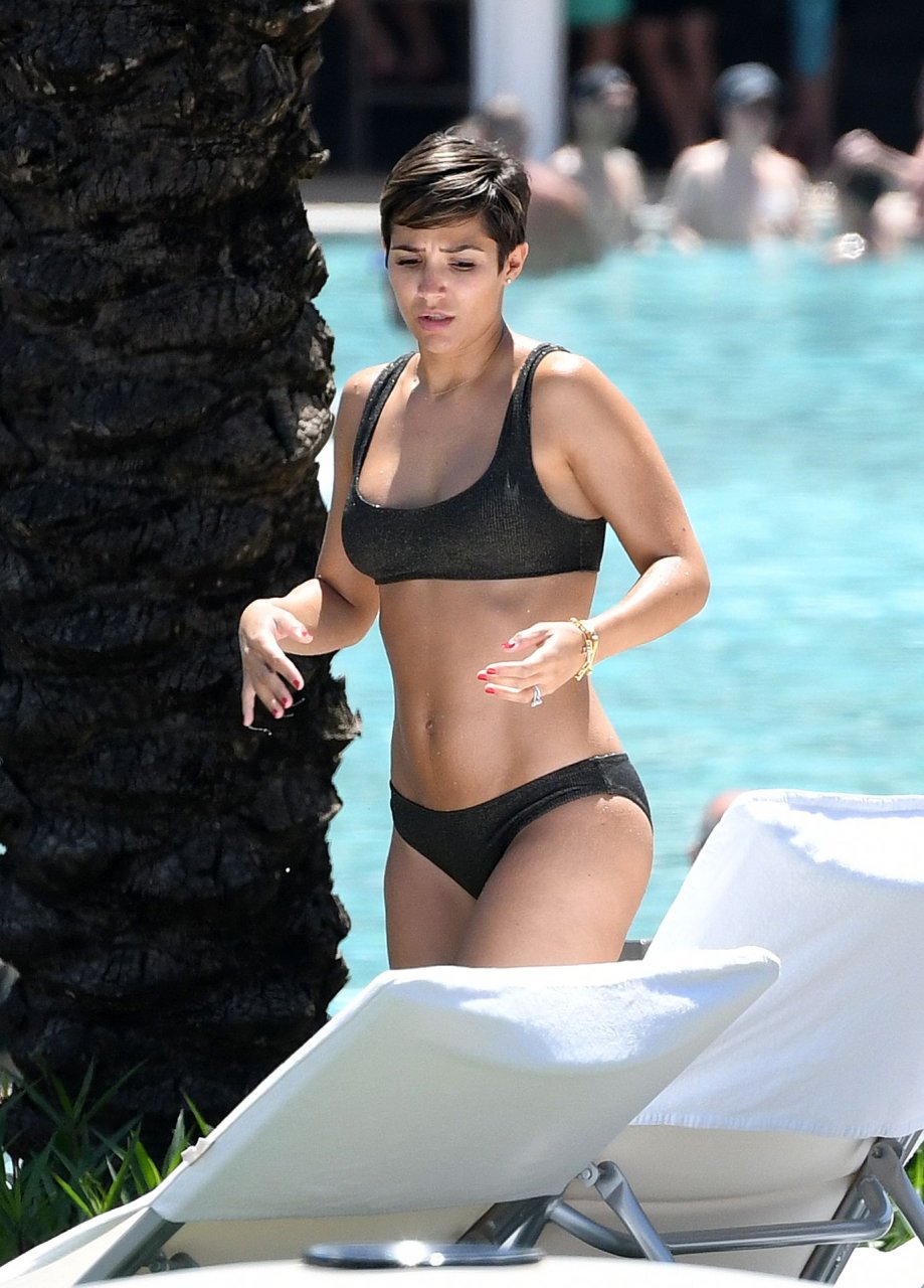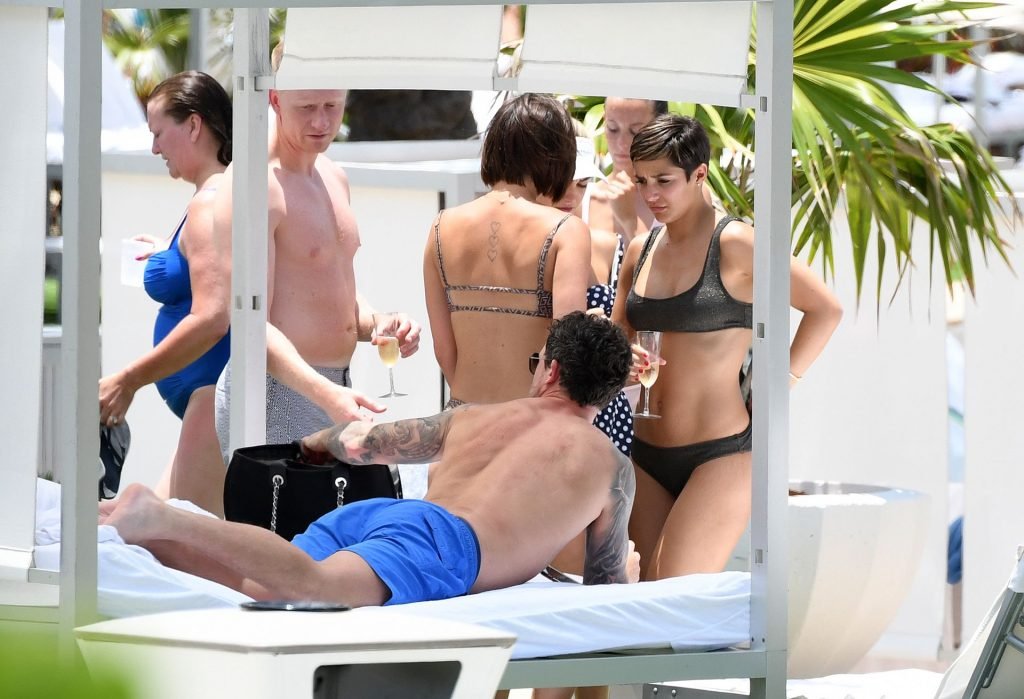 Cantante y presentadora de televisión Frankie Bridge, junto con su esposo futbolista Wayne Bridge, celebra su 30 cumpleaños en bikini junto a la piscina en Miami, 17/05/2019.