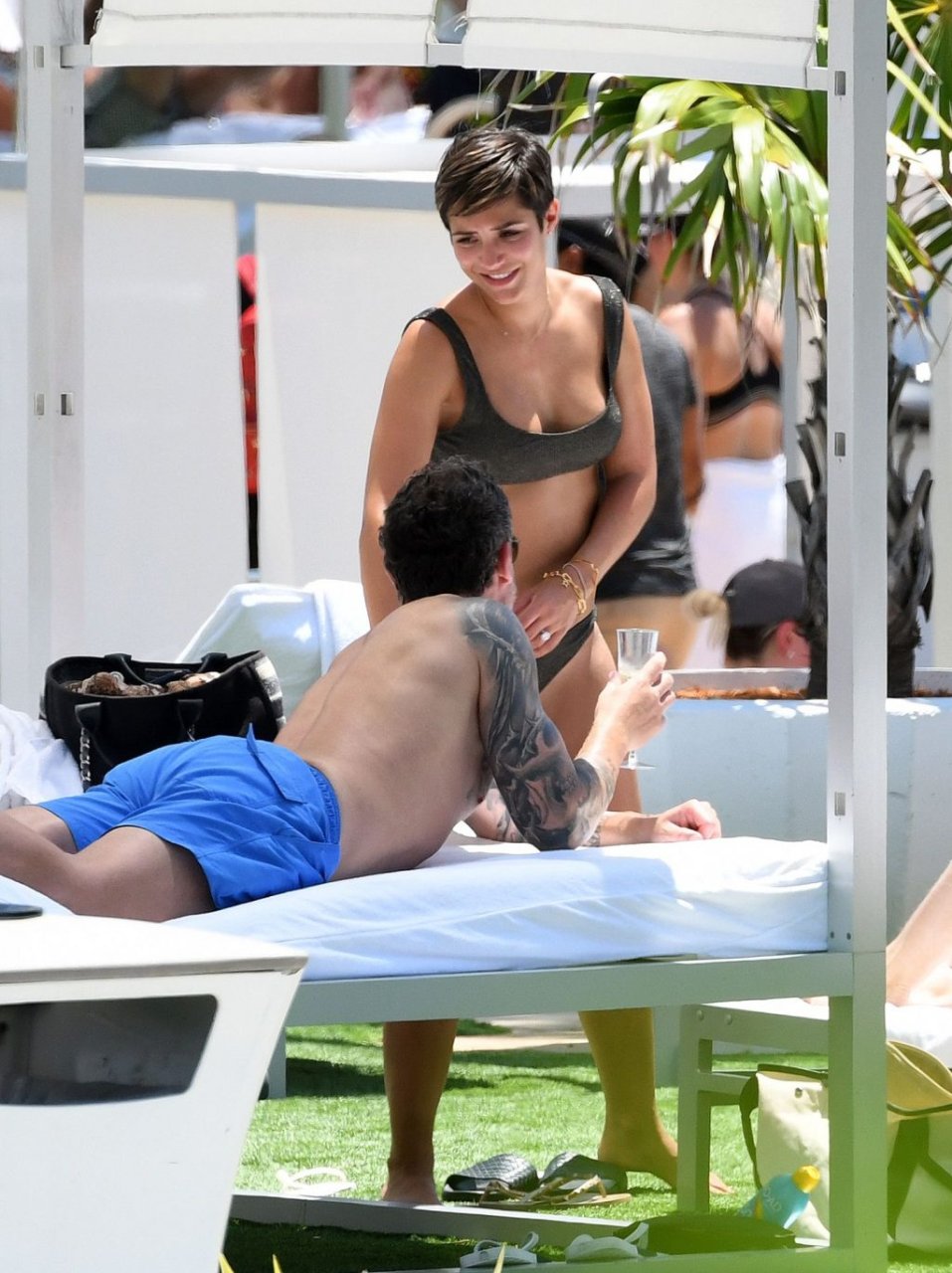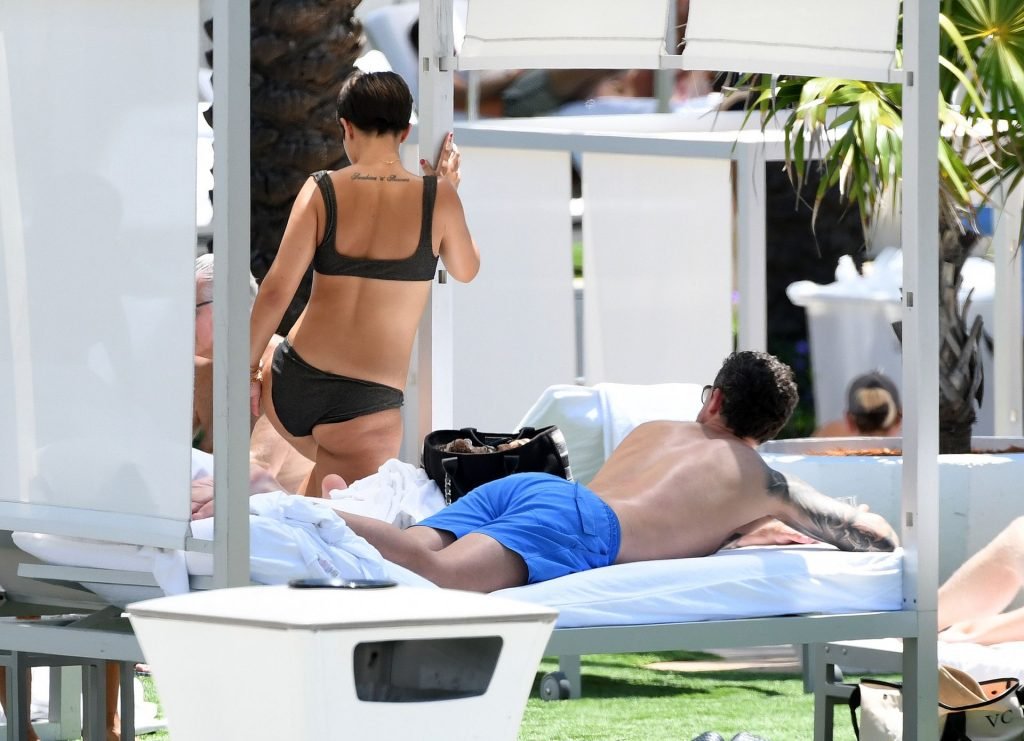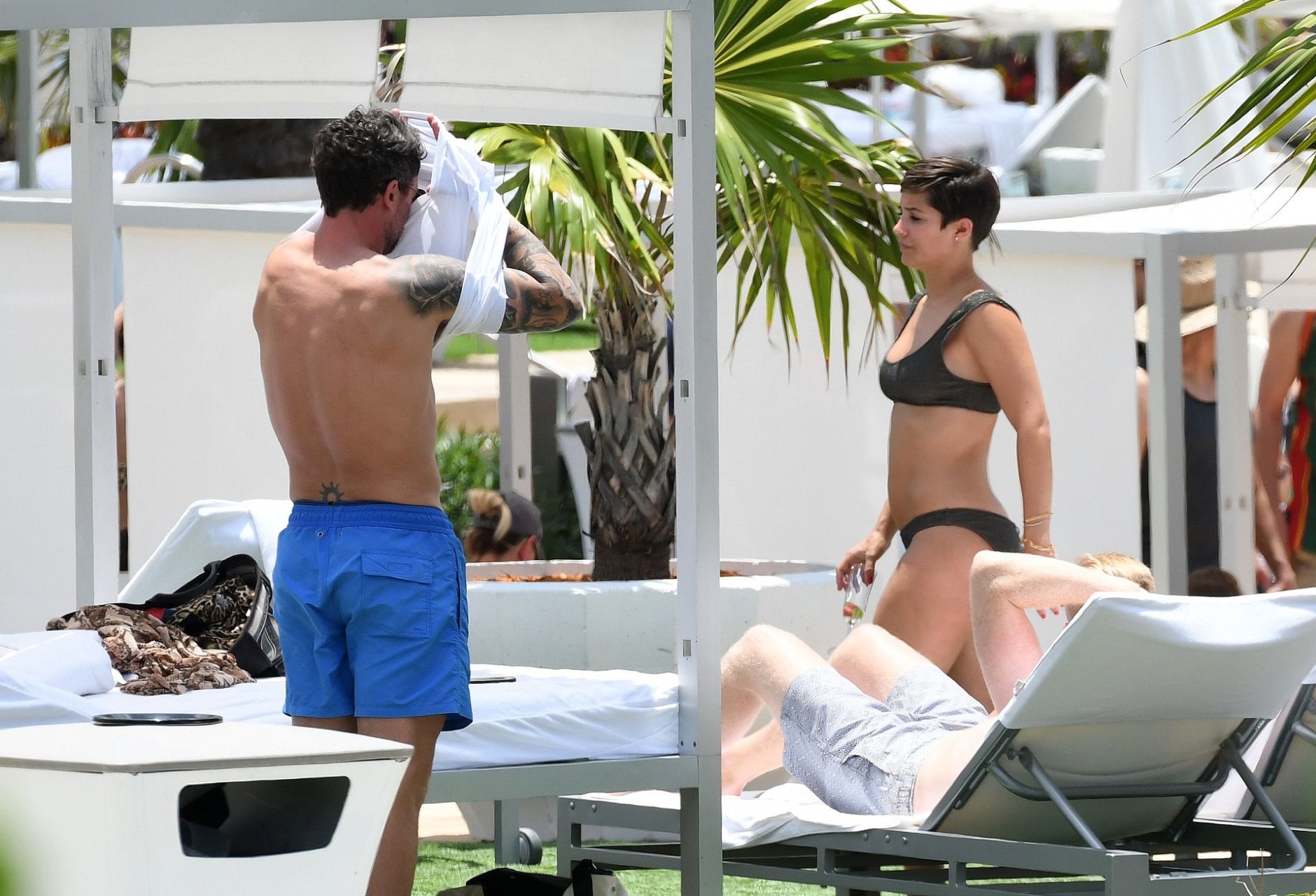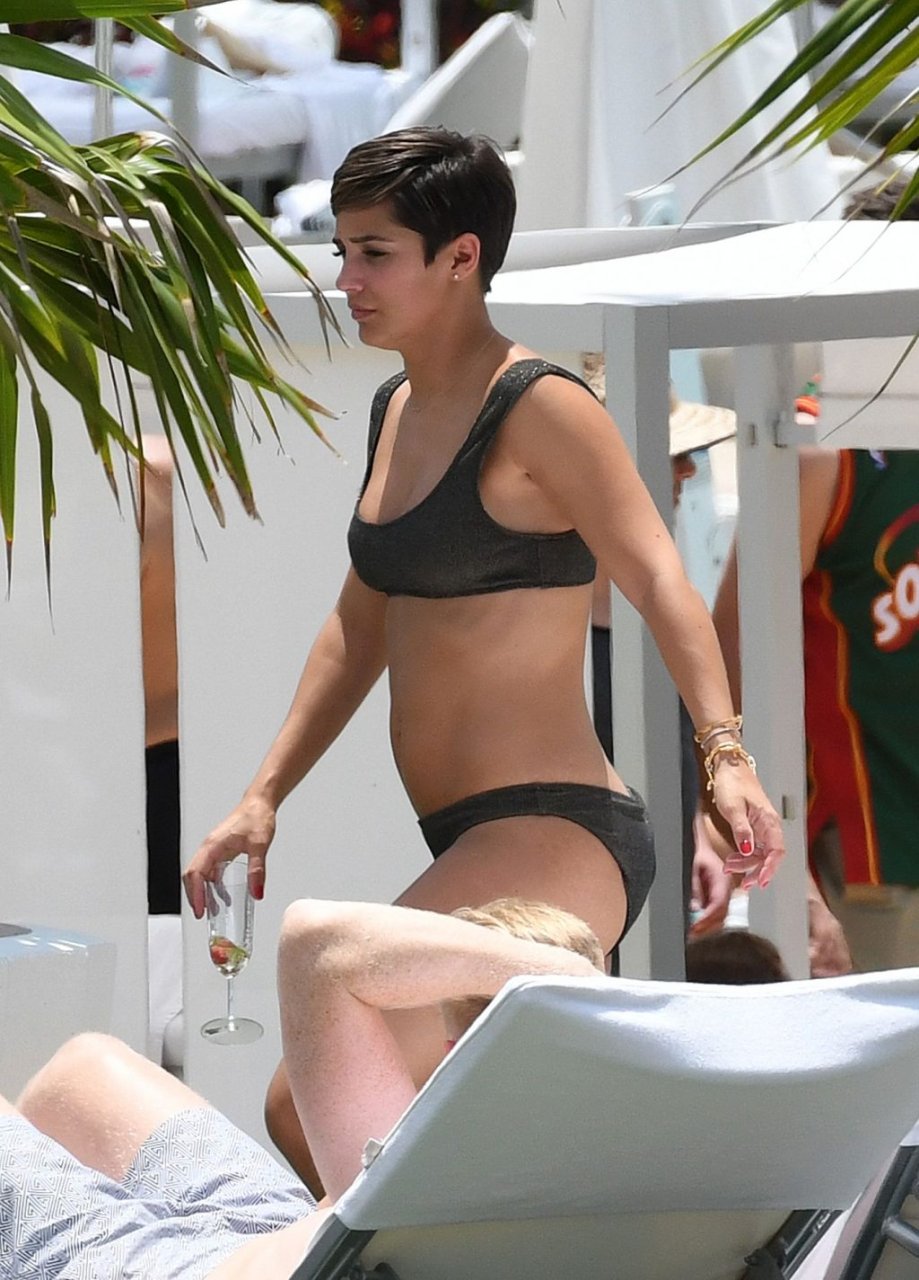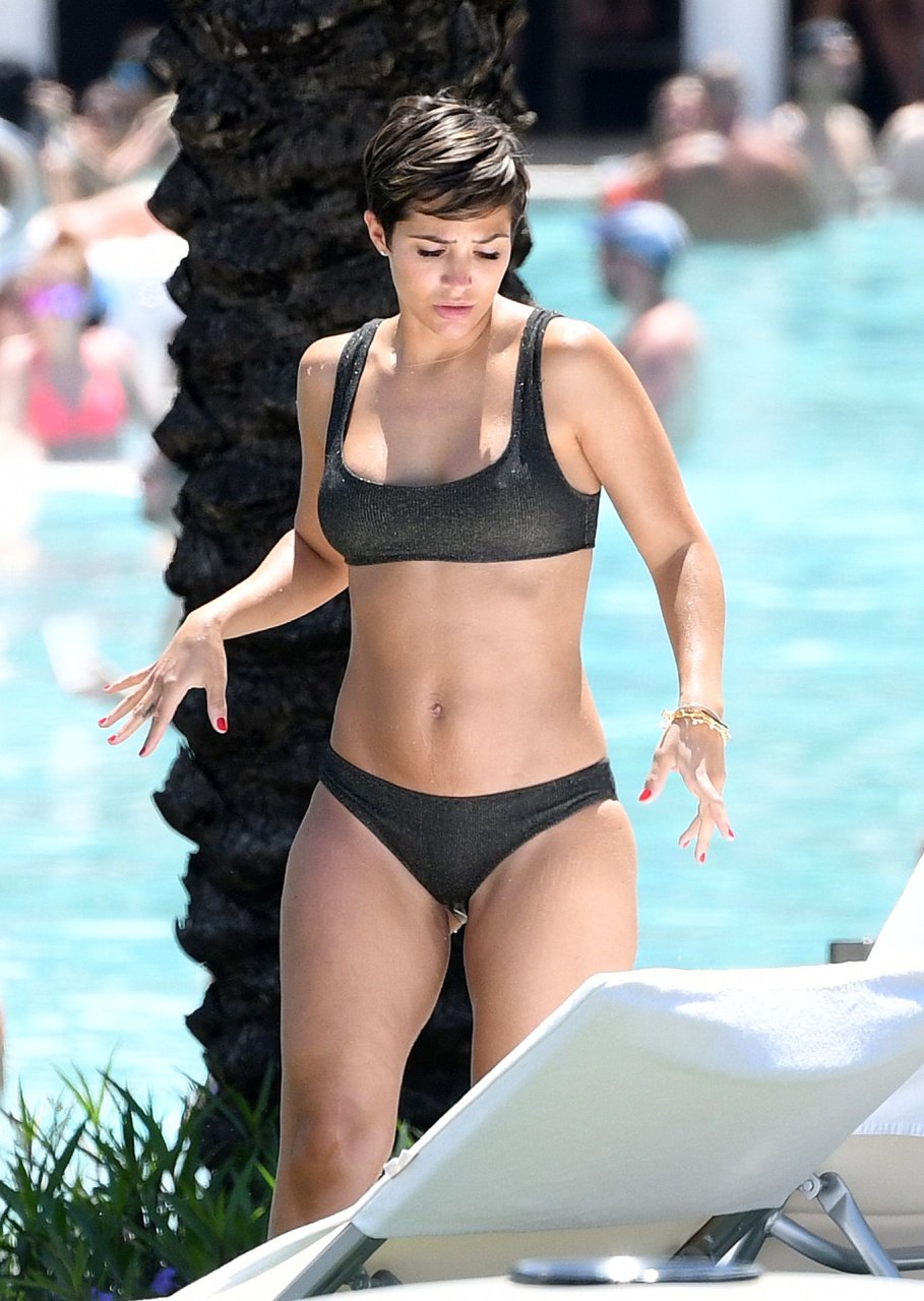 Cantante y presentadora de televisión Frankie Bridge, junto con su esposo futbolista Wayne Bridge, celebra su 30 cumpleaños en bikini junto a la piscina en Miami, 17/05/2019.