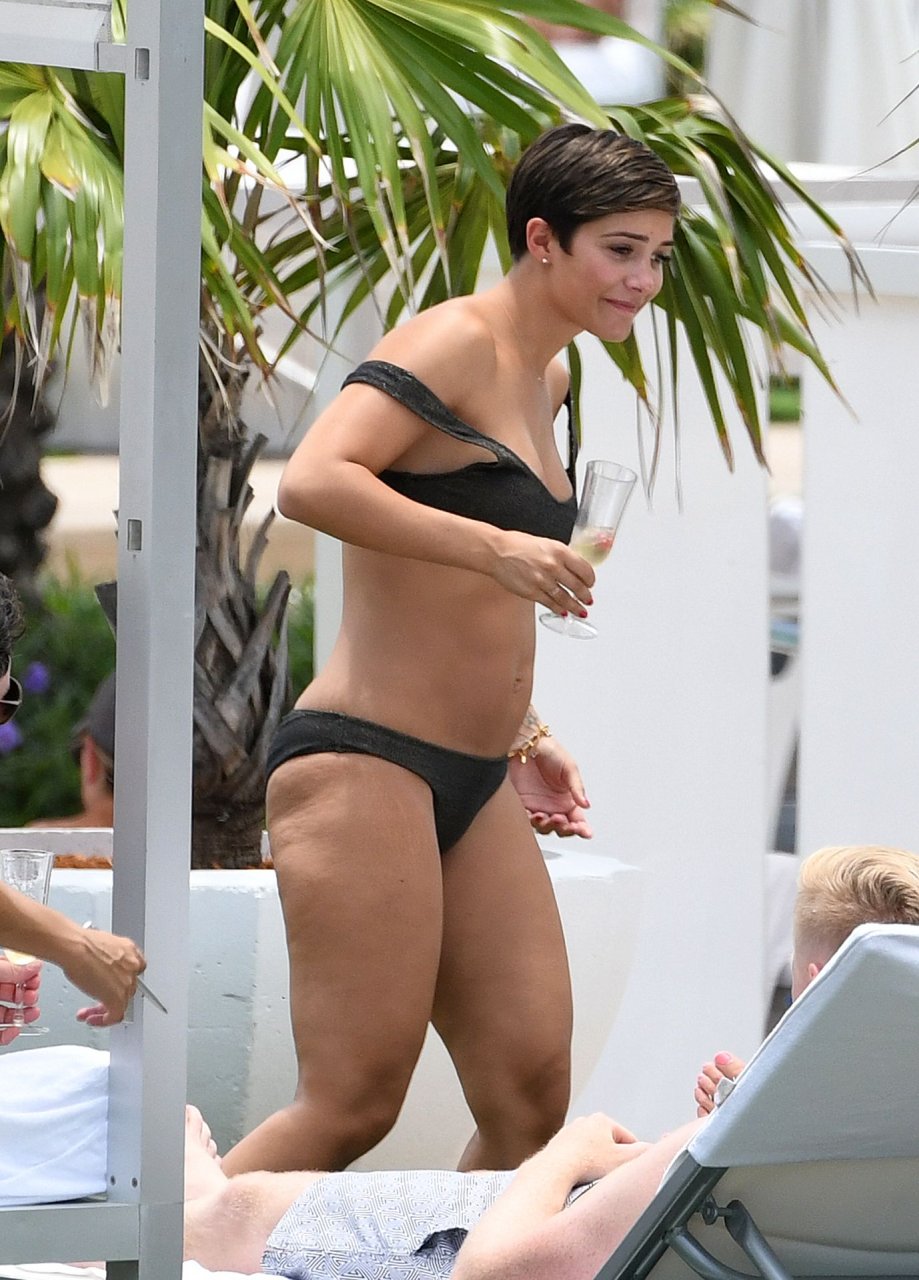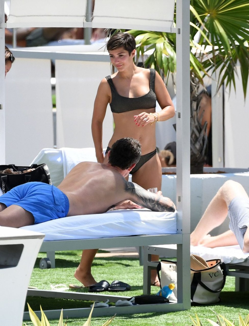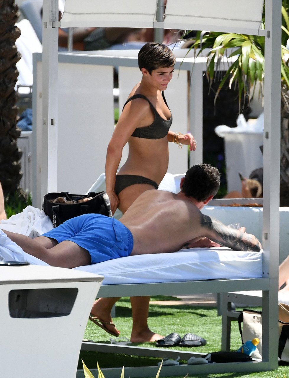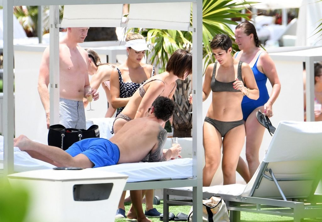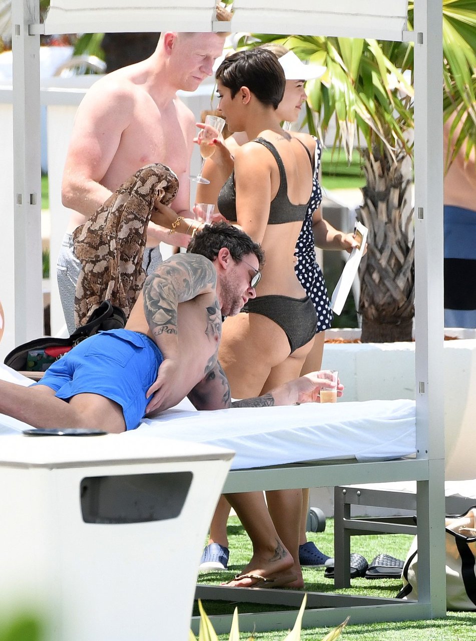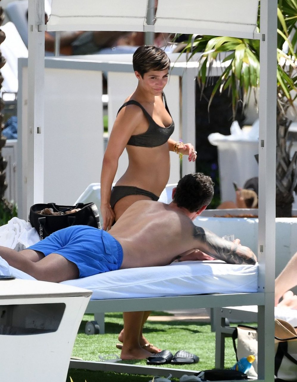 Cantante y presentadora de televisión Frankie Bridge, junto con su esposo futbolista Wayne Bridge, celebra su 30 cumpleaños en bikini junto a la piscina en Miami, 17/05/2019.
