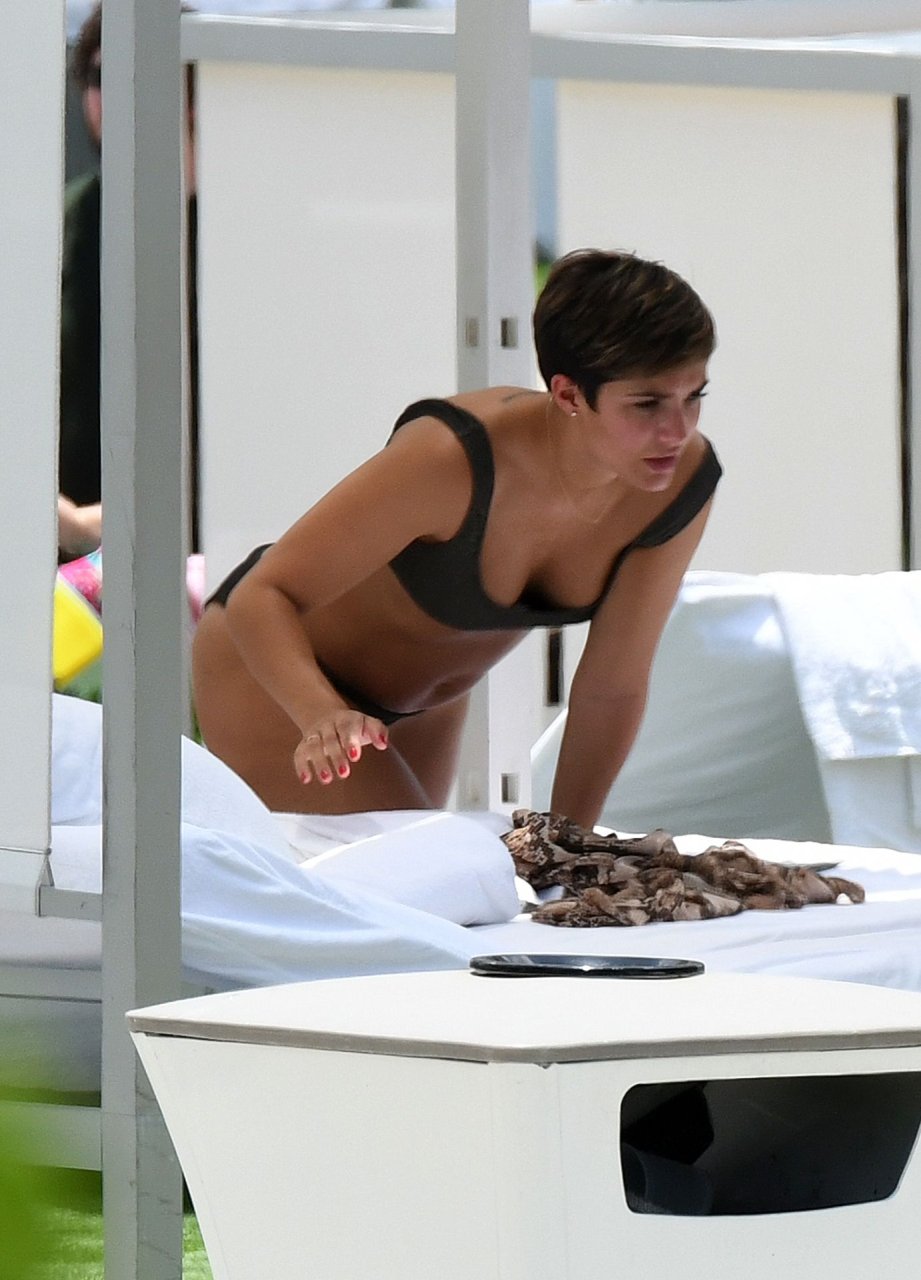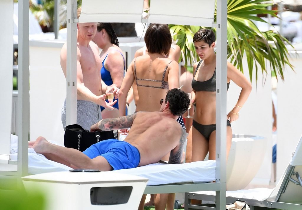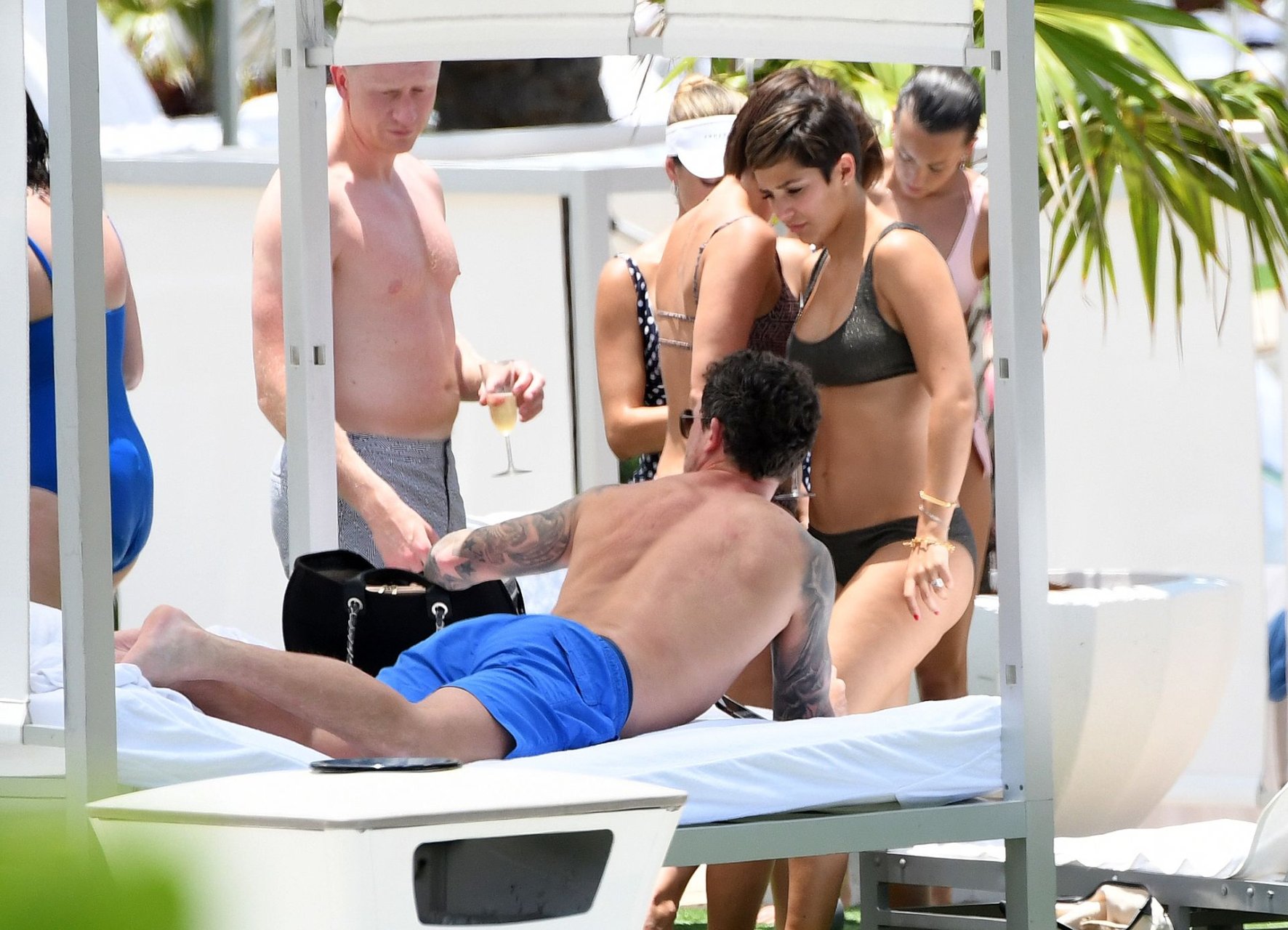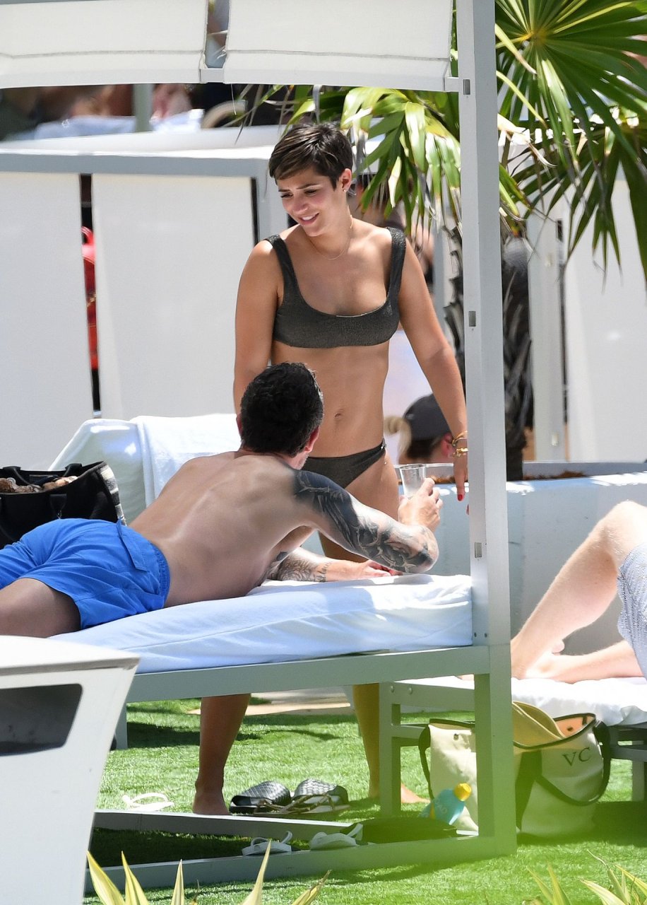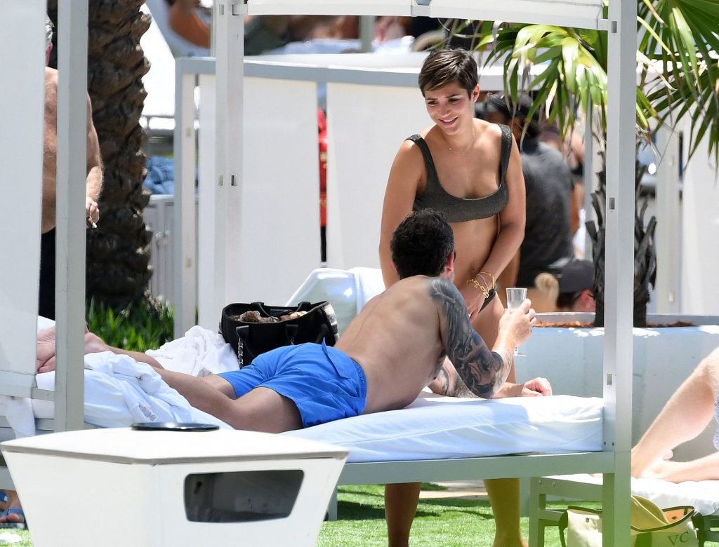 Cantante y presentadora de televisión Frankie Bridge, junto con su esposo futbolista Wayne Bridge, celebra su 30 cumpleaños en bikini junto a la piscina en Miami, 17/05/2019.