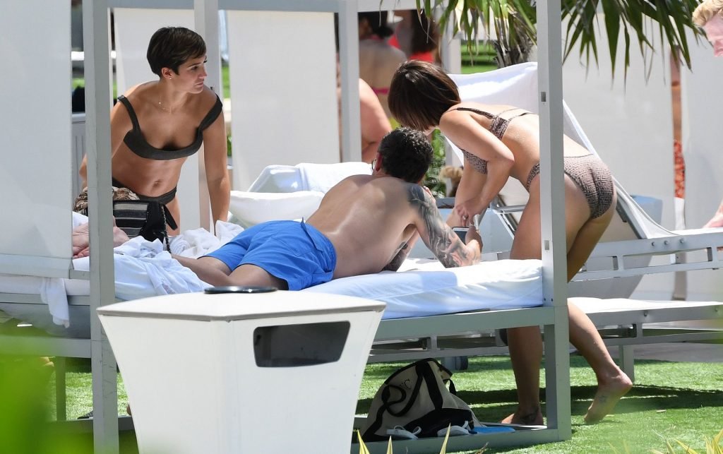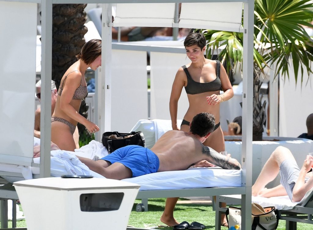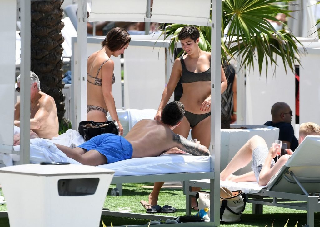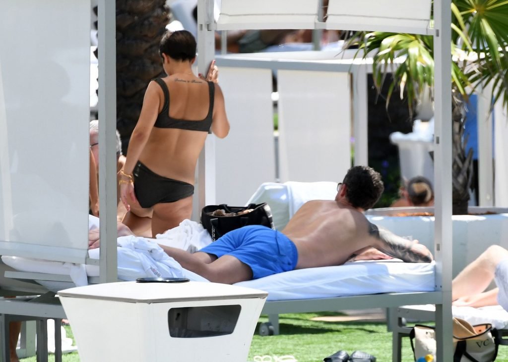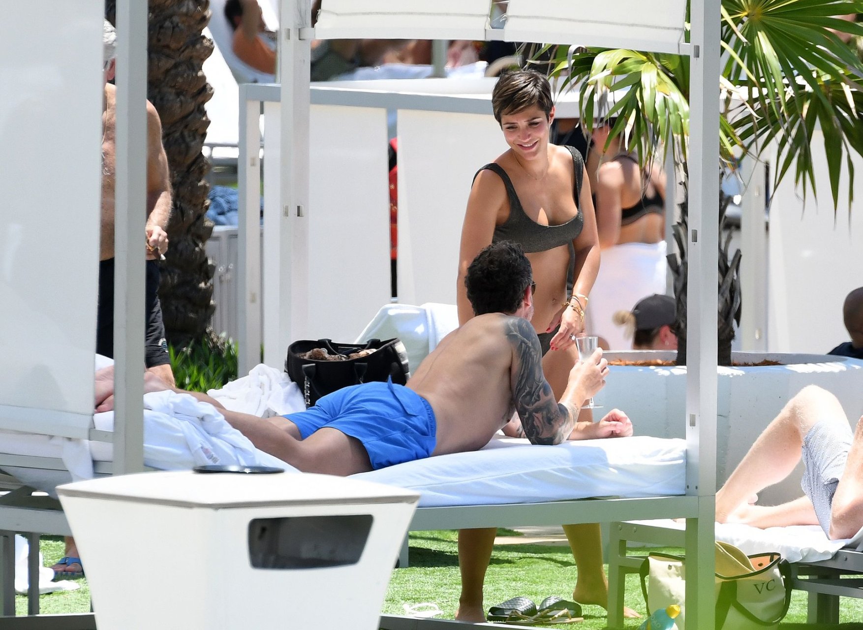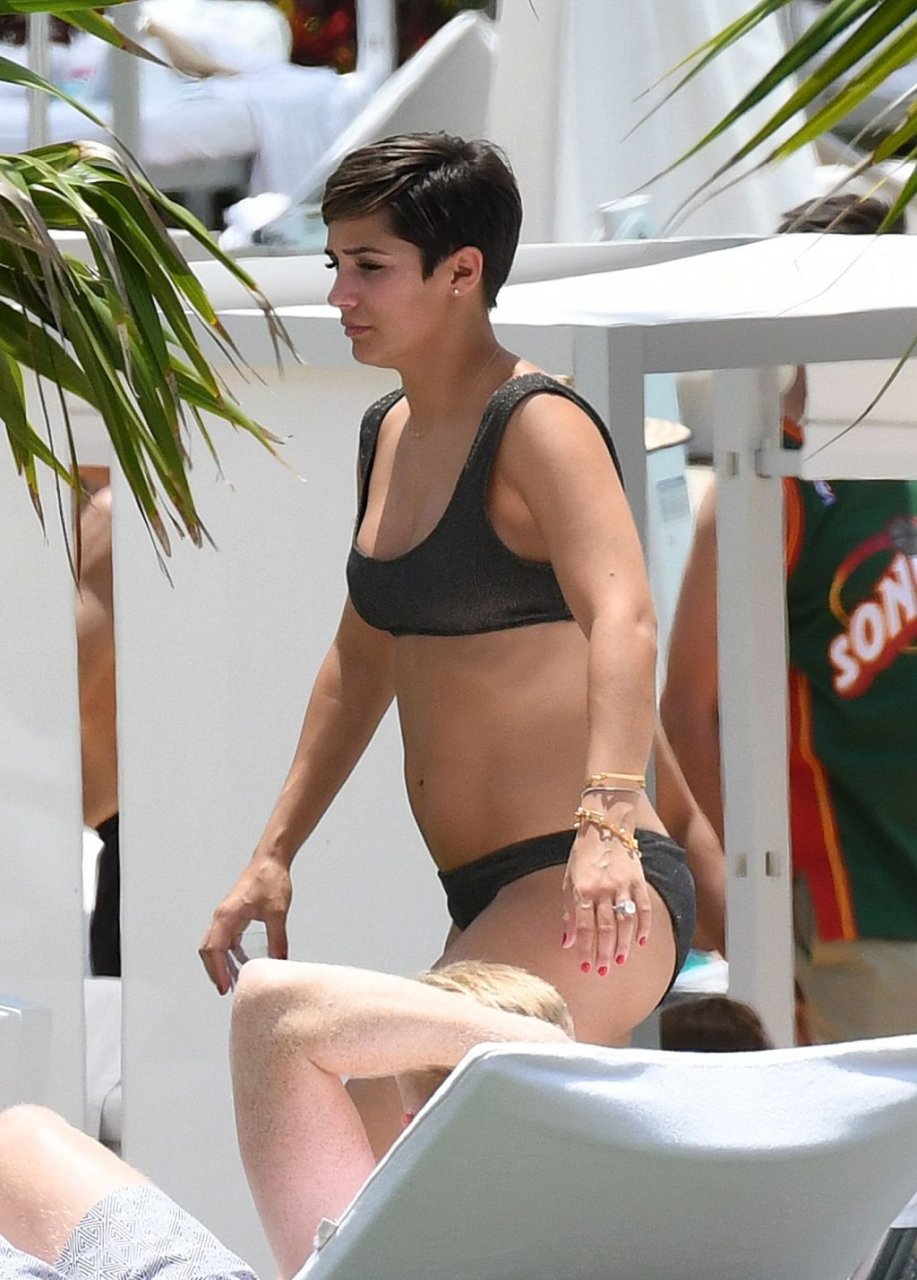 Cantante y presentadora de televisión Frankie Bridge, junto con su esposo futbolista Wayne Bridge, celebra su 30 cumpleaños en bikini junto a la piscina en Miami, 17/05/2019.