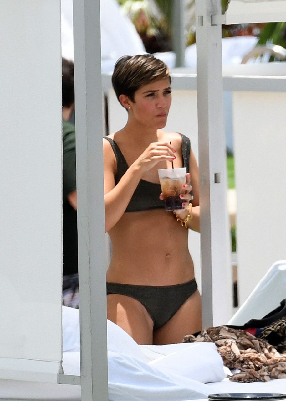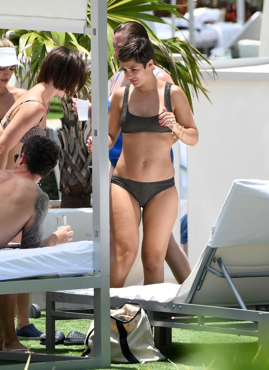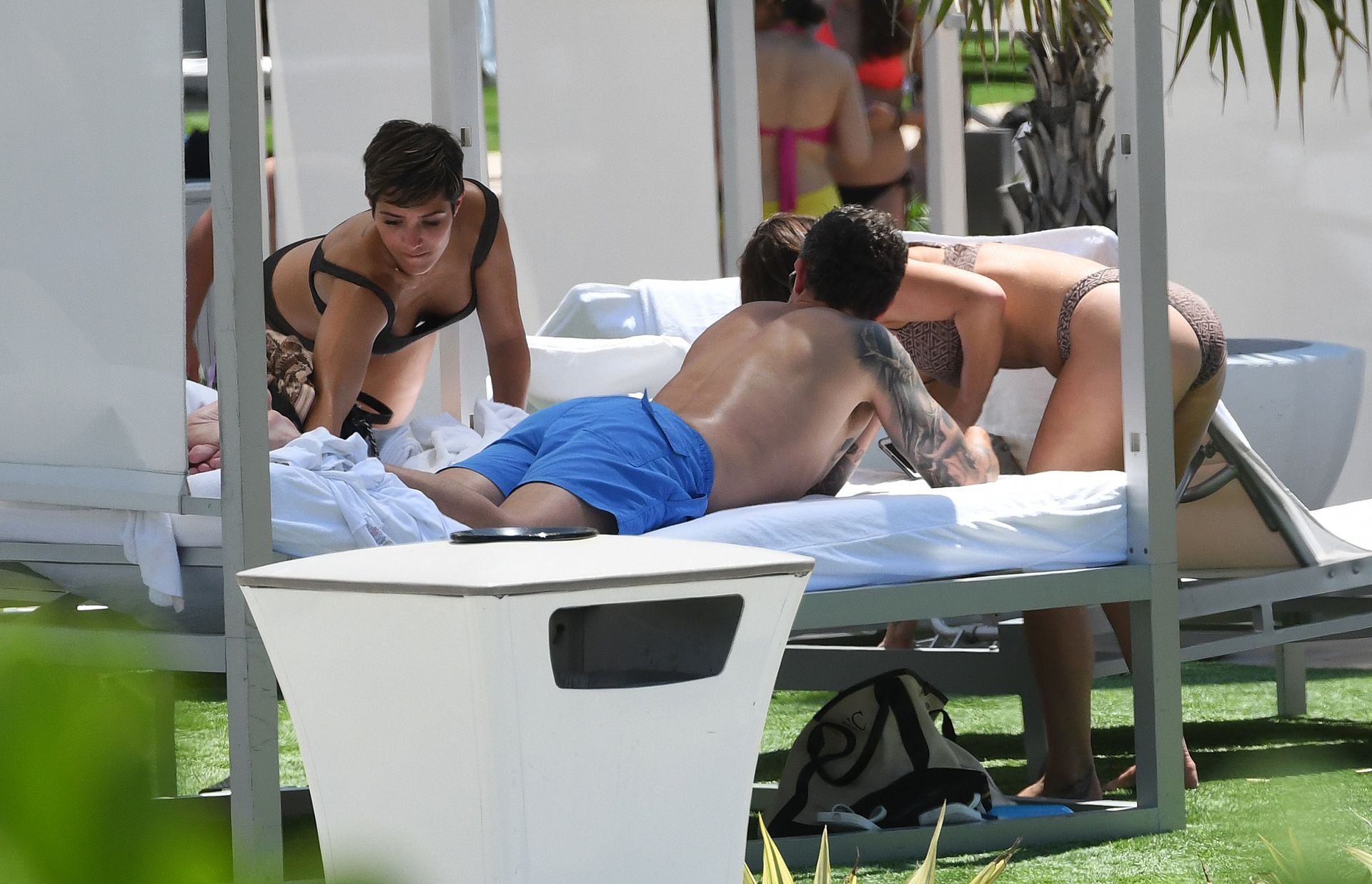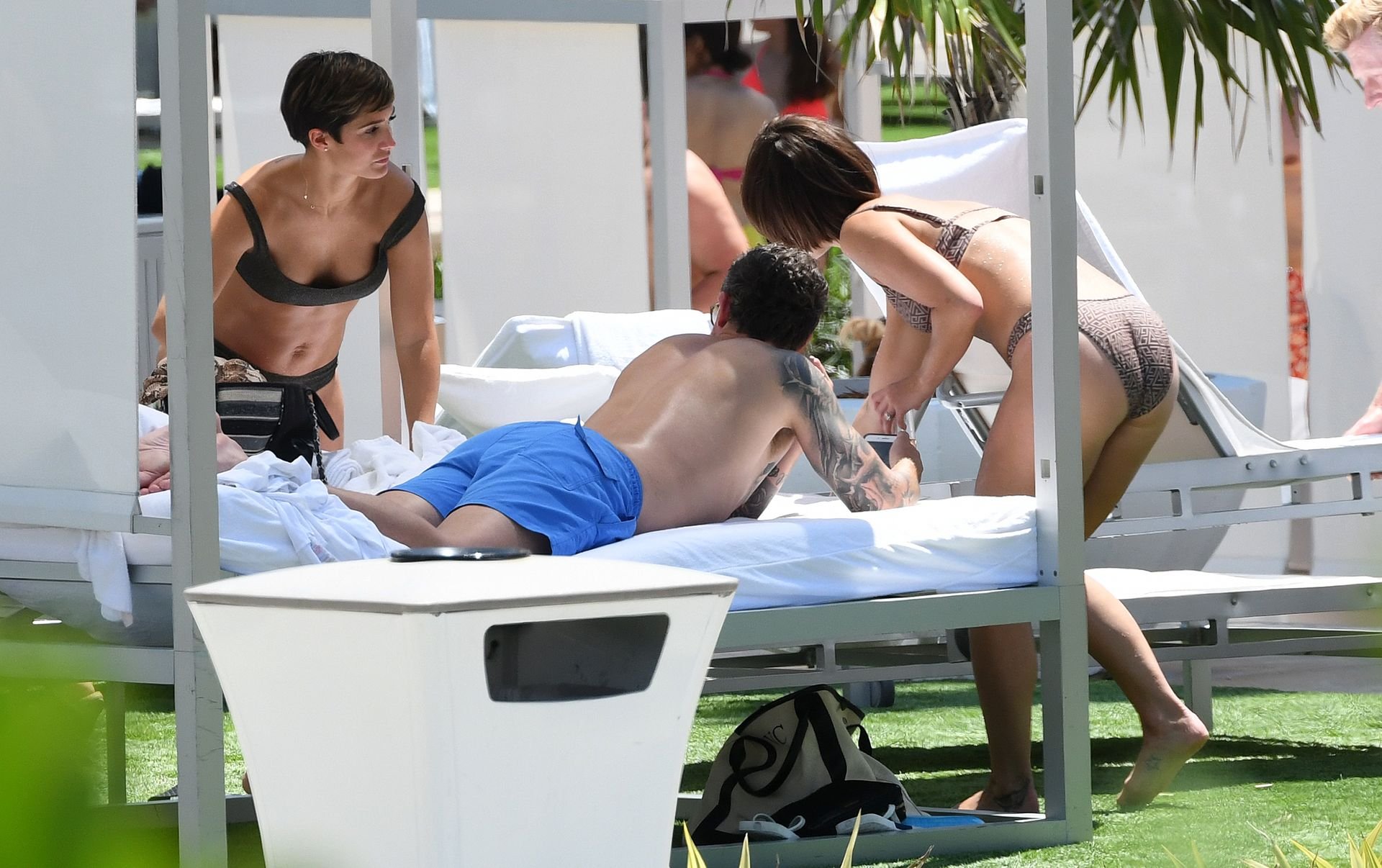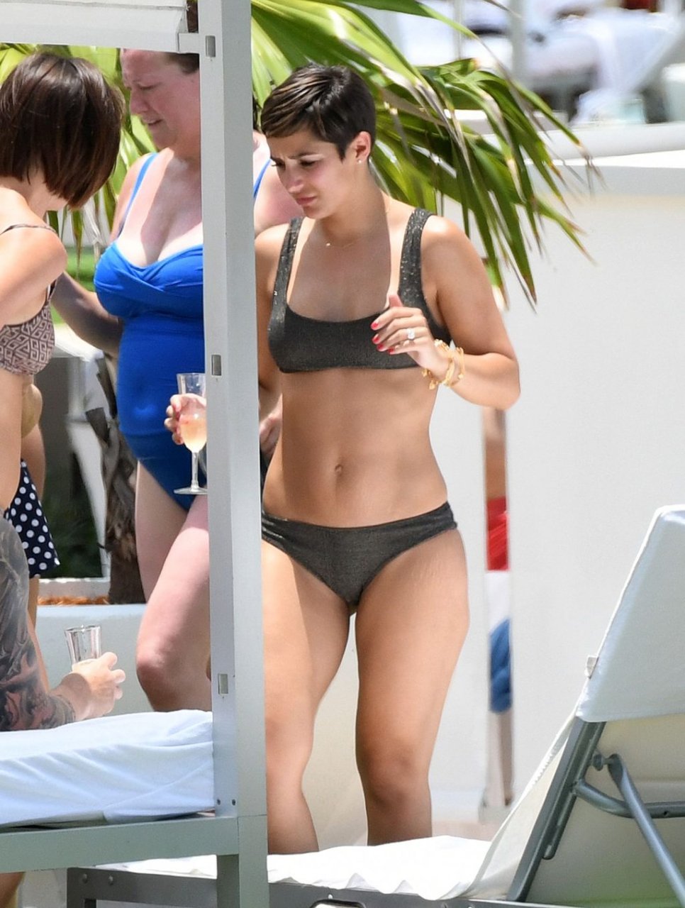 Cantante y presentadora de televisión Frankie Bridge, junto con su esposo futbolista Wayne Bridge, celebra su 30 cumpleaños en bikini junto a la piscina en Miami, 17/05/2019.