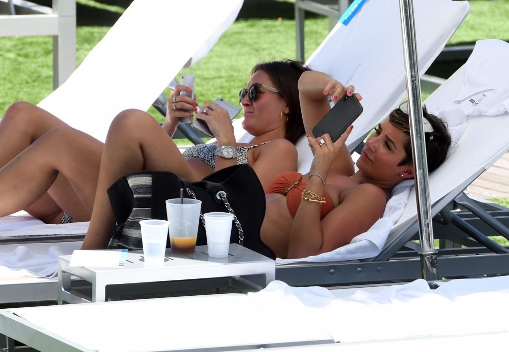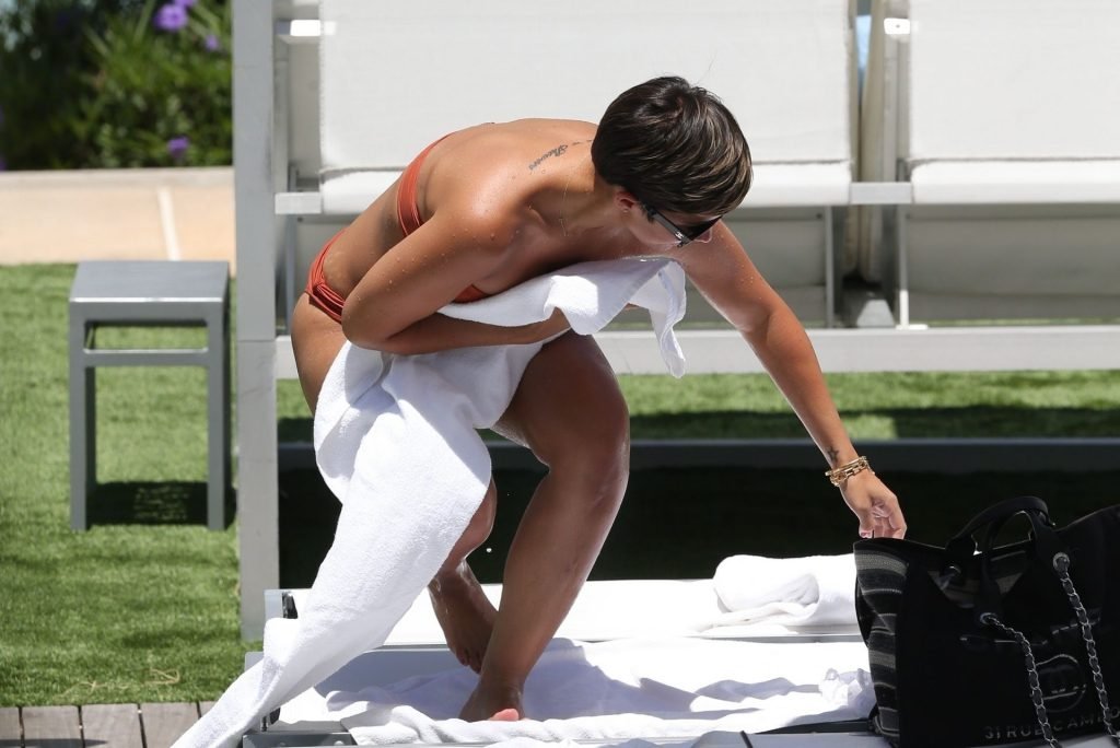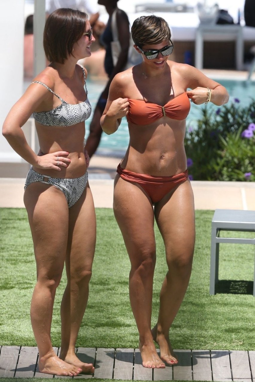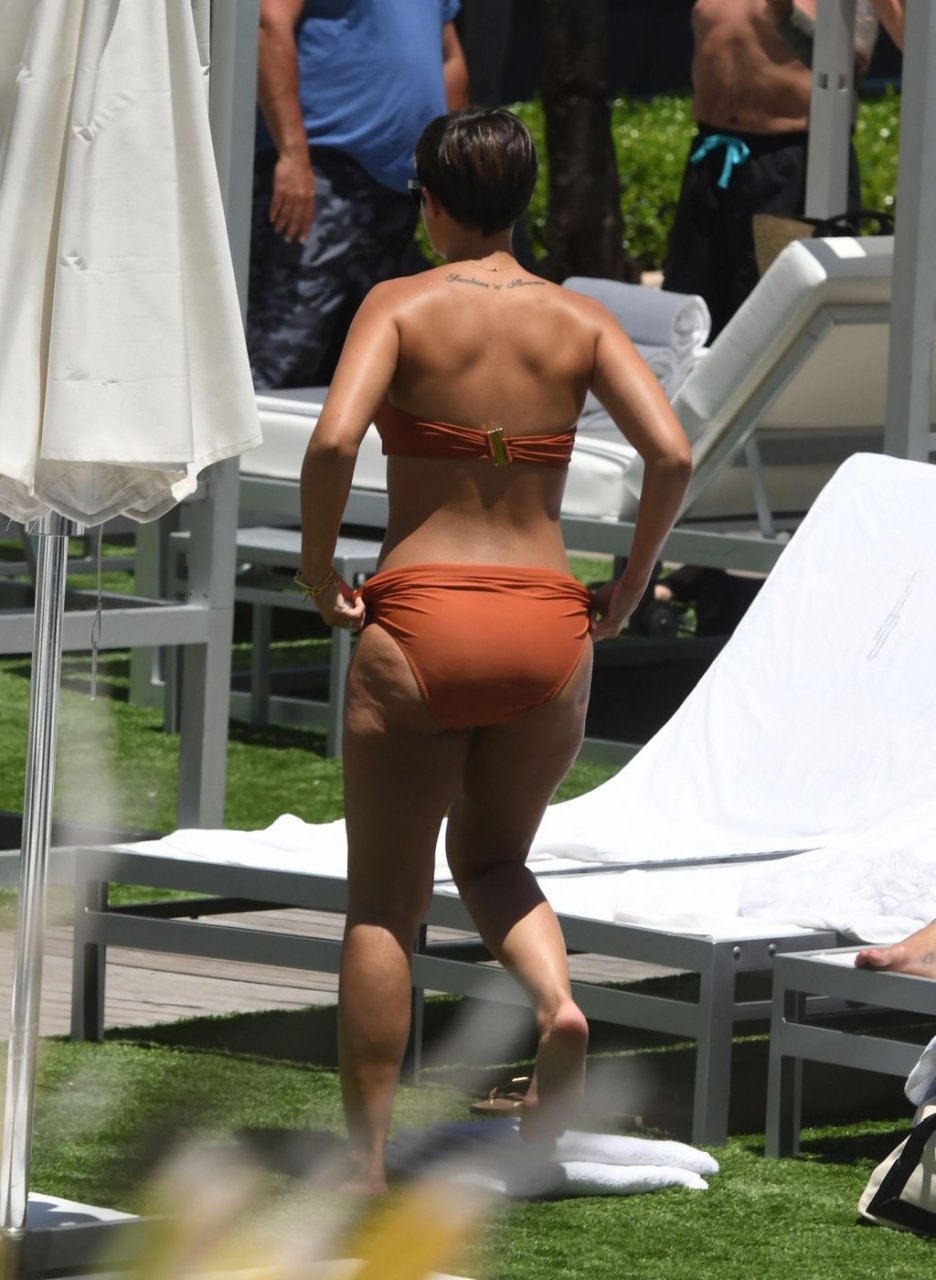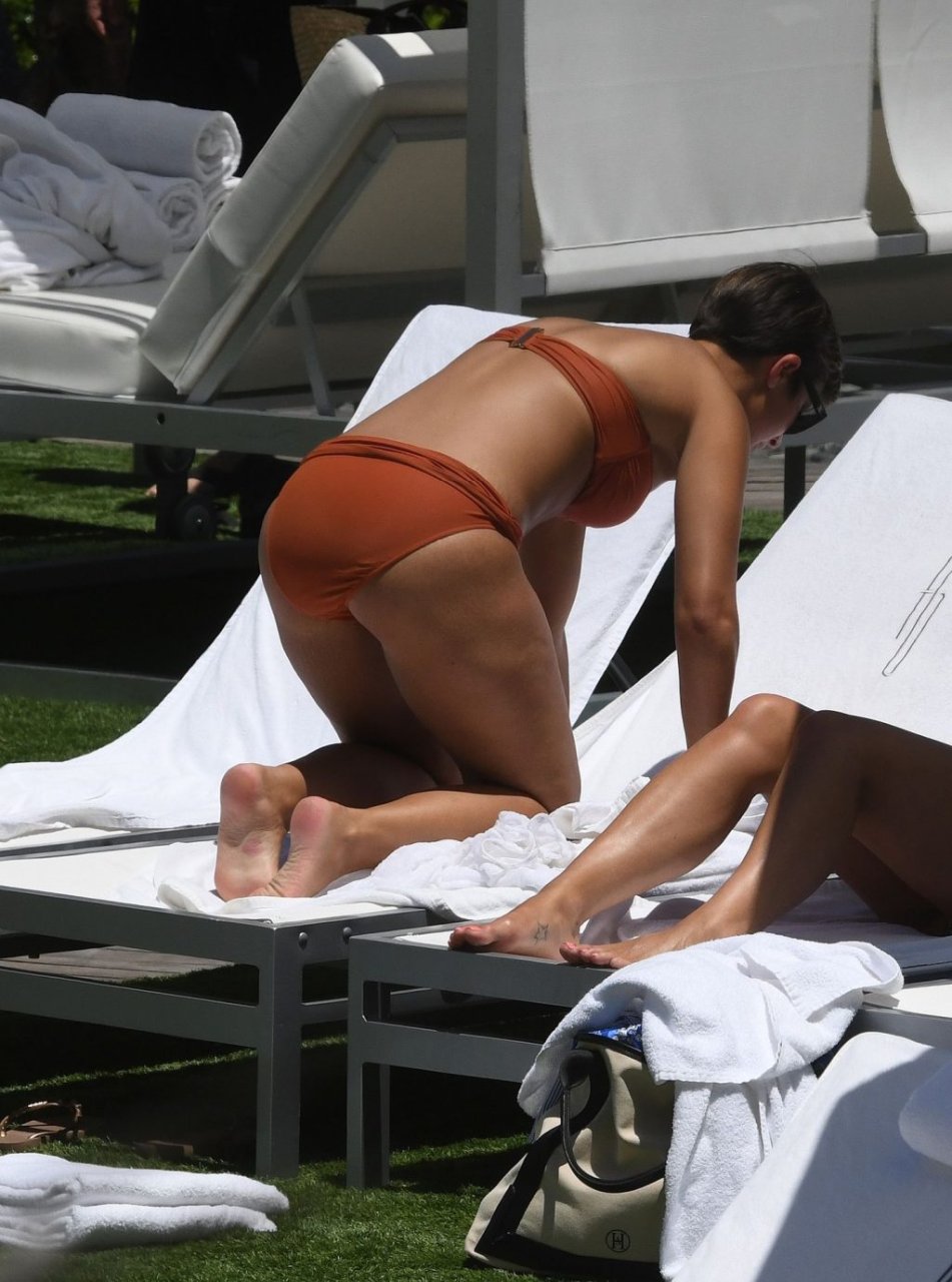 Frankie Bridge se ve pasando el rato en la piscina en Miami, 21/05/2019. Frankie luce genial con un bikini naranja mientras disfruta del sol.