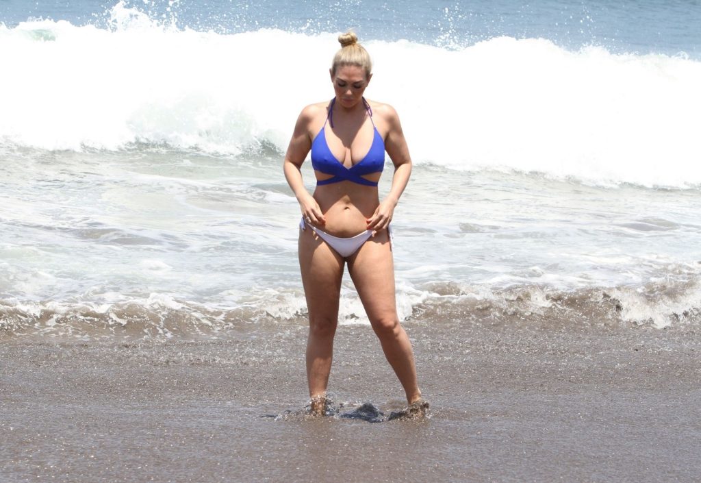 La estrella de The Only Way Is Essex presume de su busto mientras se da un chapuzón en el mar en sus vacaciones post Navidad.