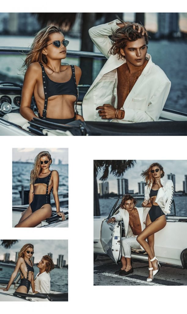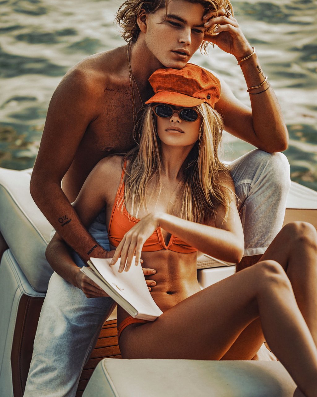 Modelos Frida Aasen y Jordan Barrett fotografiados por Kesler Tran para la campaña Fristelser de Fae Swim (Primavera/Verano 2018). Frida Aasen es una modelo top de 23 años de Kristiansand, Noruega.