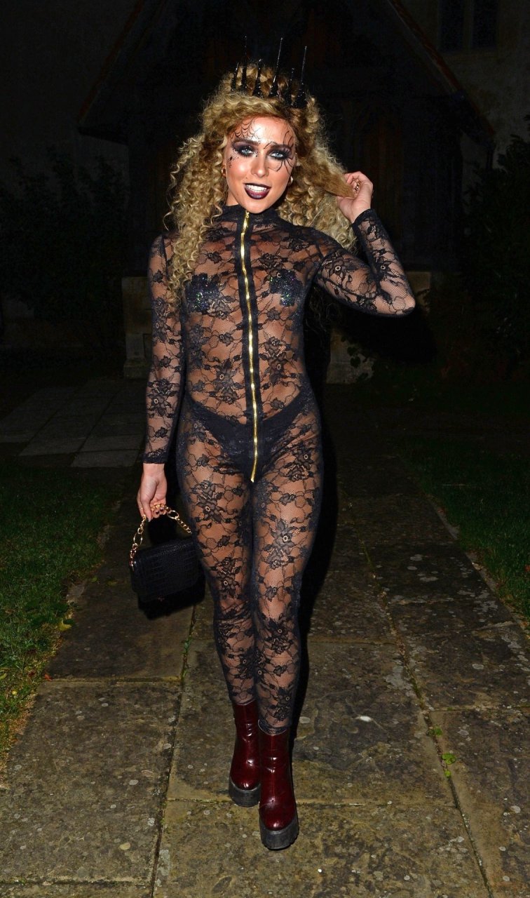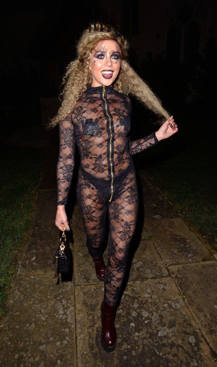 La estrella de “Love Island” Gabby Allen es un deleite para la vista mientras atraviesa un cementerio para llegar a Sheesh en Chigwell, 30/10/2019.