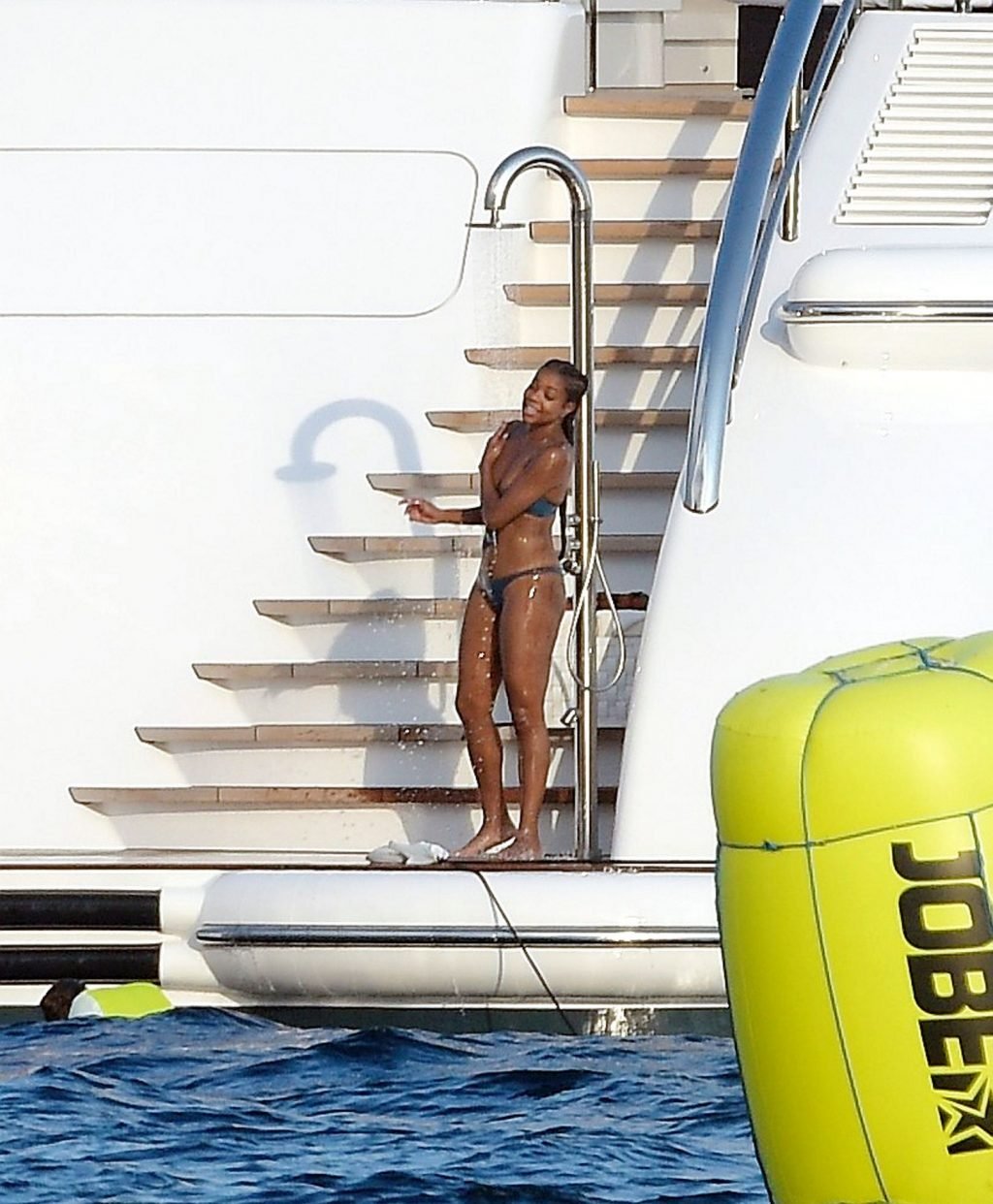 Gabrielle Union y Dwyane Wade fueron vistos disfrutando del sol en un yate de lujo mientras celebraban su quinto aniversario de bodas en Saint Tropez, 01/09/2019.