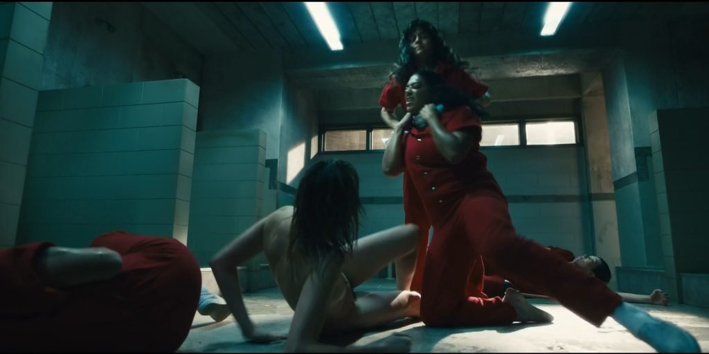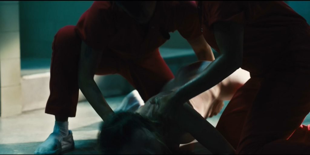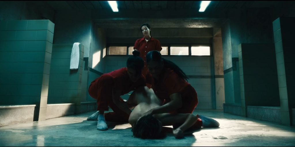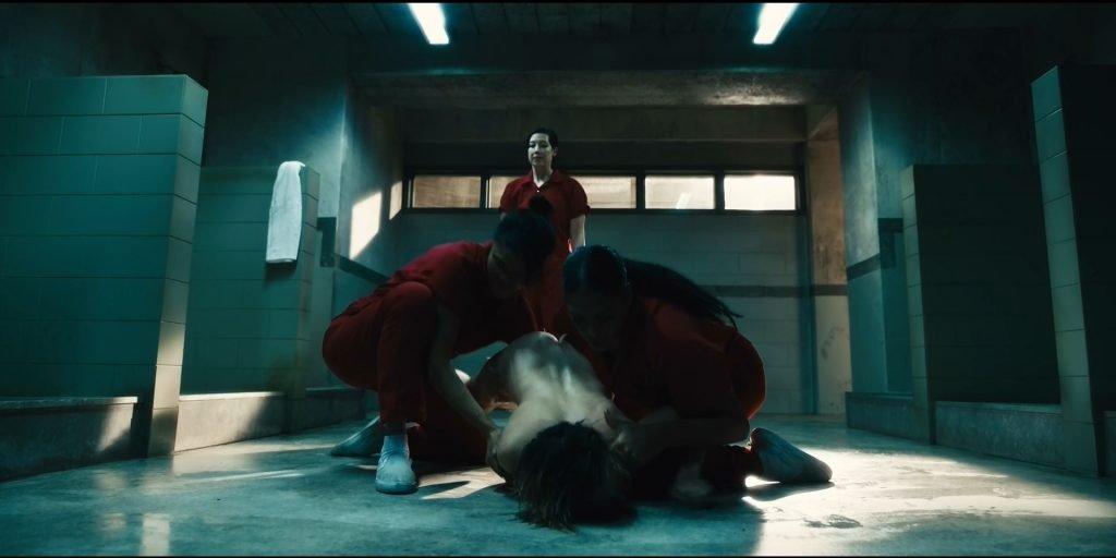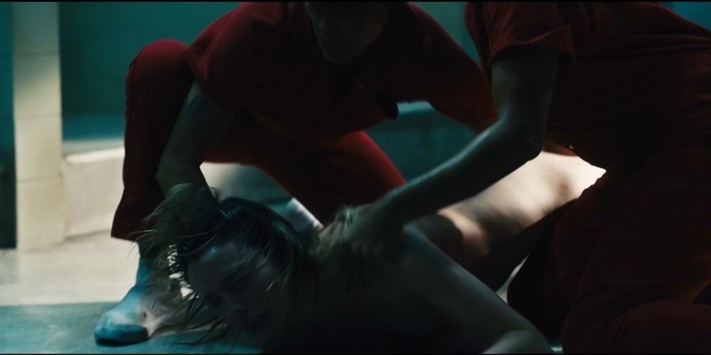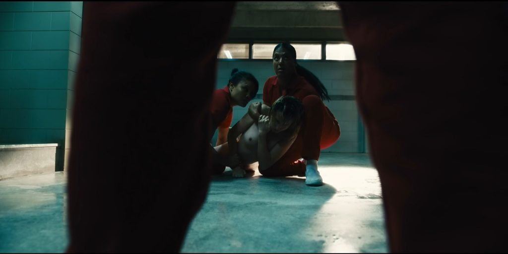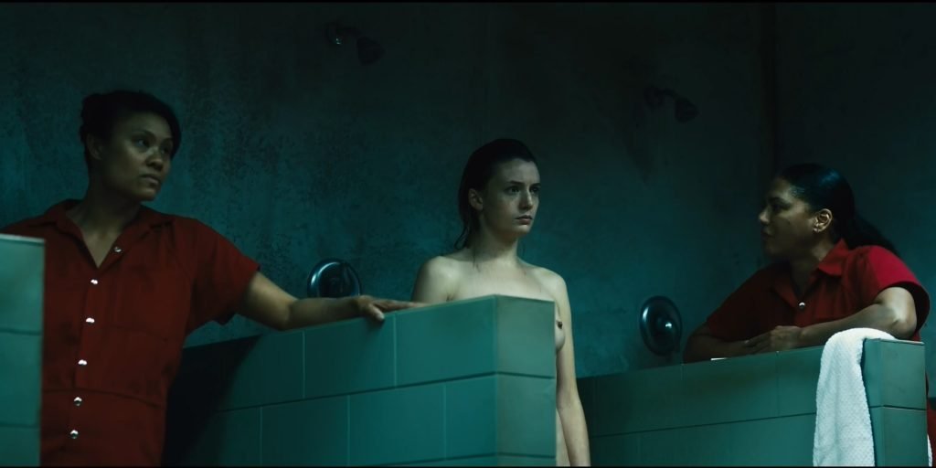 Hay una escena más de desnudo en “Jett” (2019) Temporada 1 Episodio 3 (s01e03), donde puedes ver a Gaite Jansen duchándose en el baño público de la prisión. Después de un rato, varios reclusos la tocan y empujan a Gaite al suelo. ¡Jansen está completamente desnuda, mostrando sus pechos, trasero y vello púbico!
