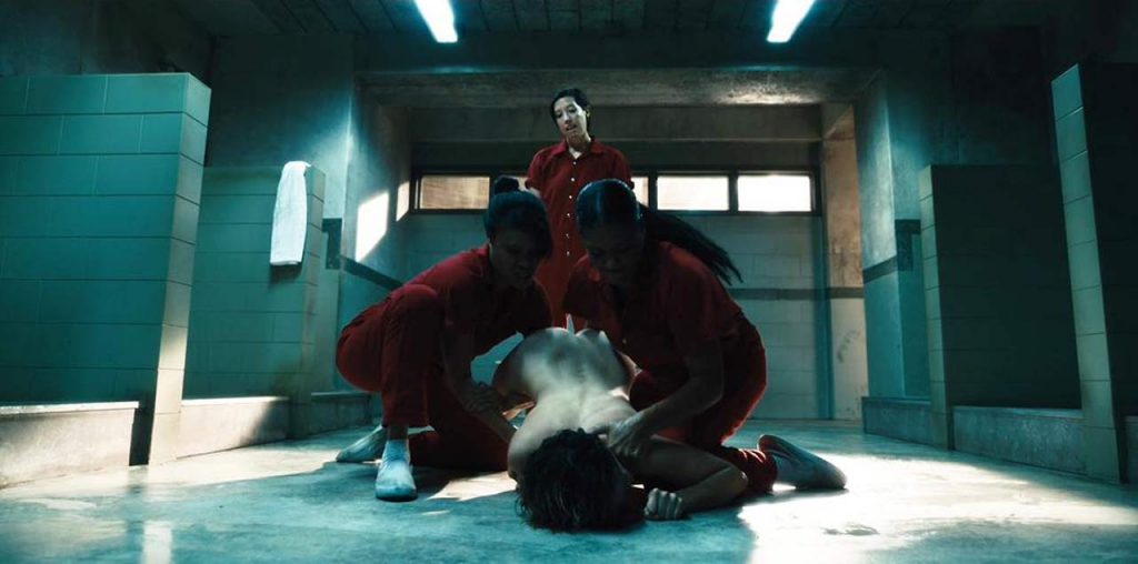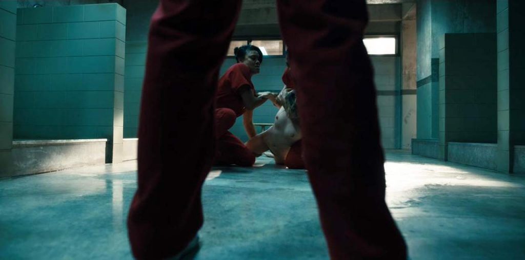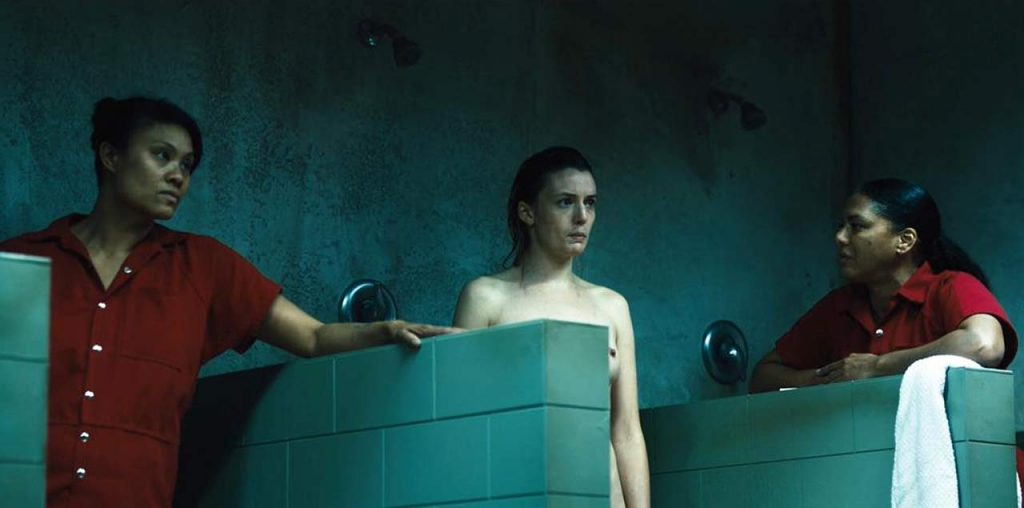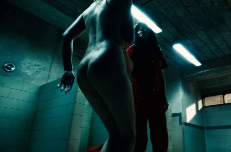 Here is her naked scene where we can see her showering in the prison public bathroom. After a while, several inmates are touching her and pushing Gaite on the floor! Jansen is entirely nude, showing her naked boobs and pussy here!