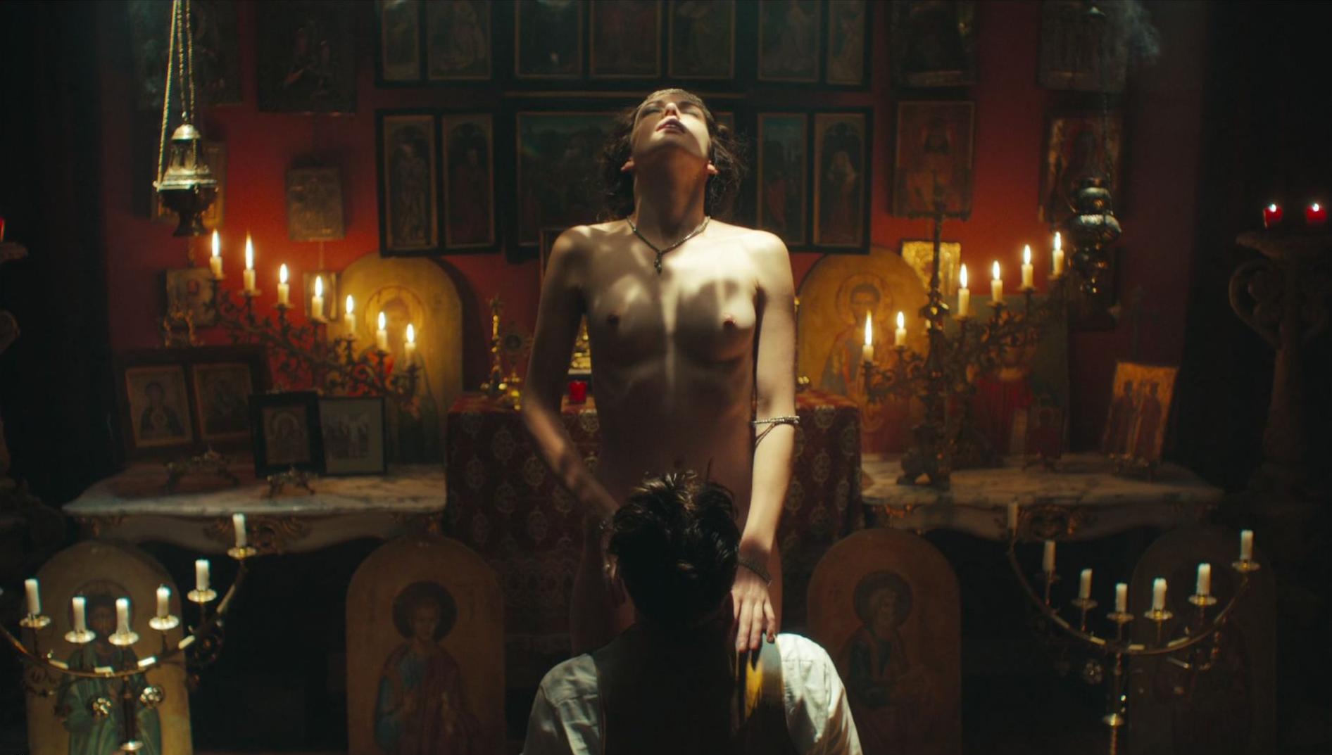 Gaite Jansen exposes her completely naked body in an artsy sex scene. She is covered with red paint and has passionate sex with a guy. We have a great view of her nude boobs and butt in the slow-motion scene. Watch Gaite Jansen’s naked boobs and butt in a nude sex scene from the “170 Hz” movie.
