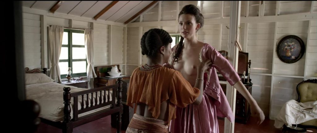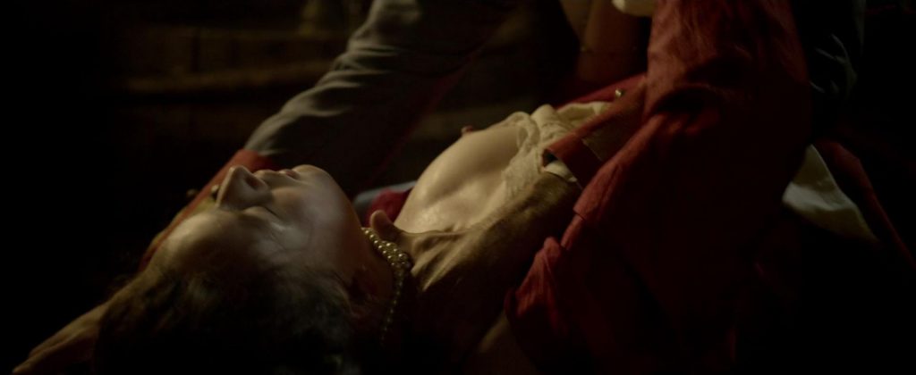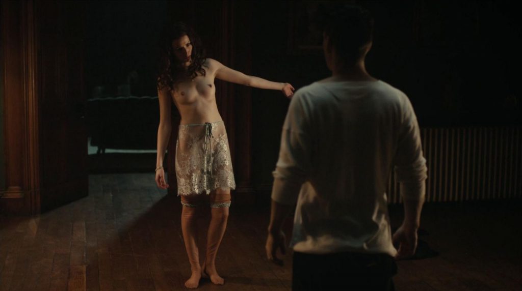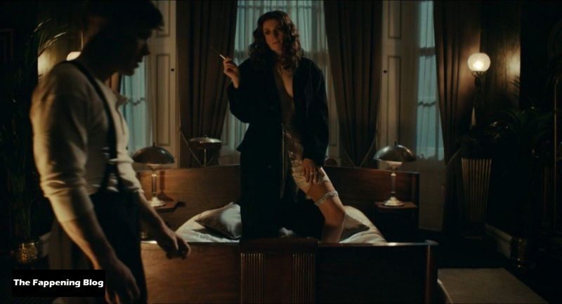 Gaite Jansen shows her naked breasts and ass in a nude sex scene. She is standing in front of a guy and removes her clothes. Then, they have sex, but she imagines Annabelle Wallis in Gaite’s place. She gives us a clear view of her nude boobs and butt. Watch Gaite Jansen and Annabelle Wallis’s naked boobs and butt in a nude sex scene from the “Peaky Blinders” series.