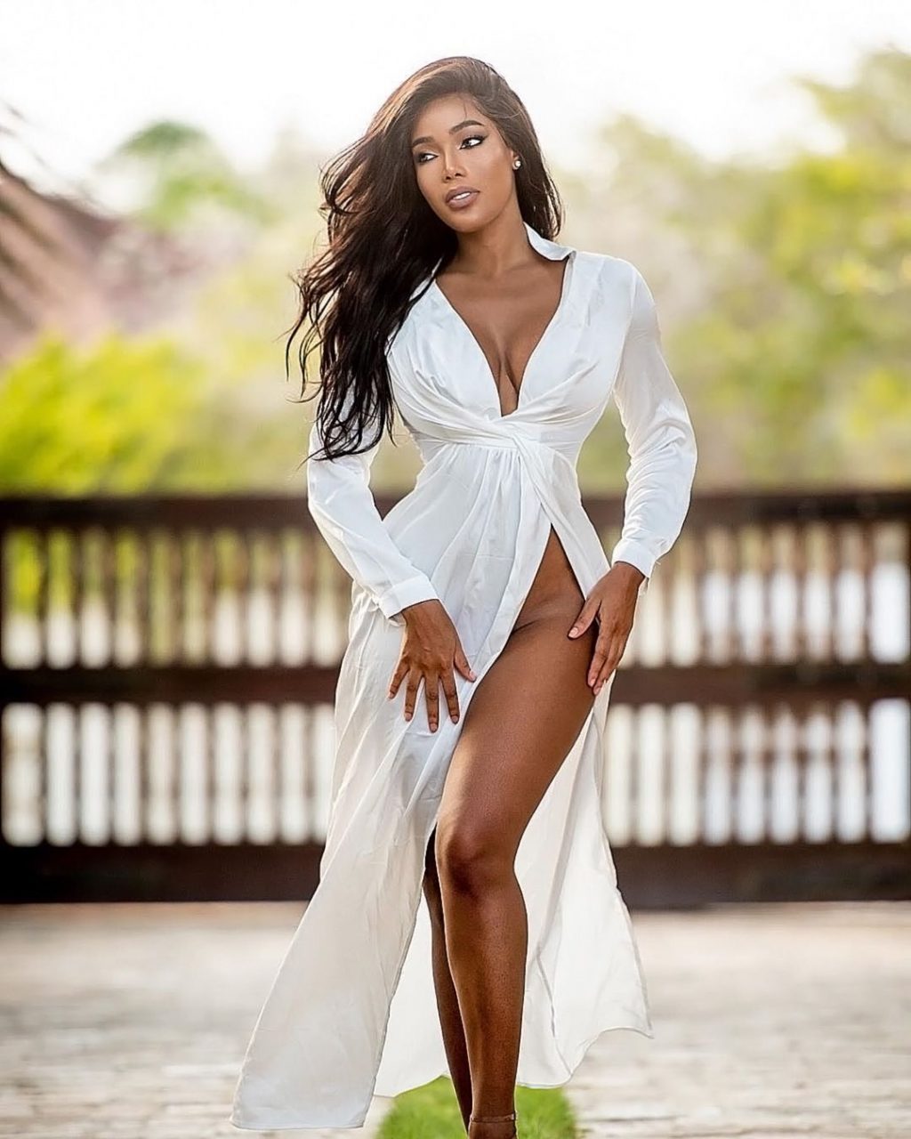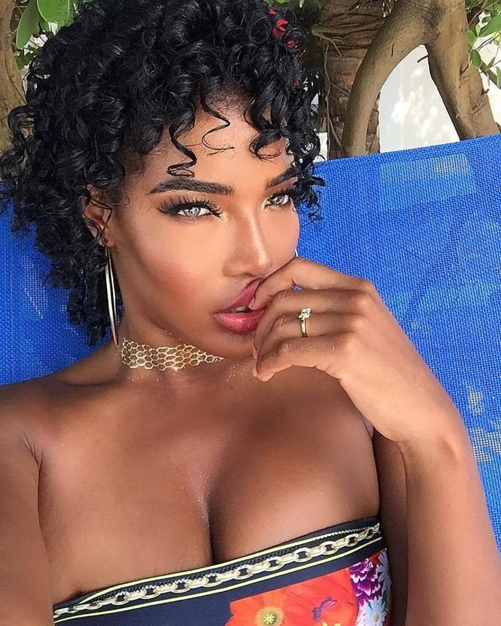 Piel morena y ojos azules, estamos encantados. Aquí está la mayor colección en línea de fotos desnudas, sexys, topless y de pies de Monifa Jansen. Las grandes curvas del cuerpo de Jansen, su figura en bikini, su hermoso rostro y sus pechos de diosa me excitaban. No, no estamos bromeando. Esta chica tiene todo, y además es inteligente. Sus respuestas en el certamen hicieron que todos la miraran. Es simplemente demasiado hermosa para su país. Así que emigró a América y se convirtió en prostituta. Como cualquier otra chica bonita que hizo eso.