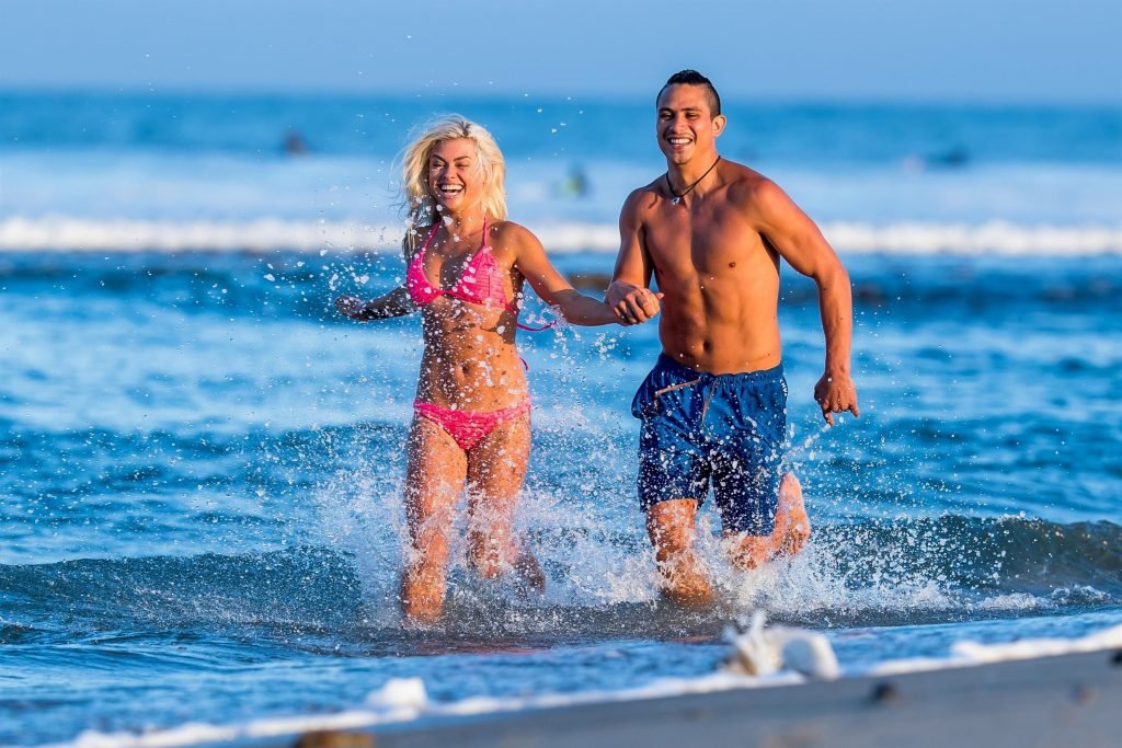 Oksana y Jonathan Platero fueron vistos abrazándose en la playa de Malibu, 13/07/2017. Oksana (Dmytrenko) Platero es una bailarina ucraniana de salón y latina (Strictly Come Dancing, Dancing with the Stars). Edad: 28.