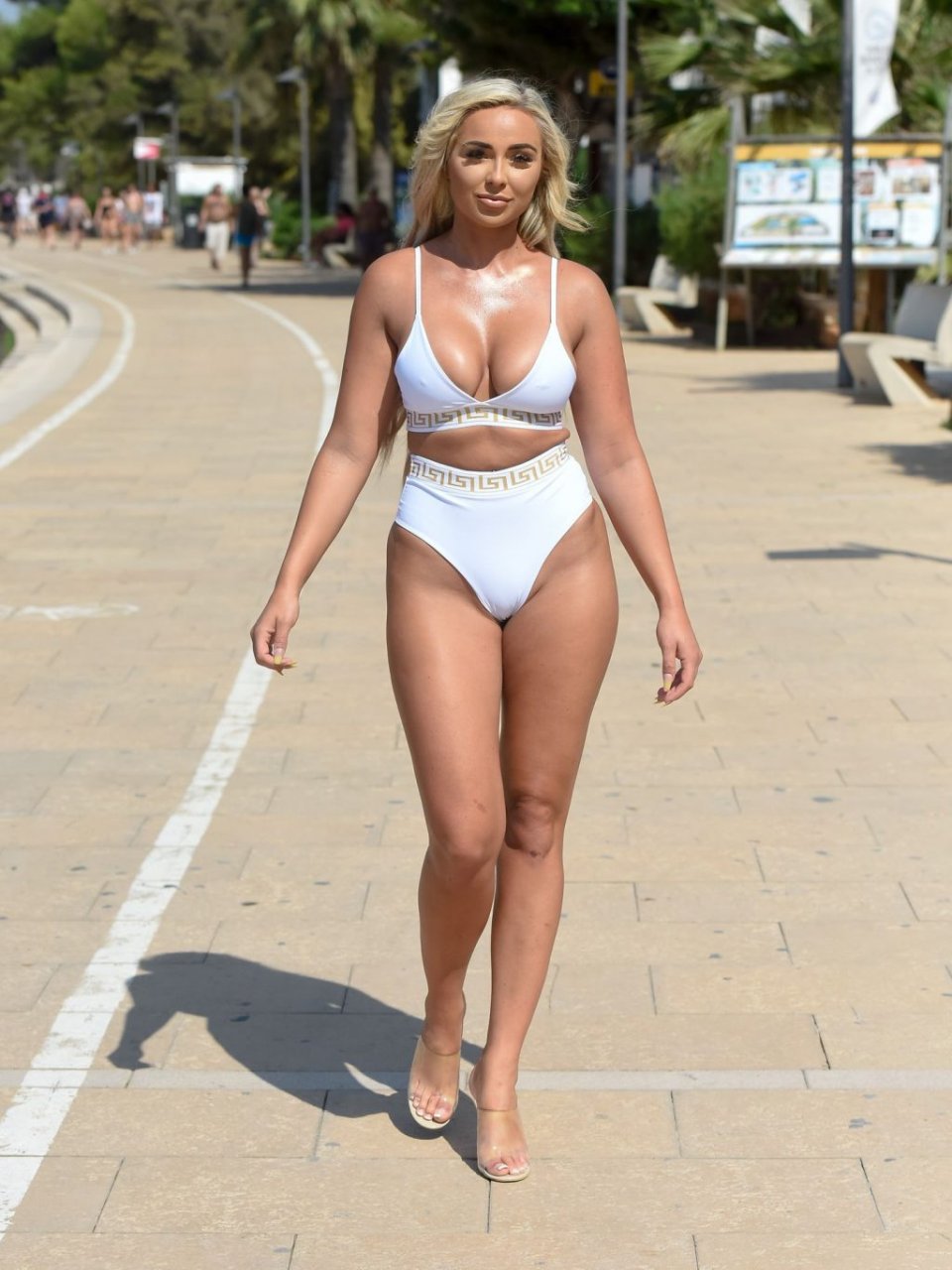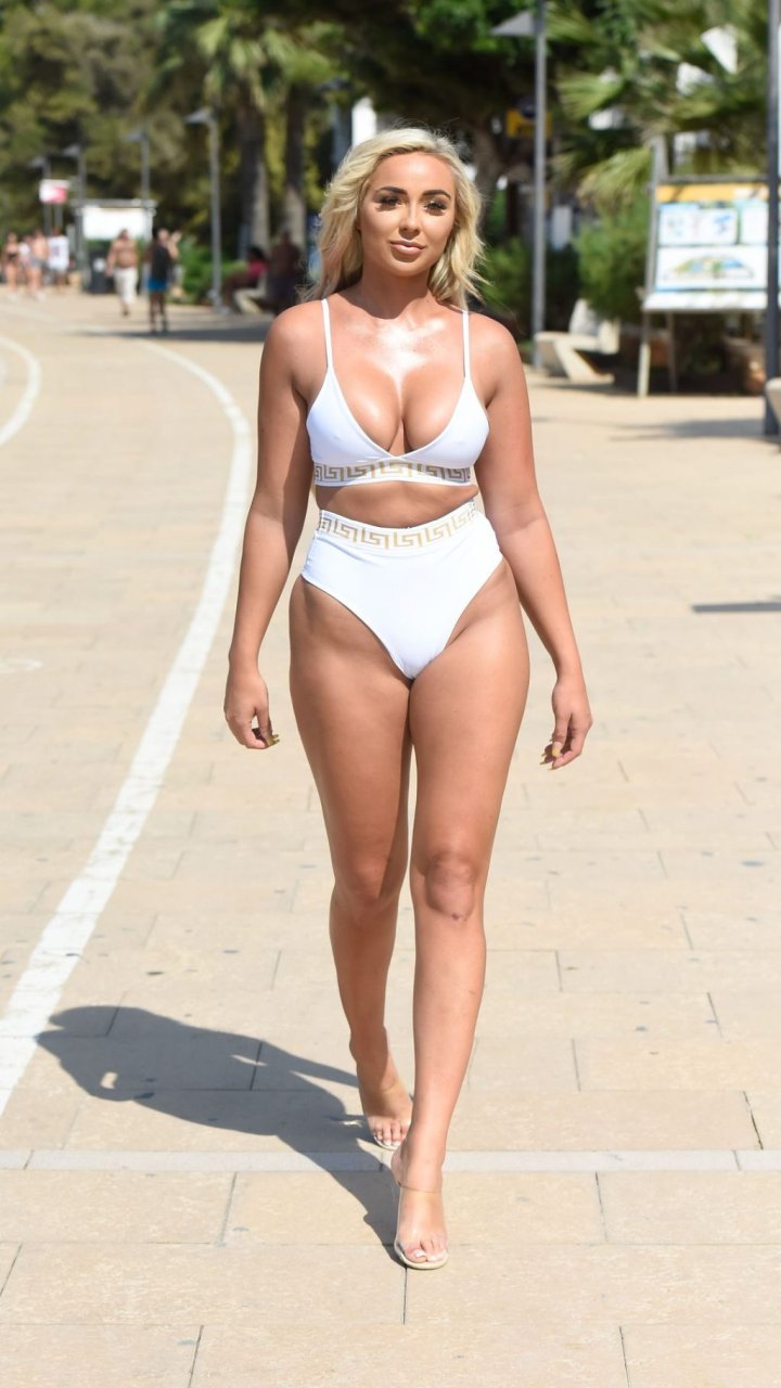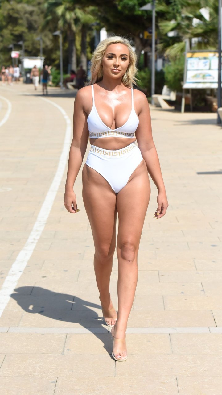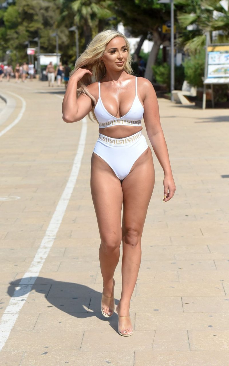 “Supervivencia del Más Fuerte” estrella Georgia Cole sale después de festejar con el ex de Georgia Steel, Sam Bird. Aquí la vemos en su 27 cumpleaños con un bikini blanco llegando a O Beach Ibiza, 18/09/2019.